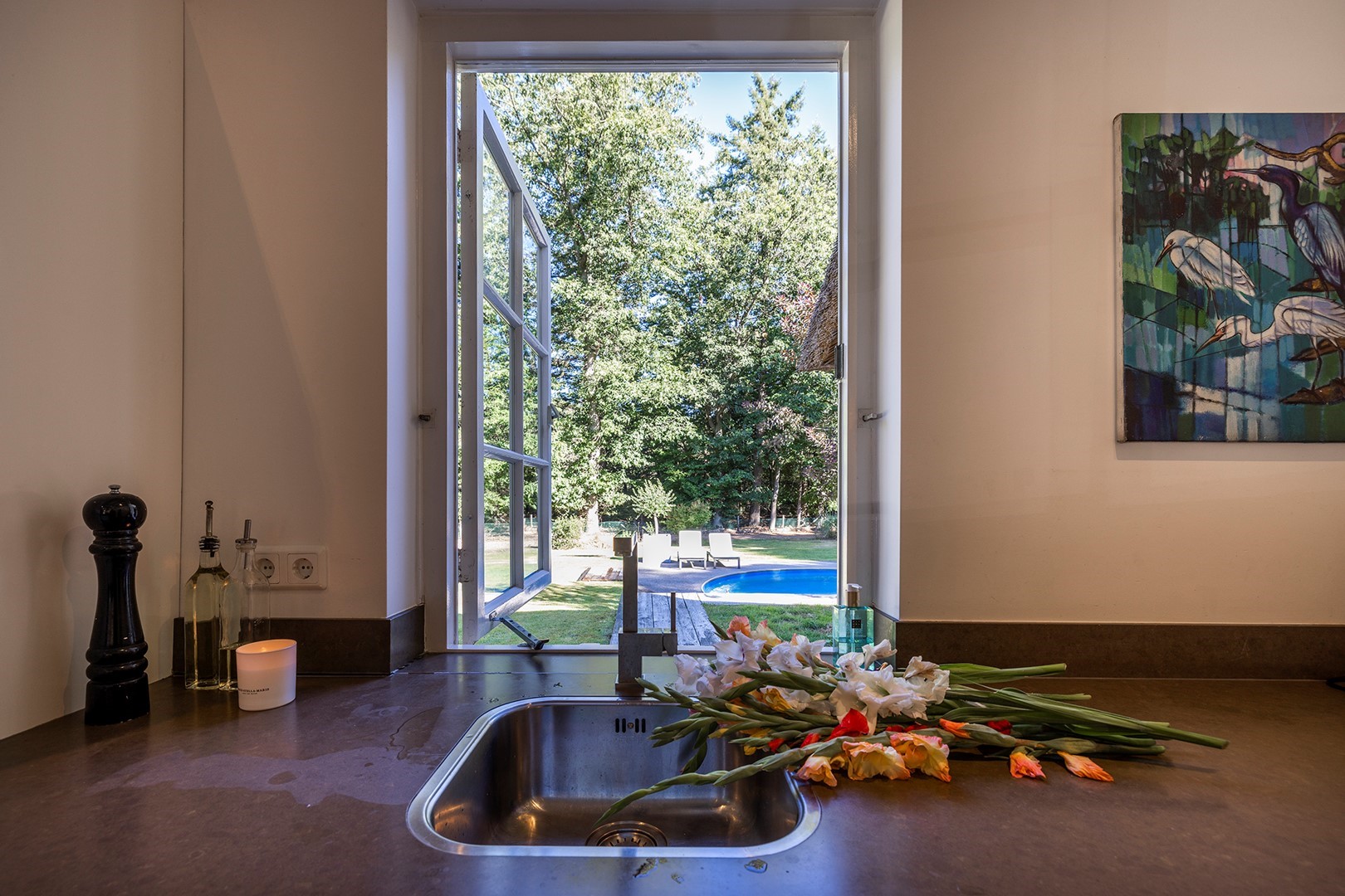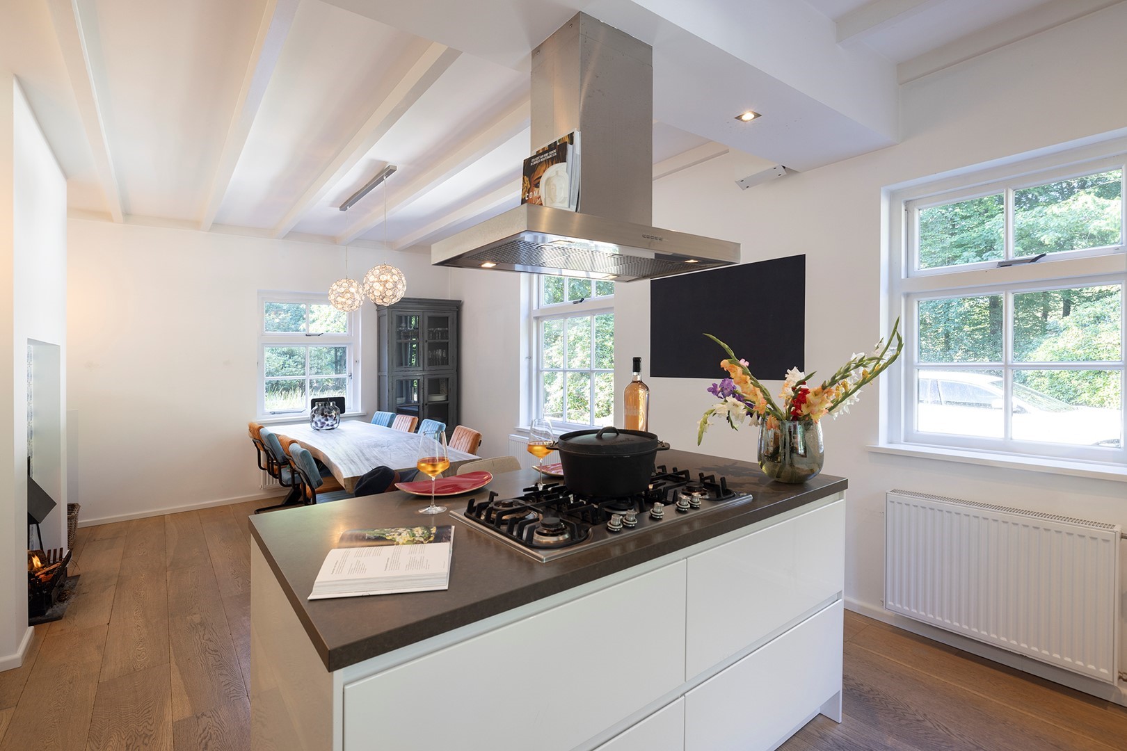 De vele raampartijen zorgen voor een prettige lichtinval en geven u een fantastisch uitzicht over het groen.