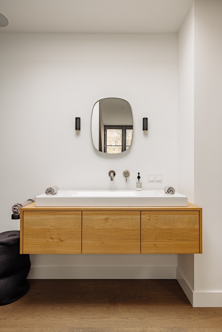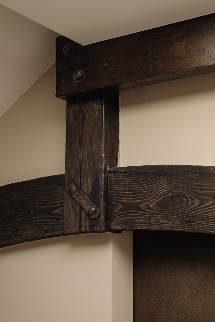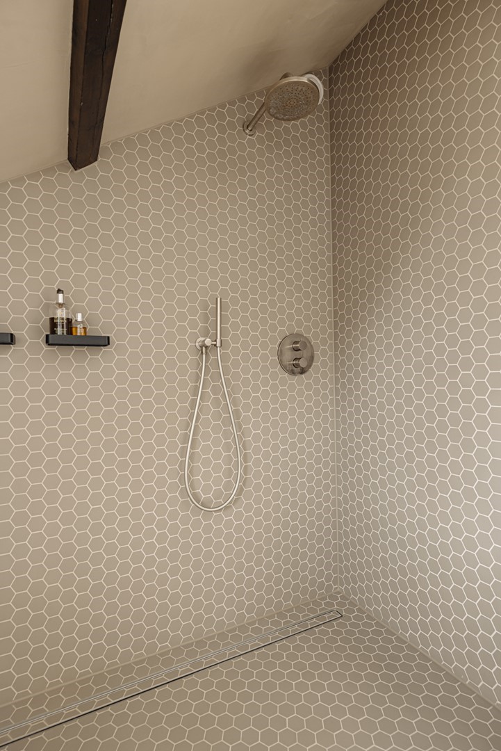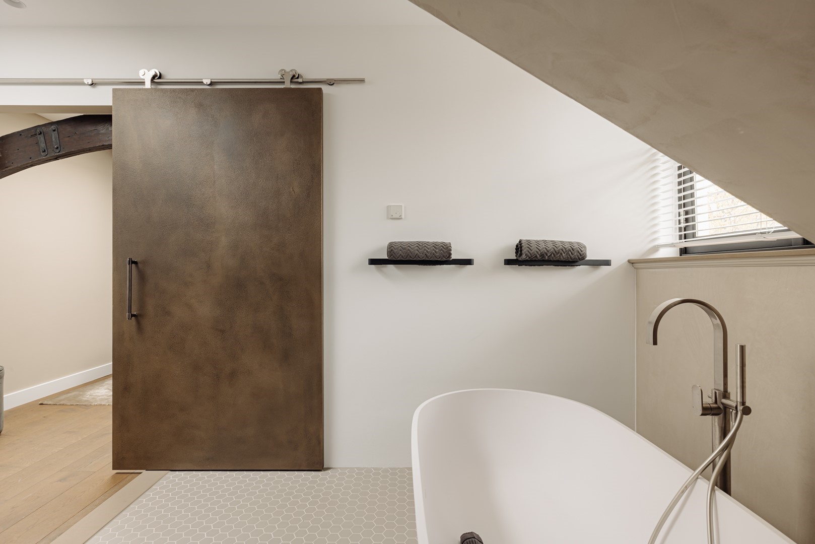 Upstairs, under the original roof structure, the second floor breathes character. The exposed, semi-circular roof beams give the space a unique sense of history. Here you’ll find three bedrooms, two bathrooms, a separate toilet and a dedicated laundry room. This sleeping level offers a carefully balanced blend of modern comfort and authentic architectural charm.