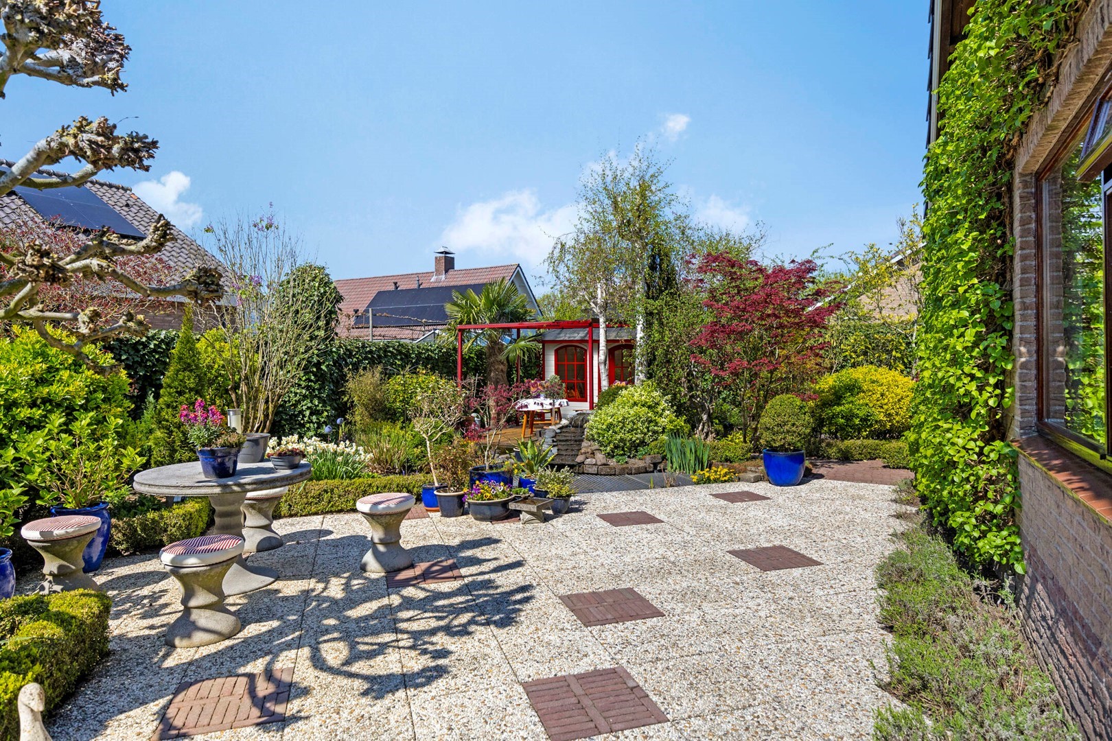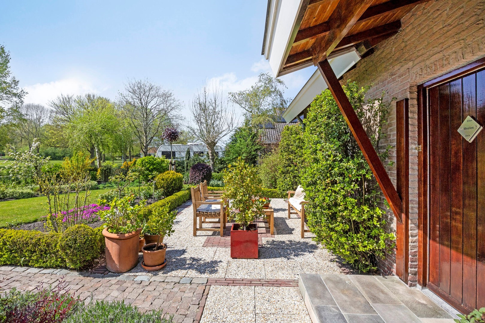 De rondom gelegen tuin is fraai aangelegd en sluit perfect aan bij de rustige en groene omgeving. Met meerdere terrassen, een tuinhuisje, pergola, tuinkas en moestuin is dit een heerlijke plek om het hele jaar door van het buitenleven te genieten.
