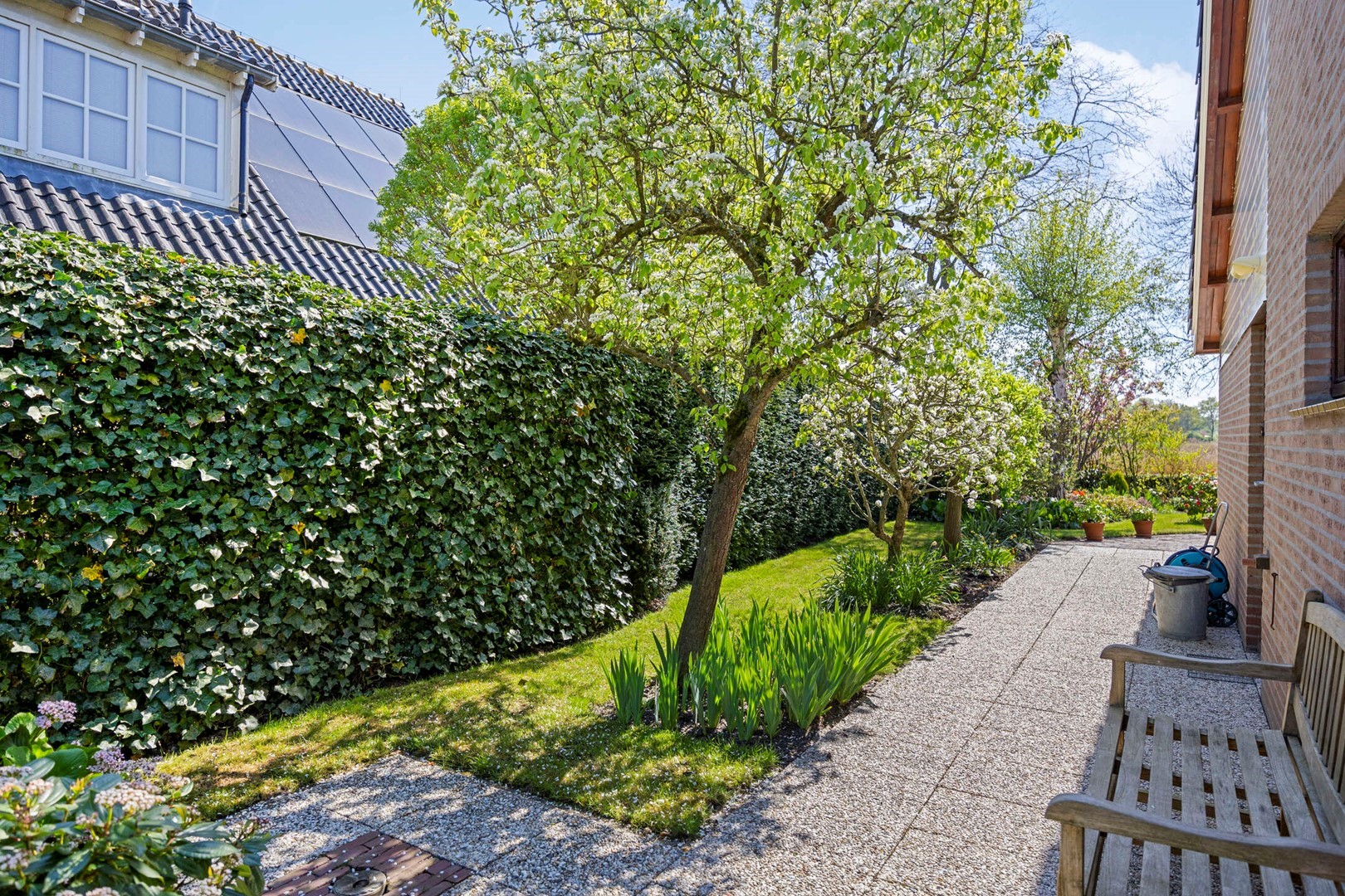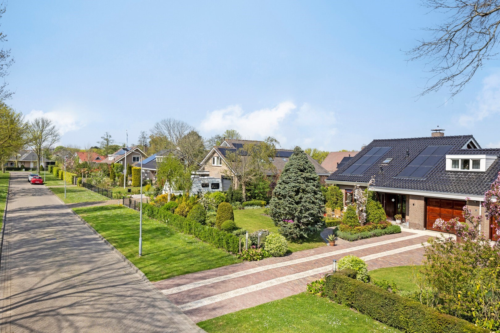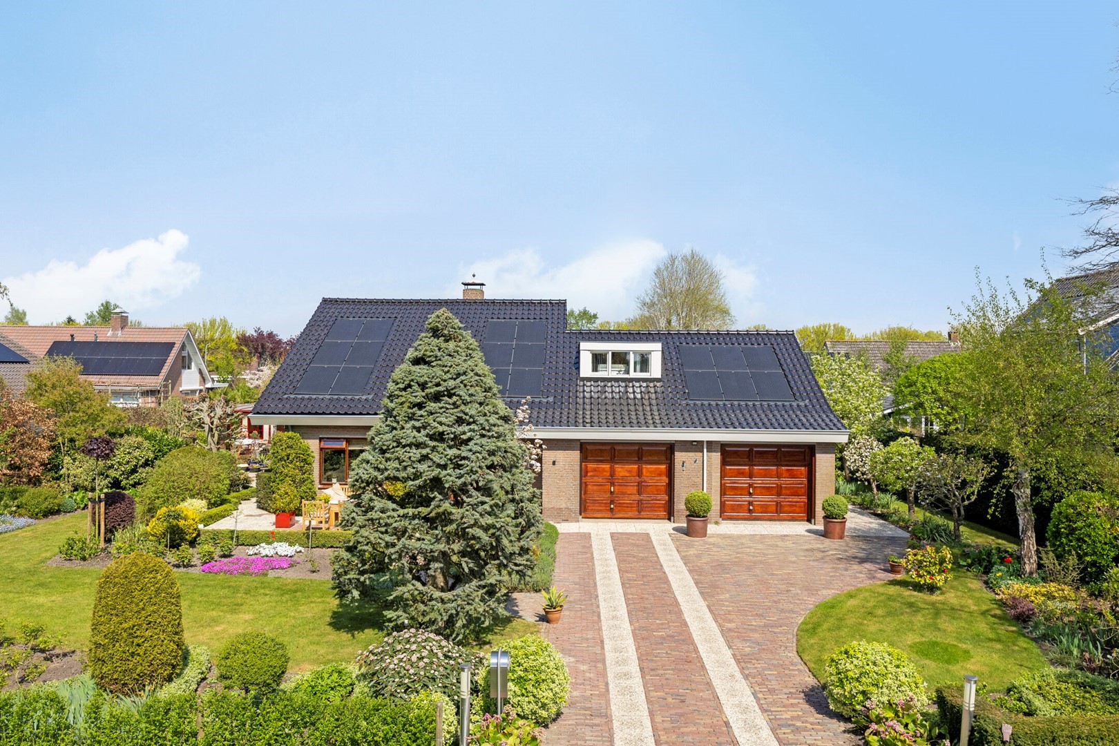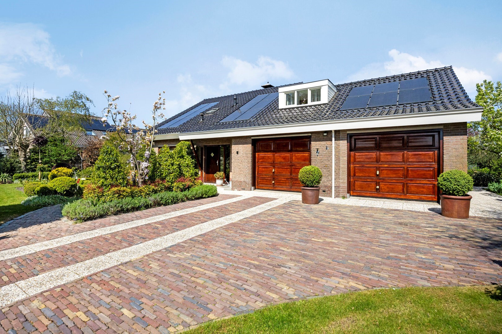 Een bijzonder pluspunt is het royale bijgebouw met twee garages, beide voorzien van elektrische garagedeuren. De tweede garage beschikt bovendien over een ruime bergzolder. Parkeren op eigen terrein is ruimschoots mogelijk.
