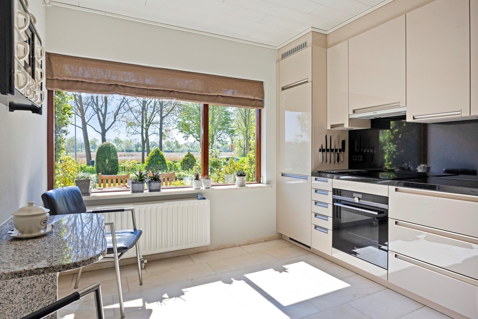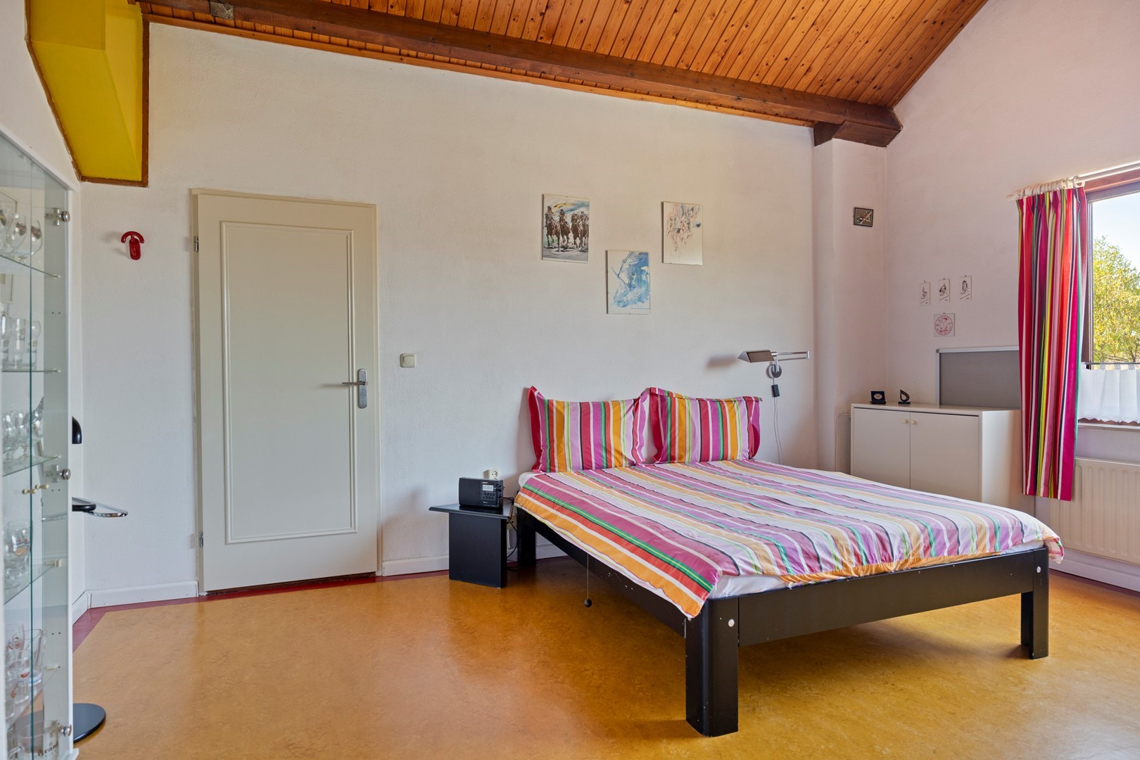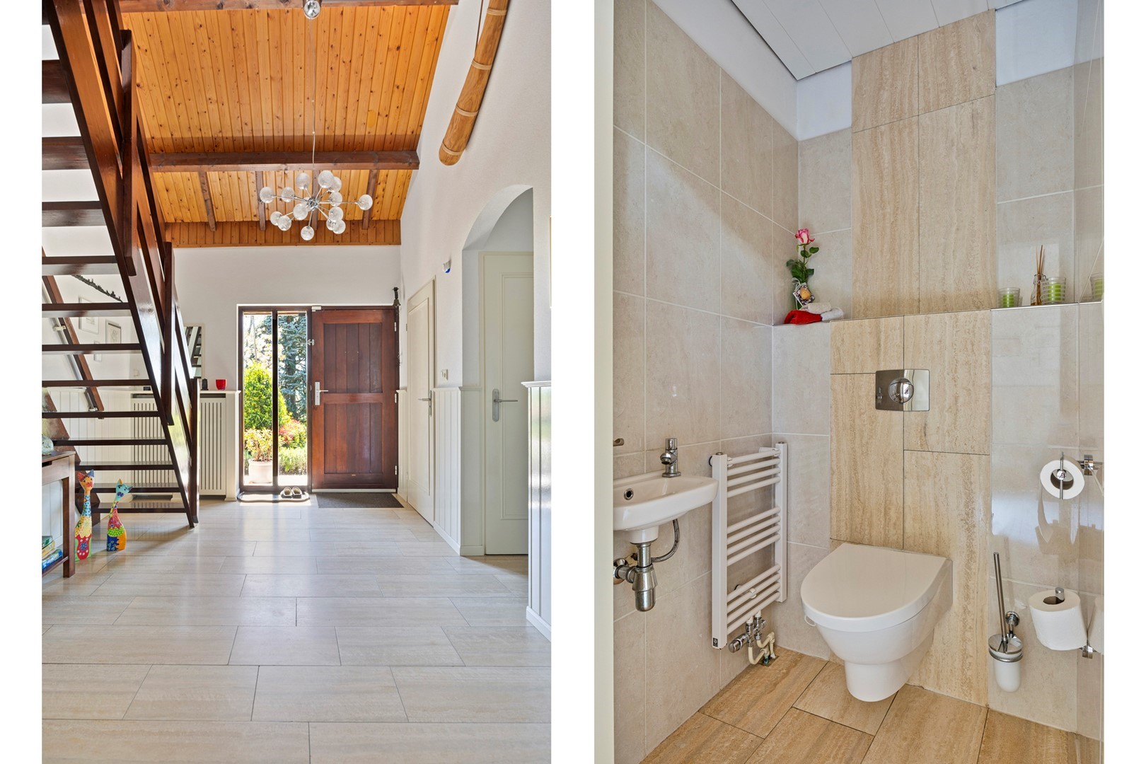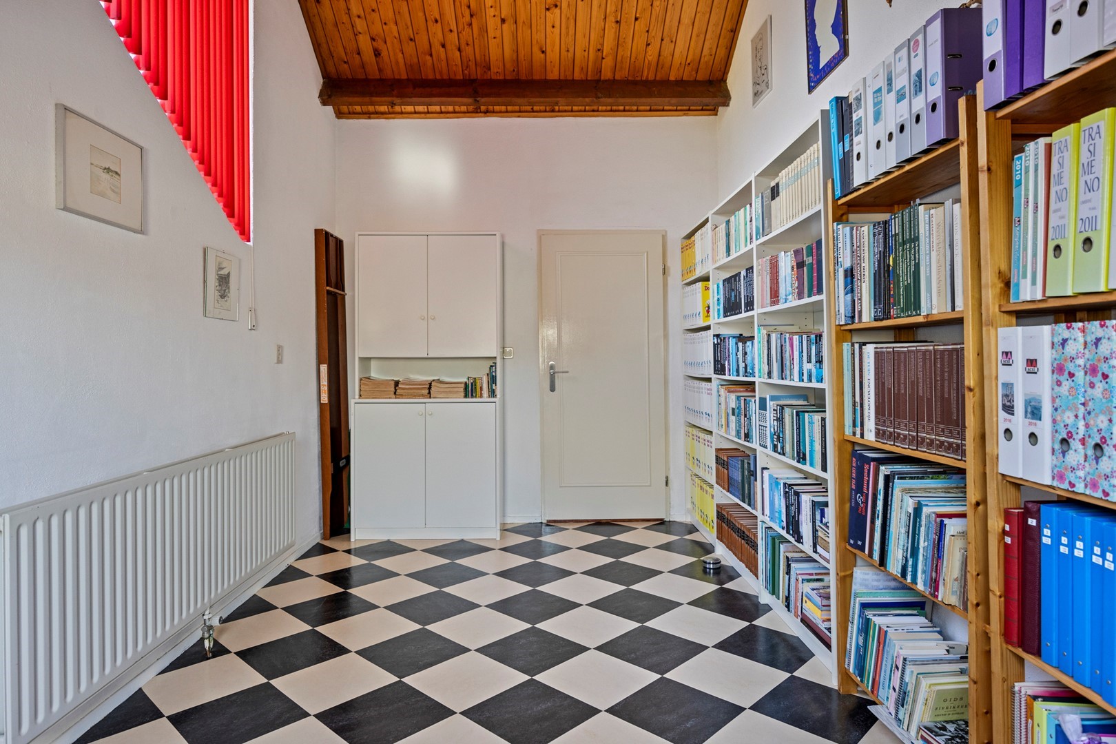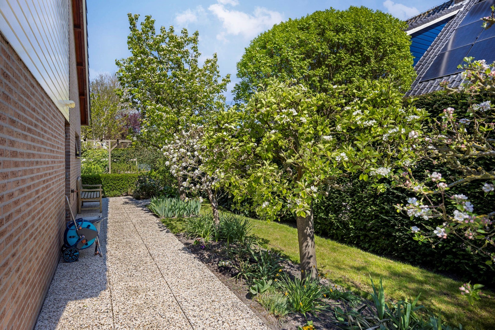 Een bijzonder pluspunt is het royale bijgebouw met twee garages, beide voorzien van elektrische garagedeuren. De tweede garage beschikt bovendien over een ruime bergzolder. Parkeren op eigen terrein is ruimschoots mogelijk.