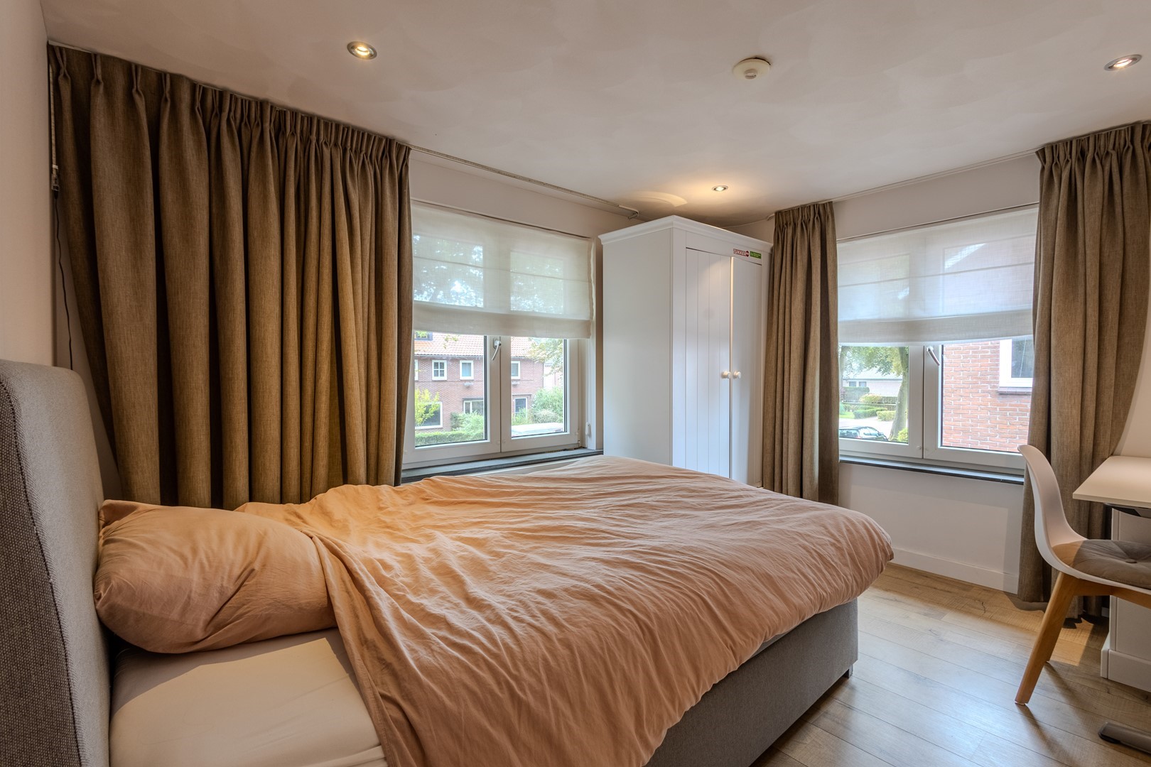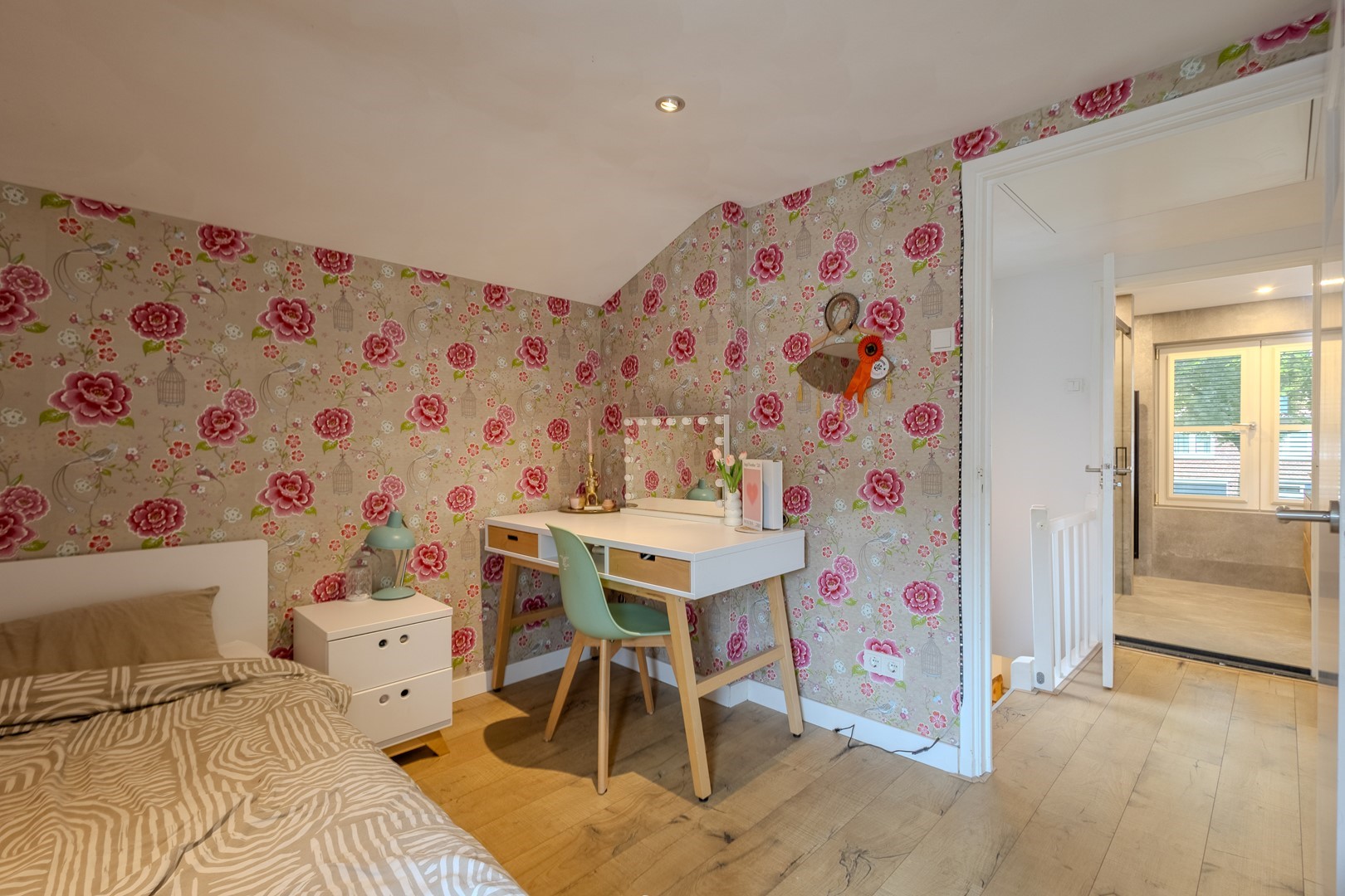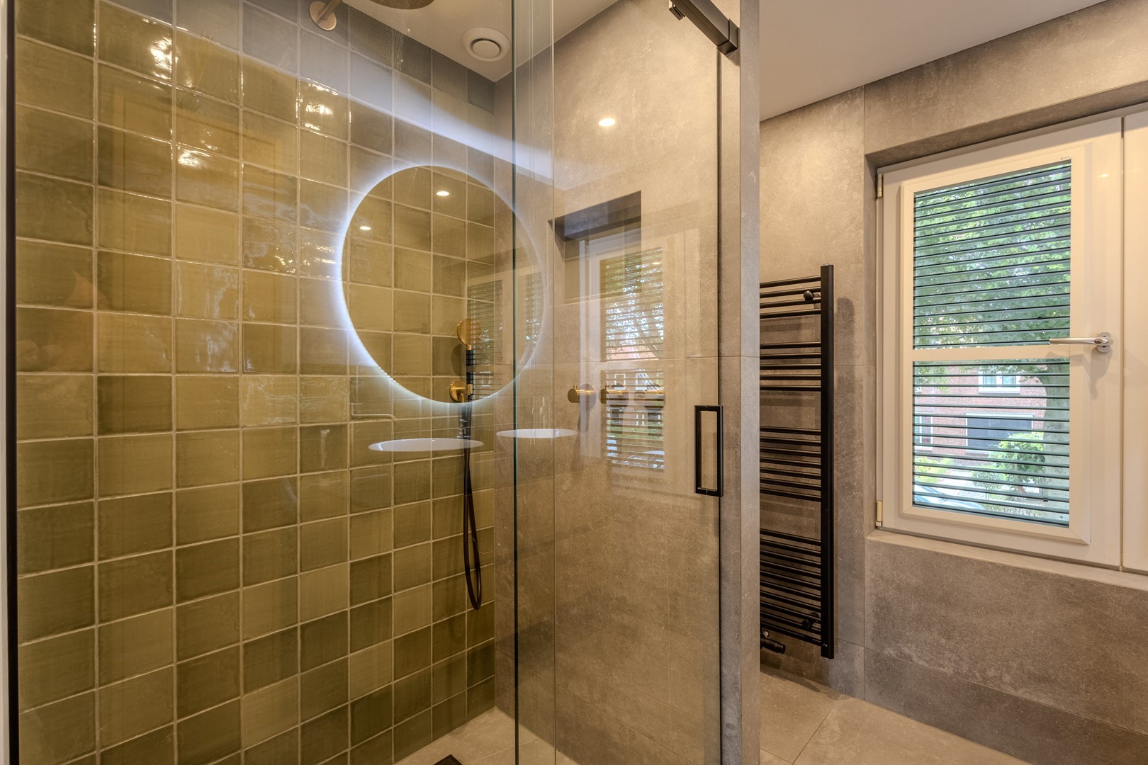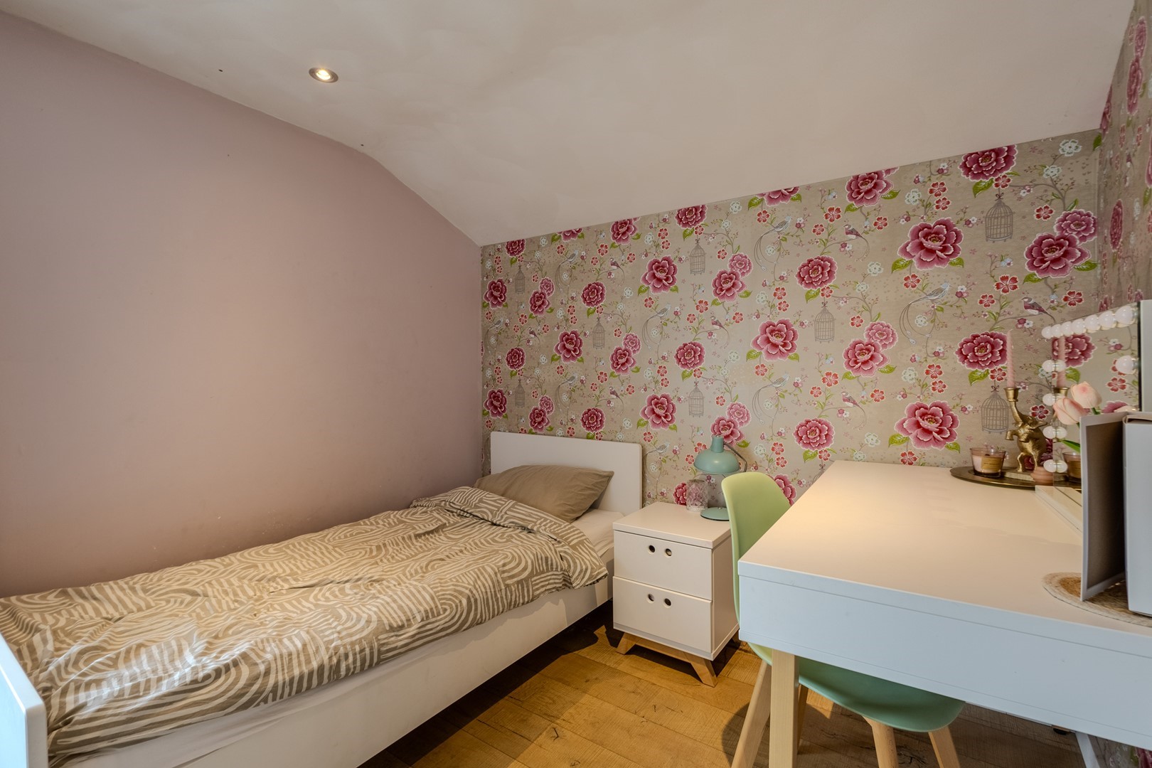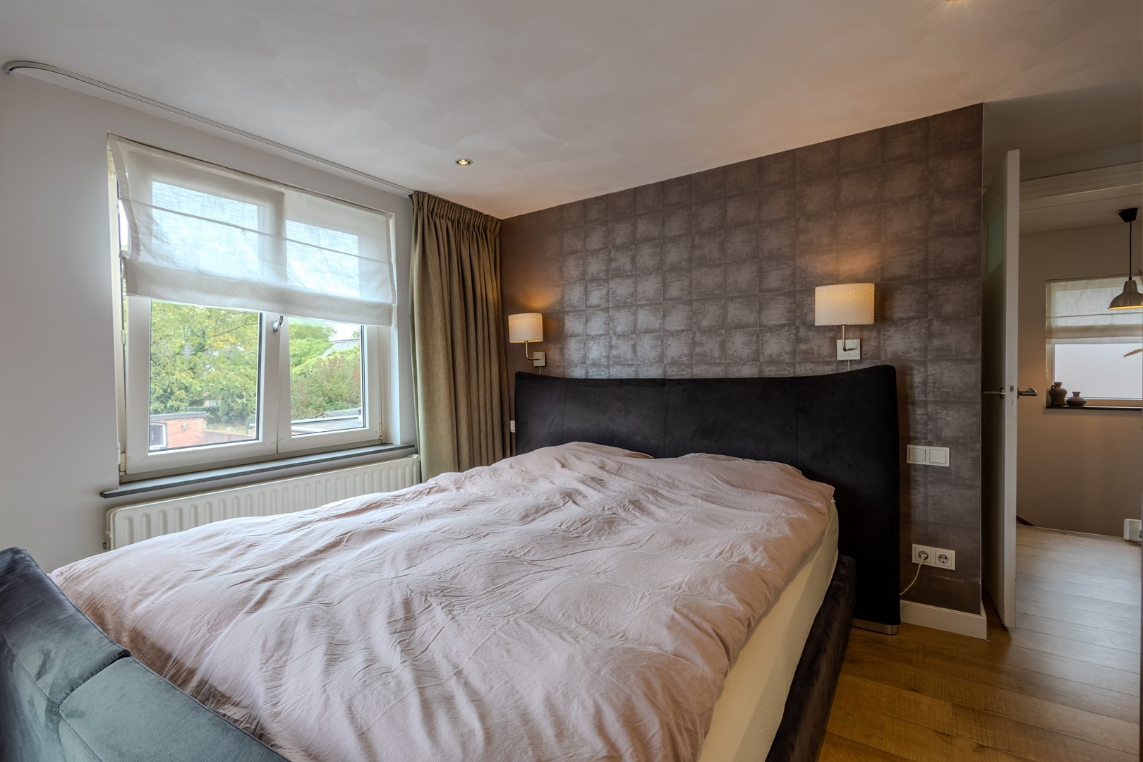 De overloop geeft toegang tot drie slaapkamers, allen voorzien van laminaatvloeren en grotendeels horren. De ouderslaapkamer beschikt over een inbouwkast. De overige twee slaapkamers zijn tevens van mooi formaat. De badkamer is slechts een jaar oud en luxe uitgevoerd met een dubbele wastafel in meubel, inbouwkranen, toilet en douche. De grijze en groene tegels geven de ruimte een frisse uitstraling, terwijl de elektrische vloerverwarming, shutters en mechanische ventilatie zorgen voor optimaal comfort.