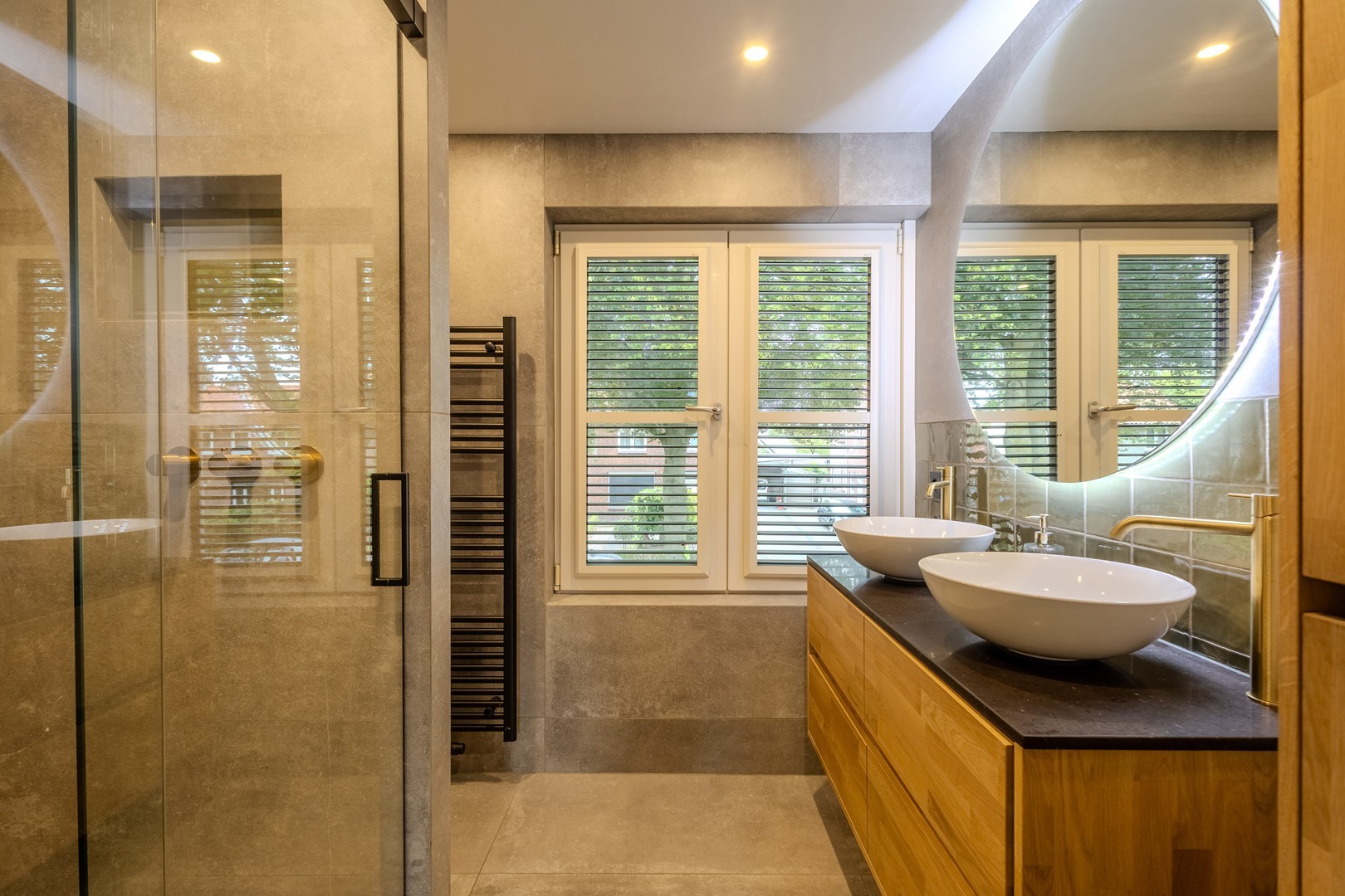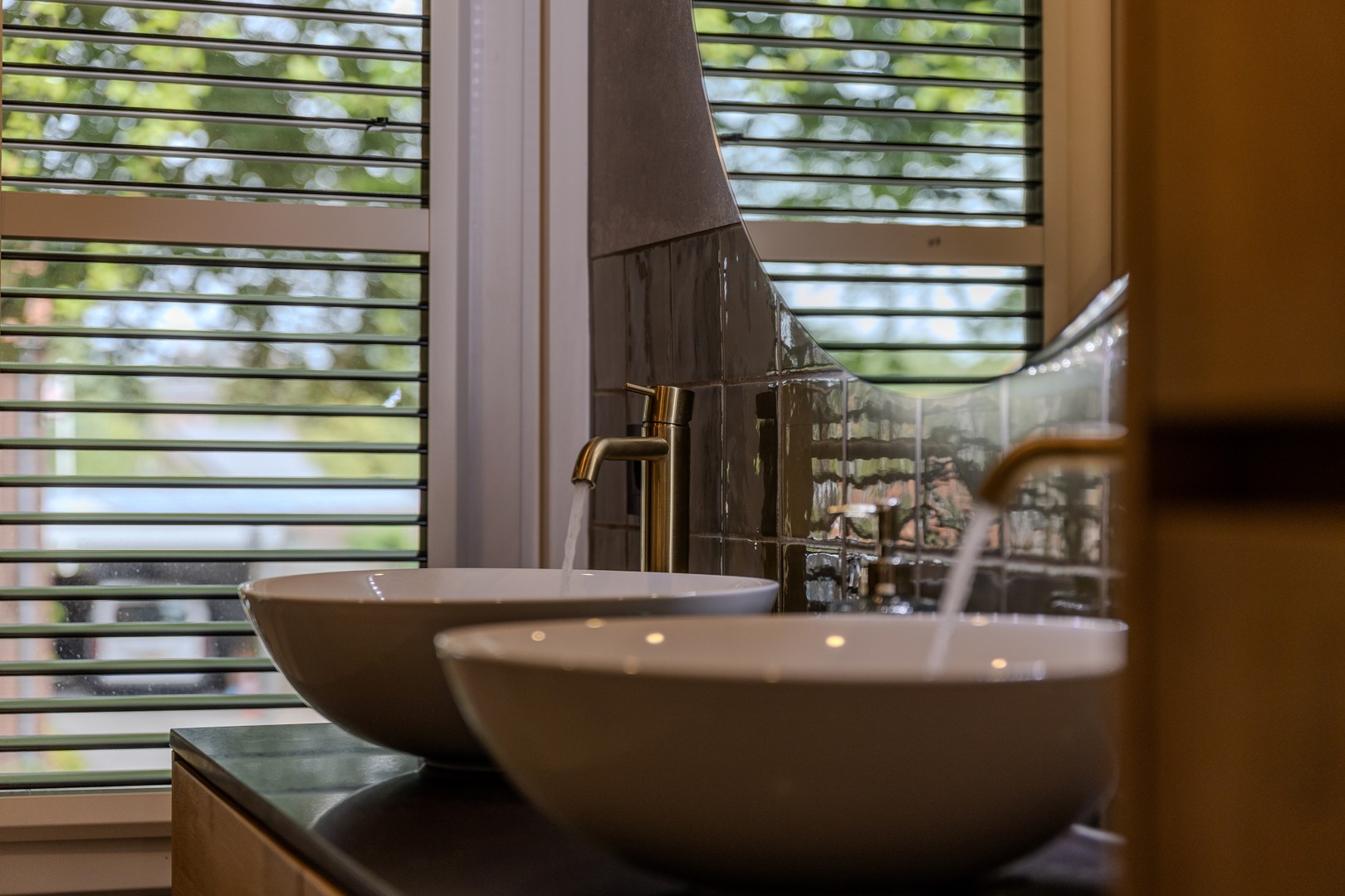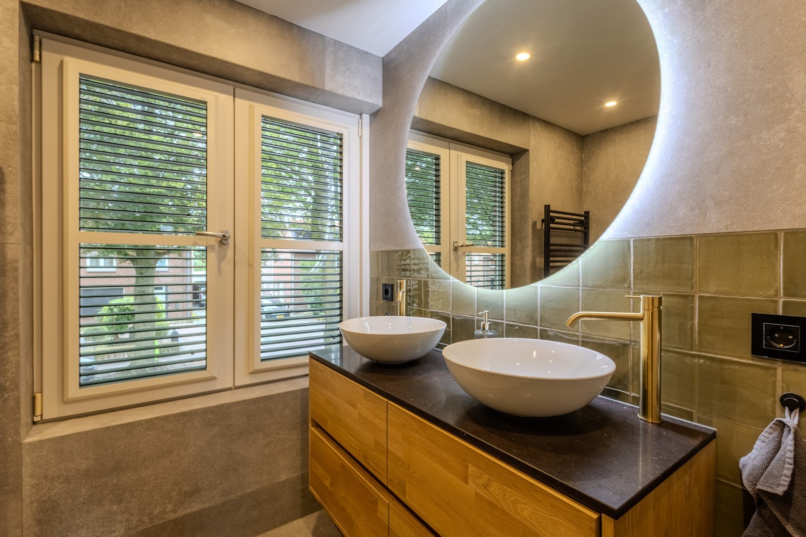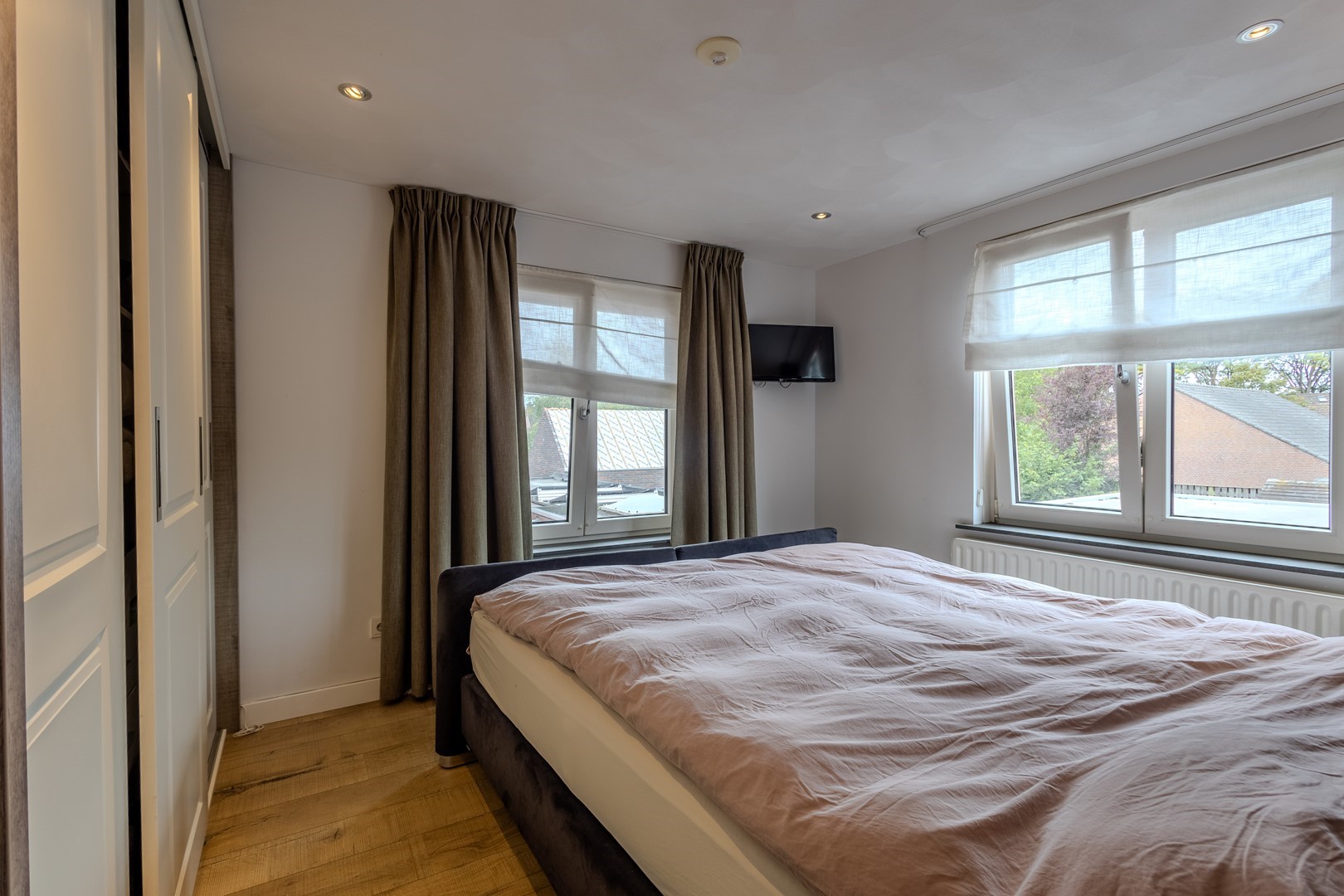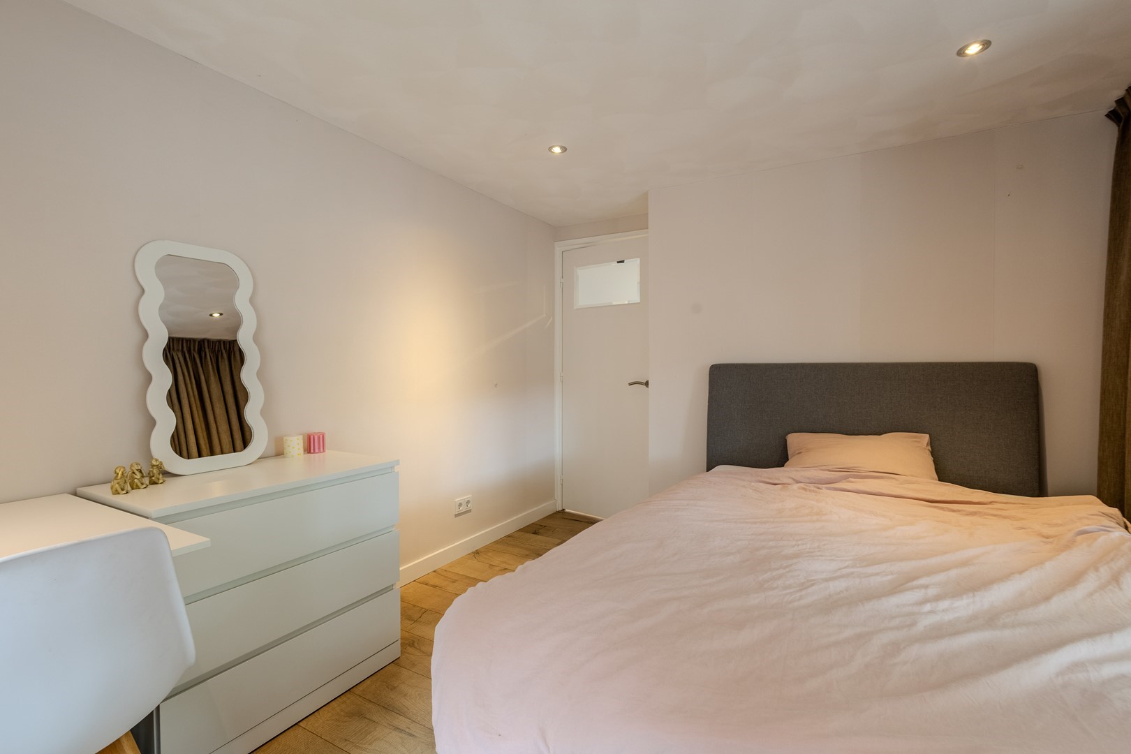 De overloop geeft toegang tot drie slaapkamers, allen voorzien van laminaatvloeren en grotendeels horren. De ouderslaapkamer beschikt over een inbouwkast. De overige twee slaapkamers zijn tevens van mooi formaat. De badkamer is slechts een jaar oud en luxe uitgevoerd met een dubbele wastafel in meubel, inbouwkranen, toilet en douche. De grijze en groene tegels geven de ruimte een frisse uitstraling, terwijl de elektrische vloerverwarming, shutters en mechanische ventilatie zorgen voor optimaal comfort.