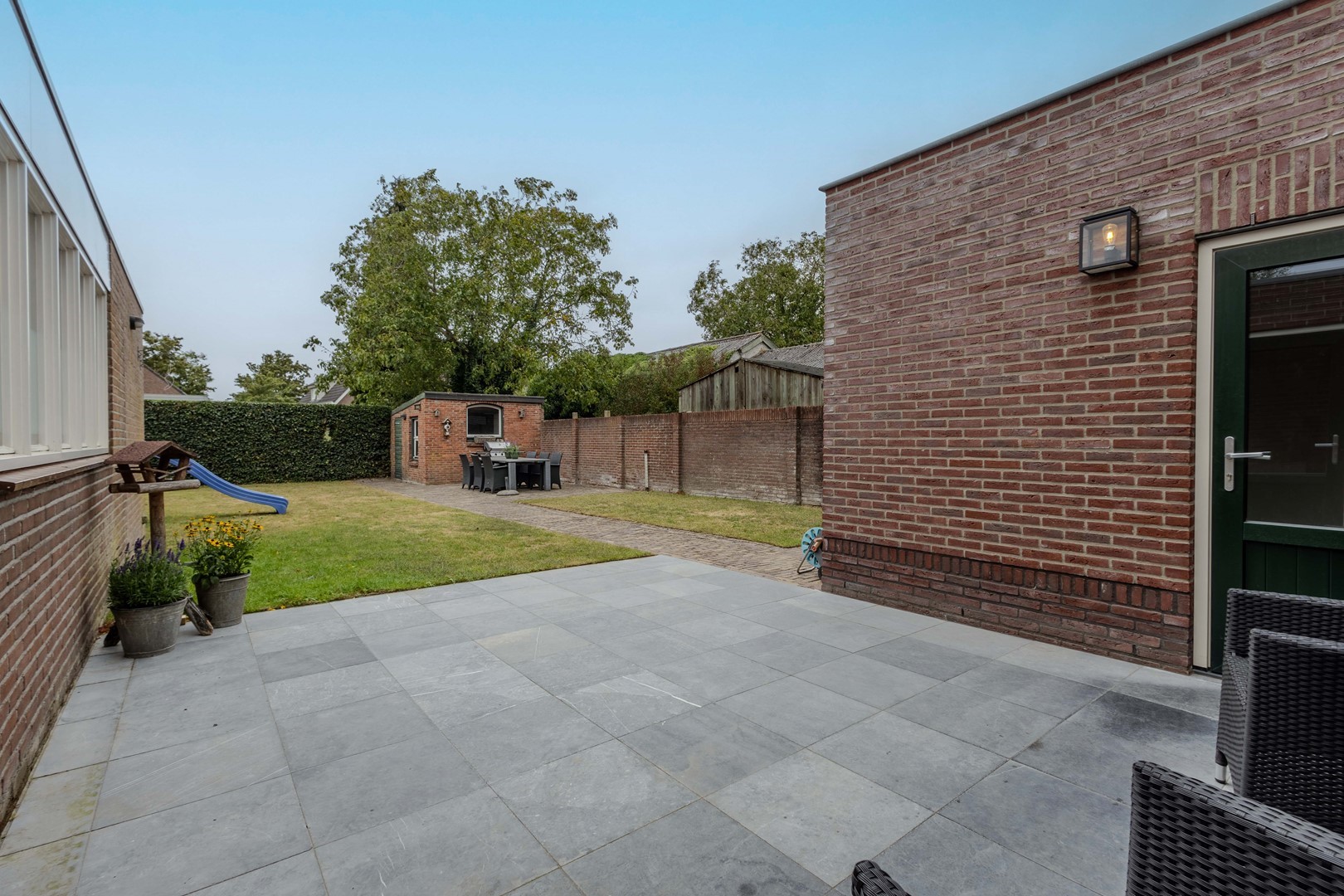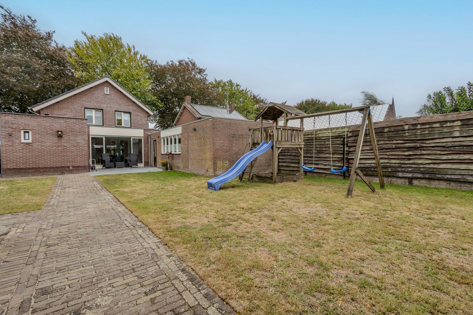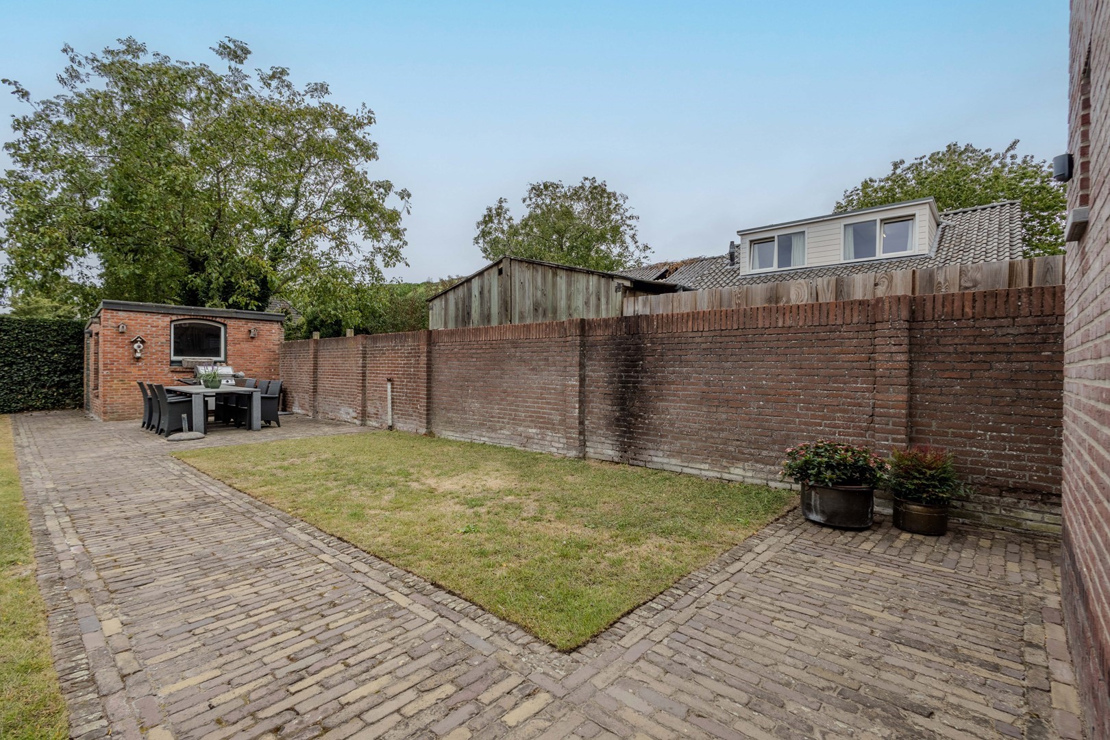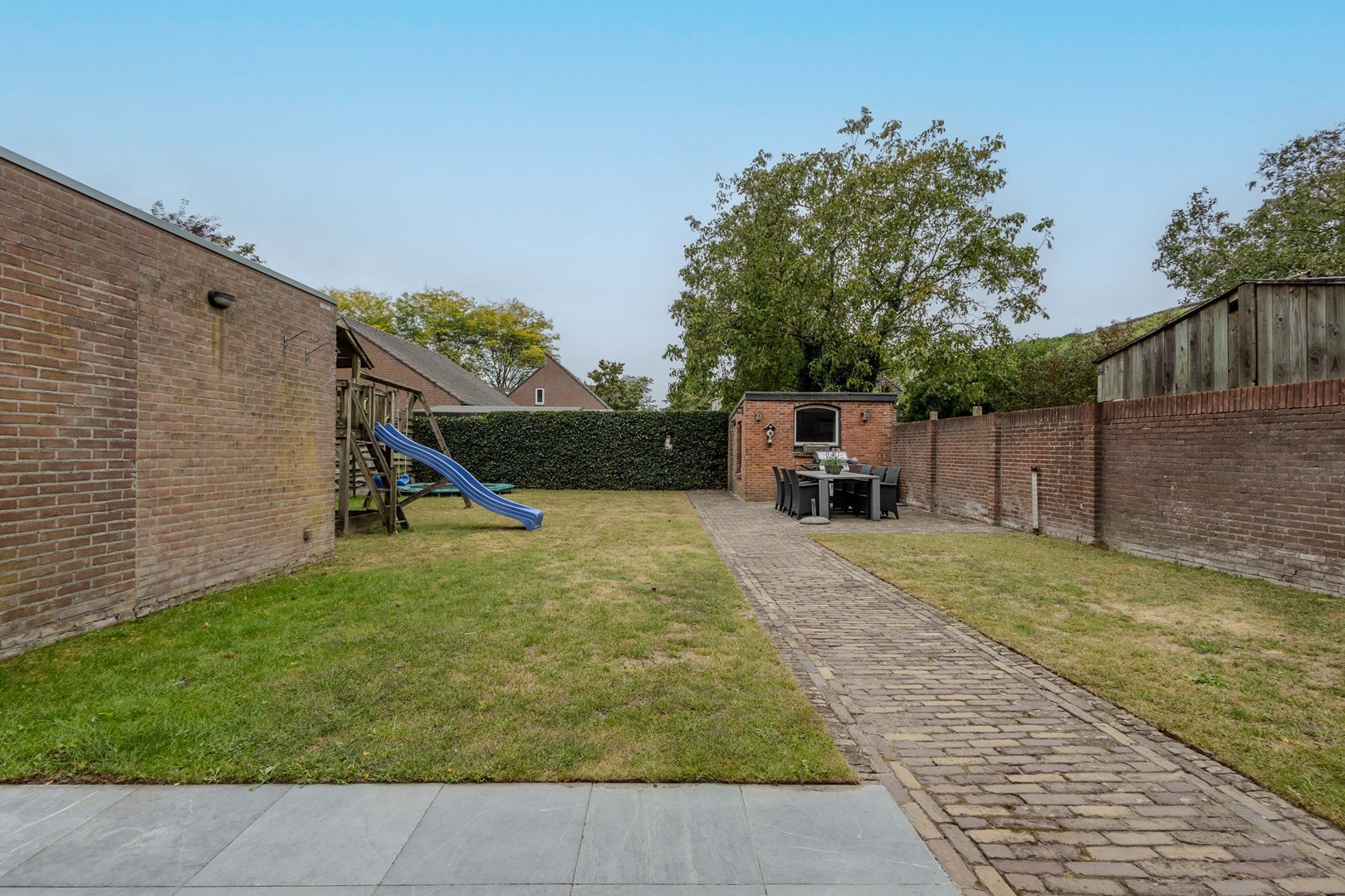 De achtertuin is een heerlijke plek om te genieten van het buitenleven. Dankzij de royale afmetingen is er ruimte voor meerdere zitplekken, variërend van een zonnig terras tot een beschut hoekje voor lange zomeravonden met vrienden en familie. Het grote gazon biedt volop mogelijkheden voor kinderen om te spelen, compleet met speeltoestel. De tuin wordt omsloten door groen en een robuuste muren erfafscheiding, waardoor u kunt rekenen op optimale privacy. Een fijne plek waar ontspanning, gezelligheid en praktisch gebruik samenkomen. Via de rechterzijde van de woning is de achterom te bereiken.