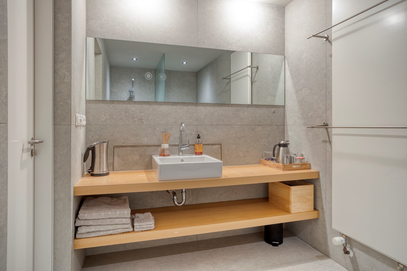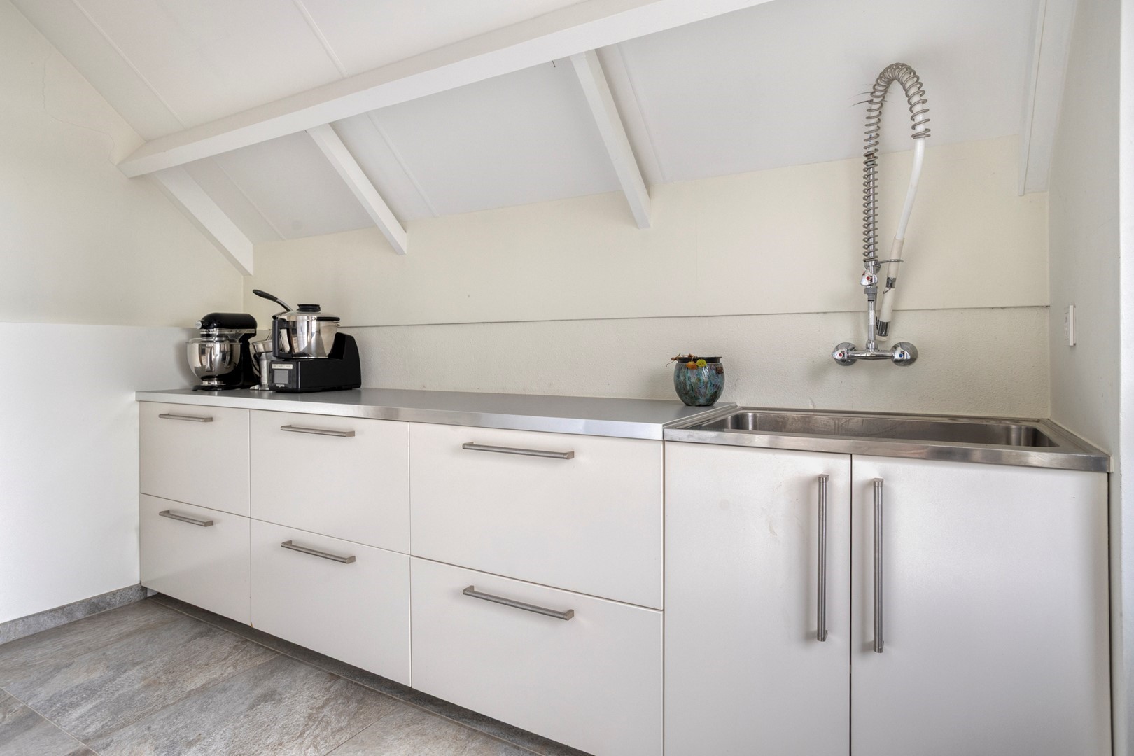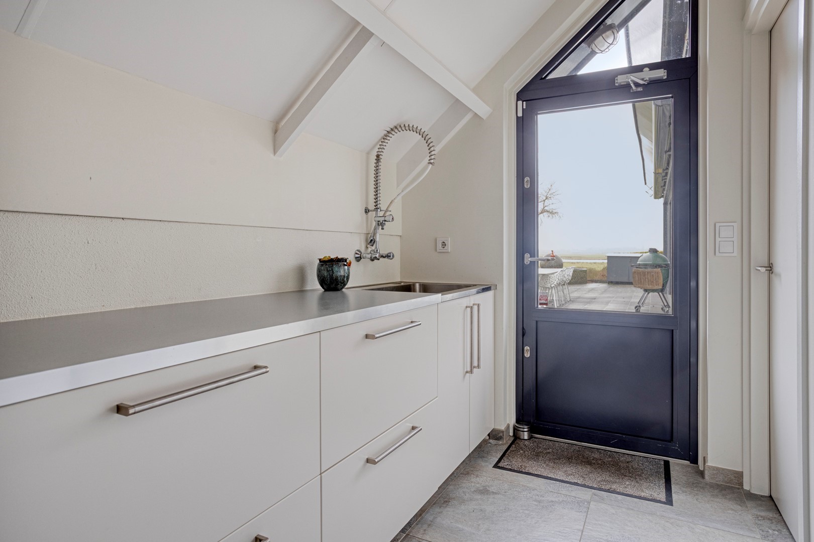 • Aparte bijkeuken met industriële wandkraan, extra koel/vriezer, eigen buitentoegang