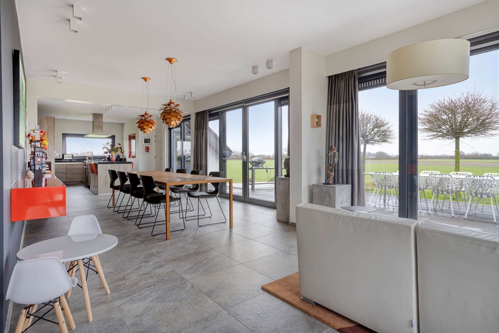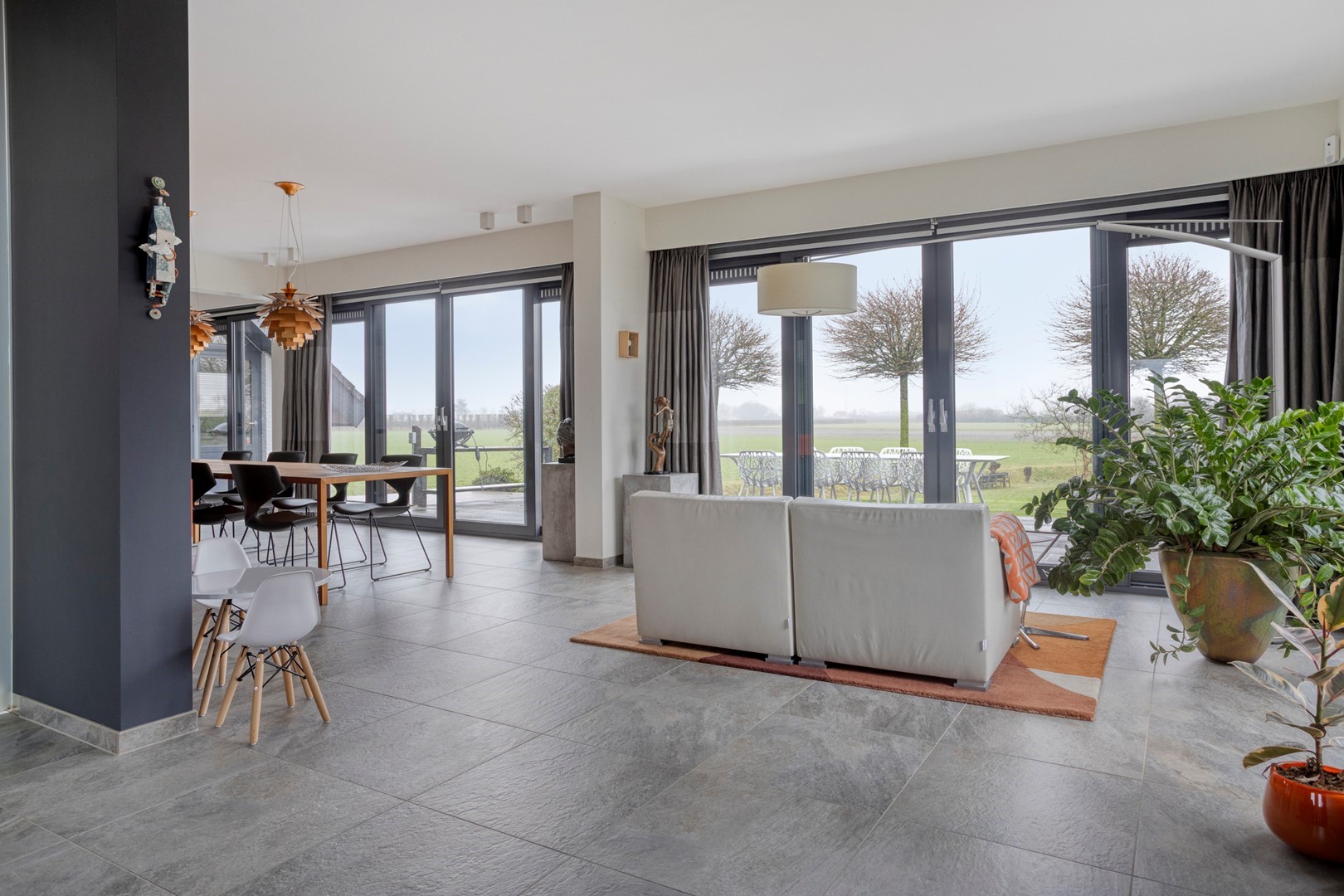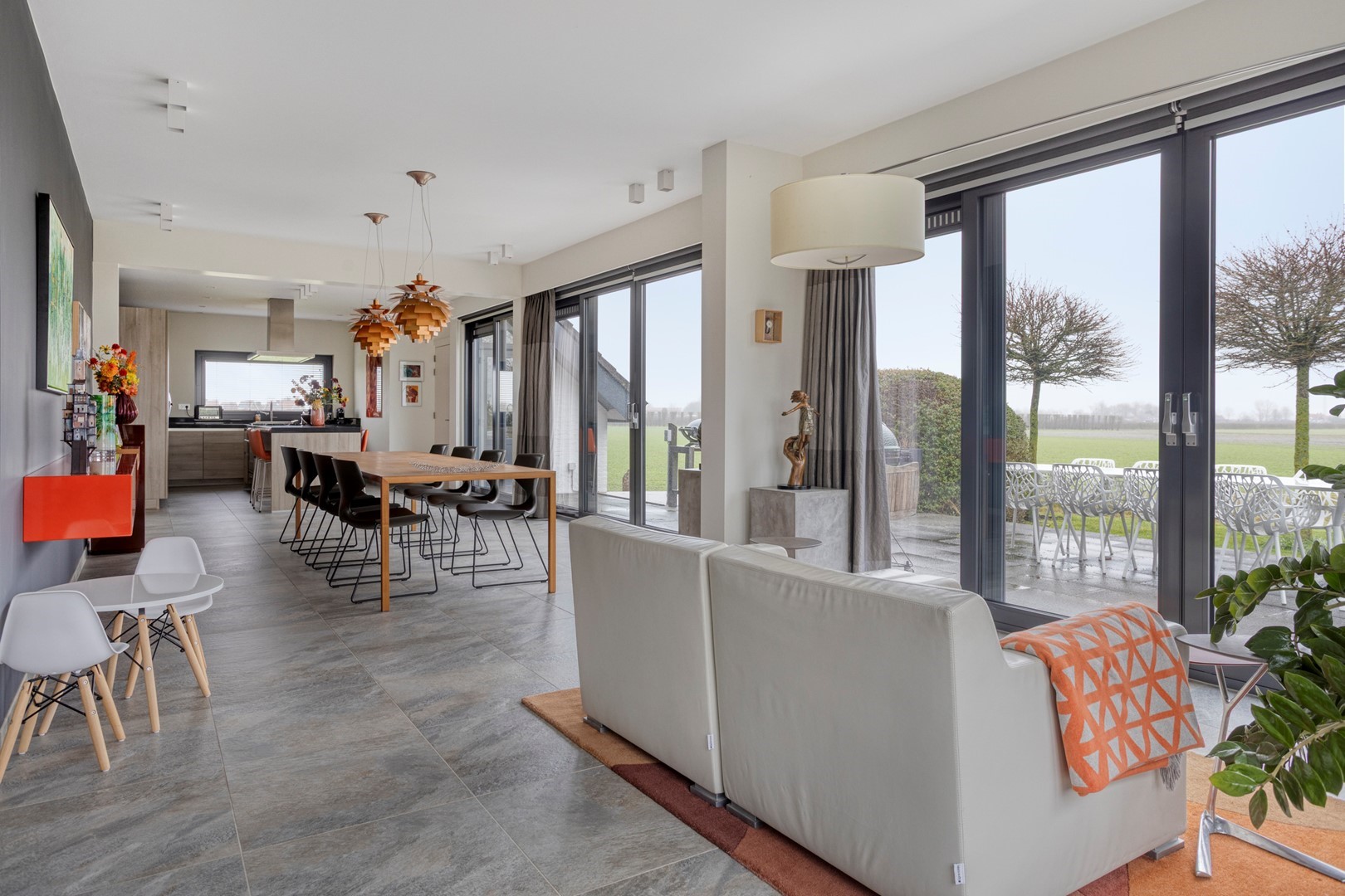 - panoramische schuifpuien rondom op de begane grond;