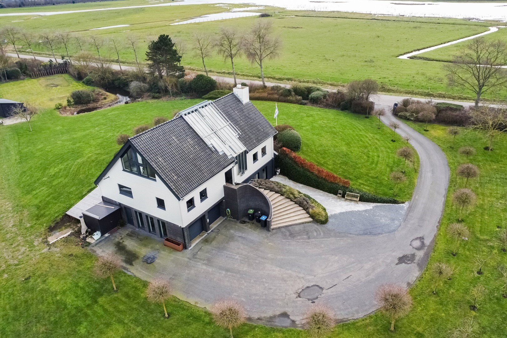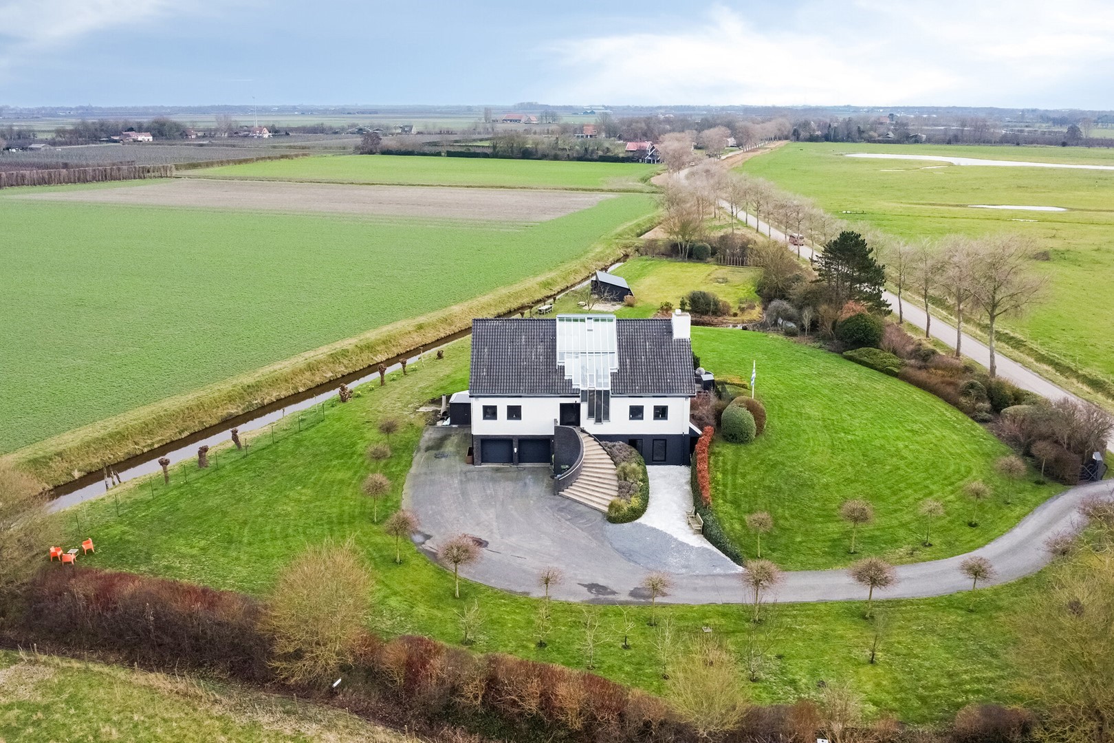 Wonen op het hoogste niveau in het hart van Zeeland. Deze indrukwekkende vrijstaande villa combineert architectonische zeggingskracht, hoogwaardig design en absolute rust op een royaal perceel van 6.380 m² met vrij uitzicht over de Zeeuwse polders, zonder inkijk en ver van buren. Alle hoofdruimtes zijn bewust georiënteerd op het omliggende landschap. Een uitzonderlijke kans voor wie hier permanent op dit niveau wil wonen, én voor wie vanuit Rotterdam, Breda of het Ruhrgebied op zoek is naar het perfecte luxe tweede huis.