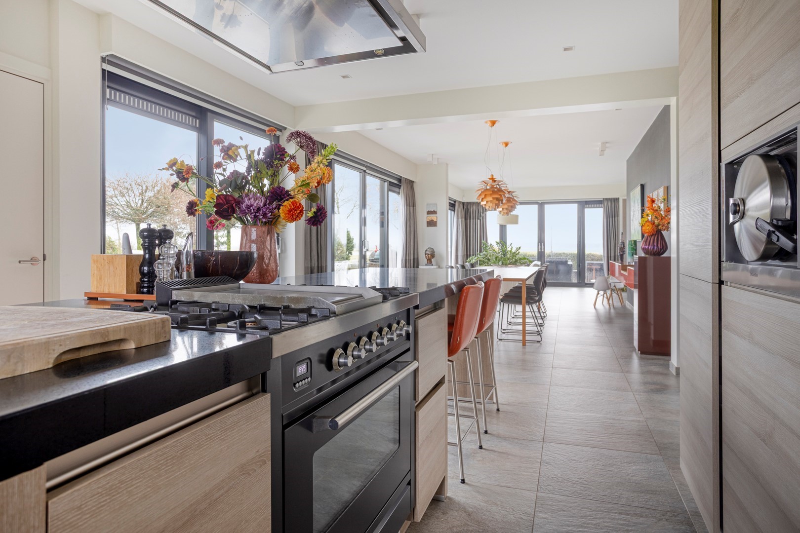 - luxe keuken met Quooker, stoomoven, wokbrander;
