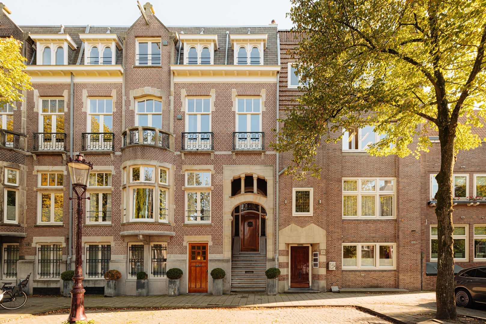 At the end of the nineteenth century, as Amsterdam’s city centre grew increasingly crowded, the desire arose for a green district close to the heart of the city. At the initiative of Van Eeghen, architect Zocher designed the Willemspark in 1881, adjoining the Vondelpark. A few decades later, the first villas appeared around its ponds — stately residences in classical styles, welcoming the city’s affluent families to this calmer and greener enclave. The grandeur of that era remains intact. Most buildings have since been restored, while the original green avenues and landscape design have matured beautifully. The neighbourhood’s charm today is enriched by its residents and its culinary highlights: Vlaamsch Broodhuys, chocolatier Linnick, greengrocer Wessels, Michelin-starred Ron Gastrobar, French seafood restaurant VISQUE, and several refined delicatessens. Situated between Vondelpark, Koninginneweg, and Amstelveenseweg — with the Museum Quarter within walking distance — this part of Amsterdam offers a rare blend of serenity and inspiration, where urban life and tranquillity coexist effortlessly.