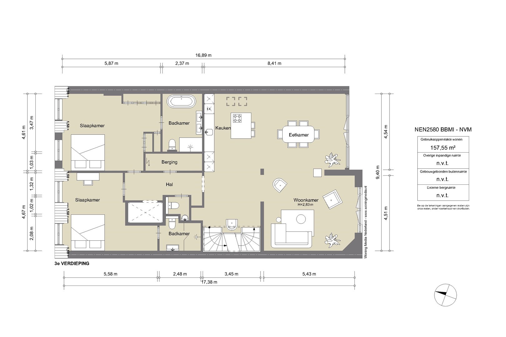 The measurement instruction is based on the NEN2580 standard and is intended to ensure a consistent method for calculating surface area. Differences in outcomes may still occur due to variations in interpretation, rounding, or measurement limitations.execution.