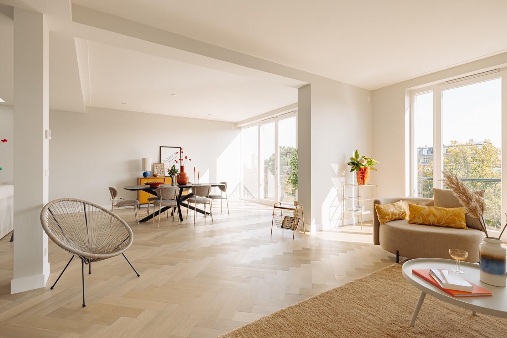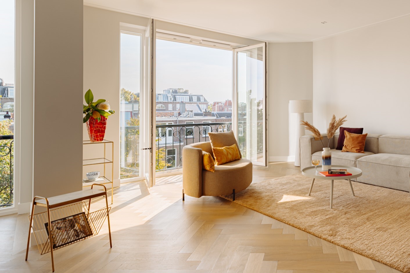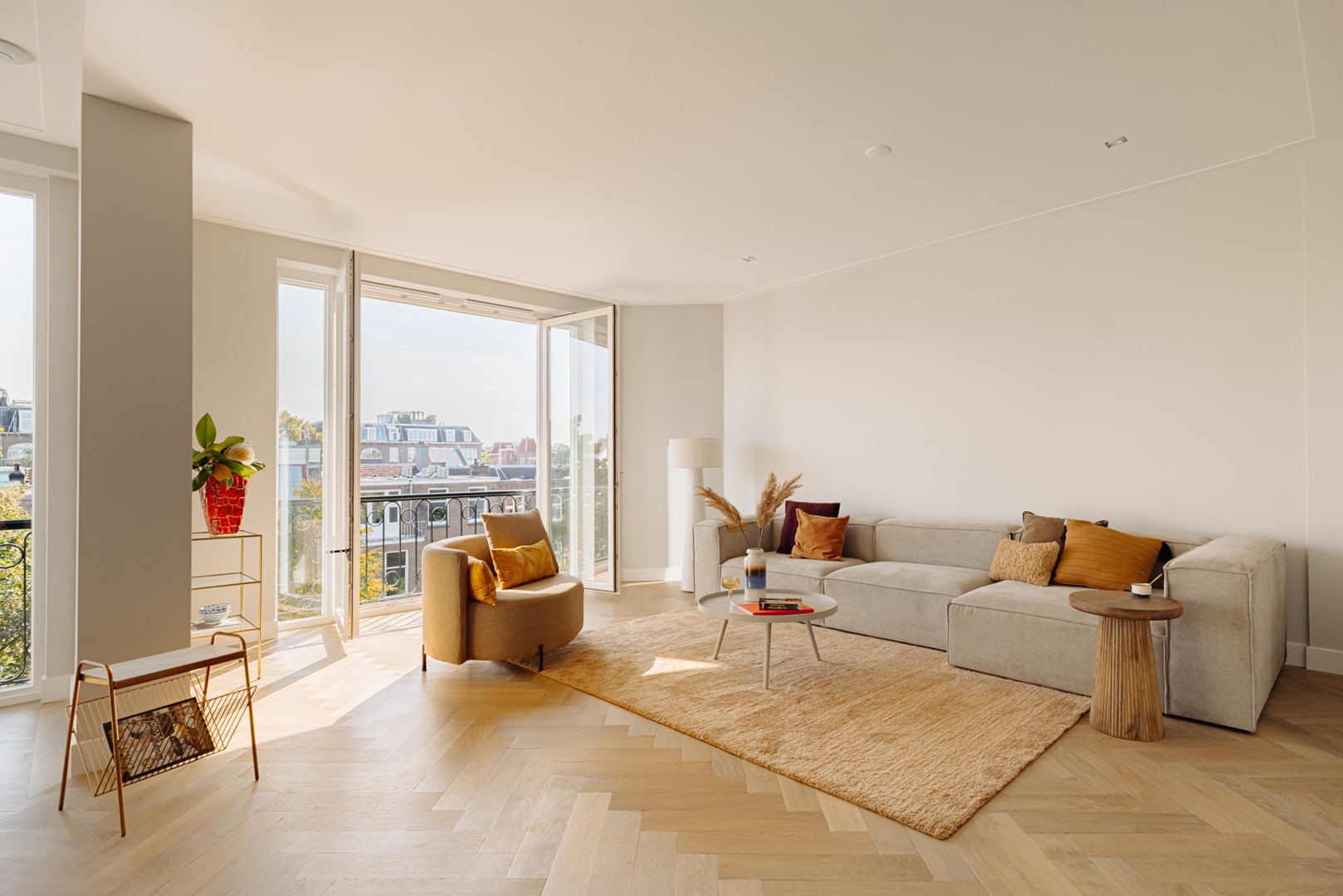 Living in Perfection | A characterful upper residence in Amsterdam-Zuid of approximately 159 m² with a rooftop terrace. Completely redeveloped with a refined vision of comfort, aesthetics, and craftsmanship. The recent renovation features bespoke solutions, high-quality installations, and a subdued palette of natural materials. Modern expression and timeless architecture converge in details such as oak herringbone floors, sophisticated lighting, and a carefully designed living kitchen, two bedrooms, and two bathrooms. With a private entrance, lift access, sunny roof terrace, and a location near Vondelpark, this residence forms a balanced whole in which everything harmoniously comes together.
