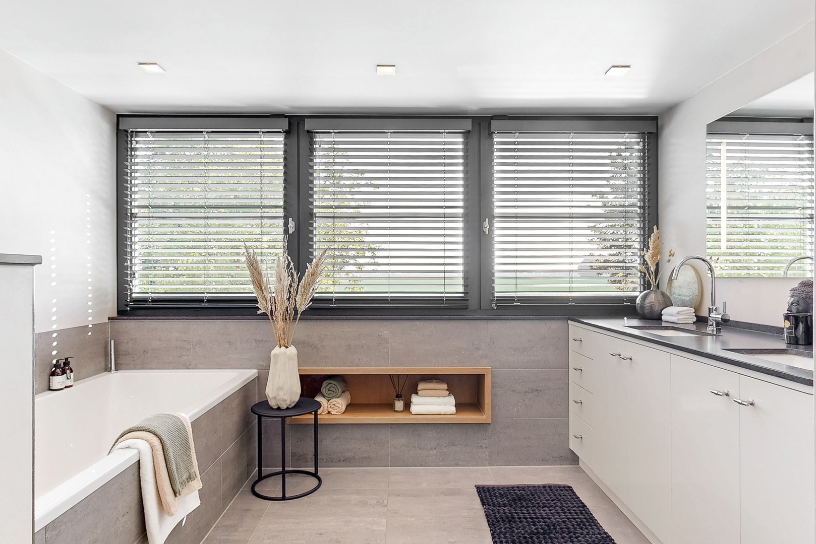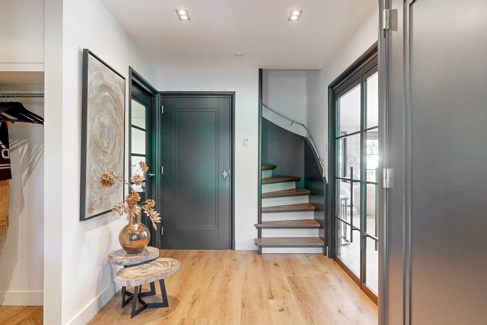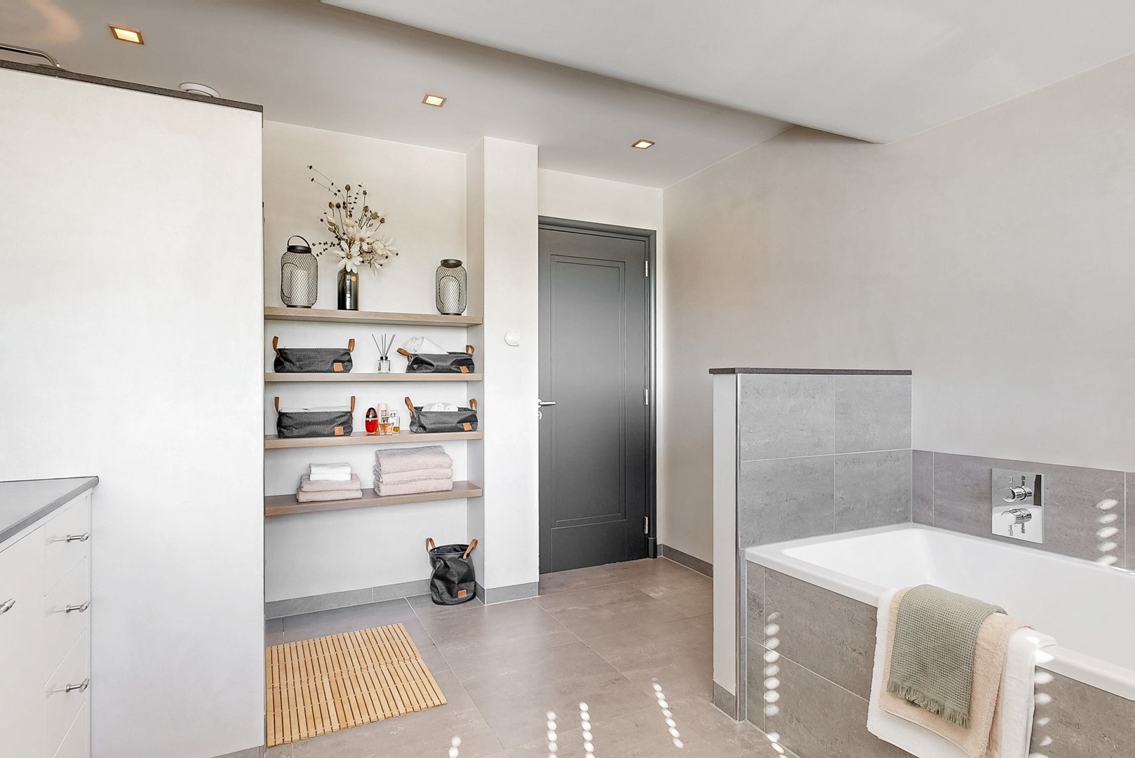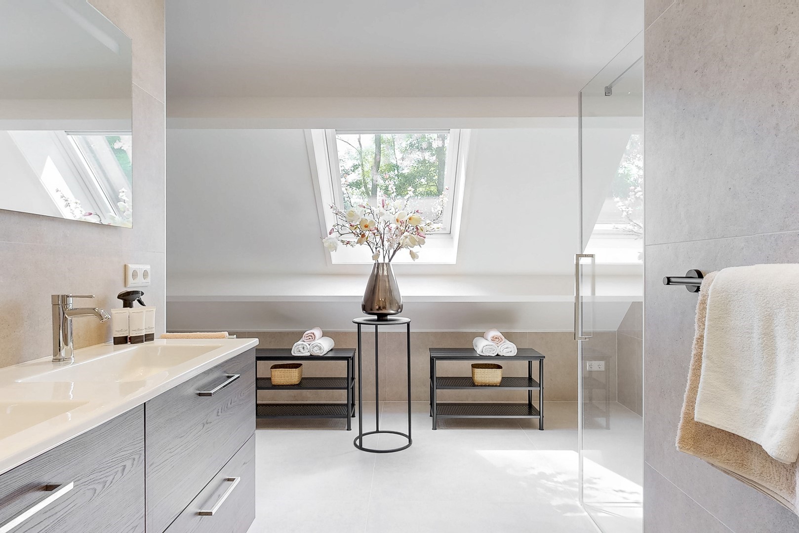 Op de verdieping bevinden zich drie ruime slaapkamers, waaronder een comfortabele master suite met inloopkasten en een balkon op het zuiden. De badkamer is stijlvol en hoogwaardig uitgevoerd en biedt een serene, wellnessachtige beleving.