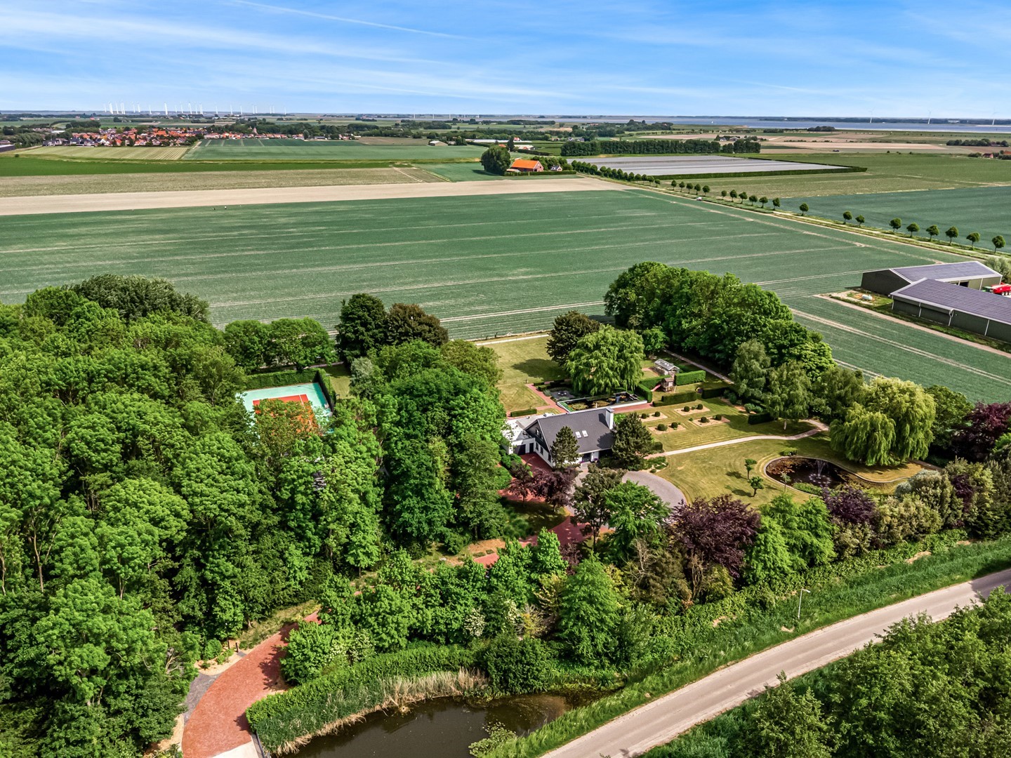 Centraal in Zeeland, op een uitzonderlijke locatie waar rust, ruimte en bereikbaarheid moeiteloos samenkomen, bevindt zich deze exclusieve vrijstaande villa met bijgebouw (totaal ca. 340 m² woonoppervlak) op een indrukwekkend landgoed van circa 20.000 m². Oude Nieuwlandseweg 3 in Nieuwerkerk biedt een zeldzame combinatie van privacy, luxe en verfijnd buitenleven. Met een onder architectuur aangelegde parkachtige tuin, een privétennisbaan, meerdere terrassen en een hoogwaardig afgewerkt, multifunctioneel bijgebouw (2024), is dit een residentie waar elke dag voelt als een retreat.