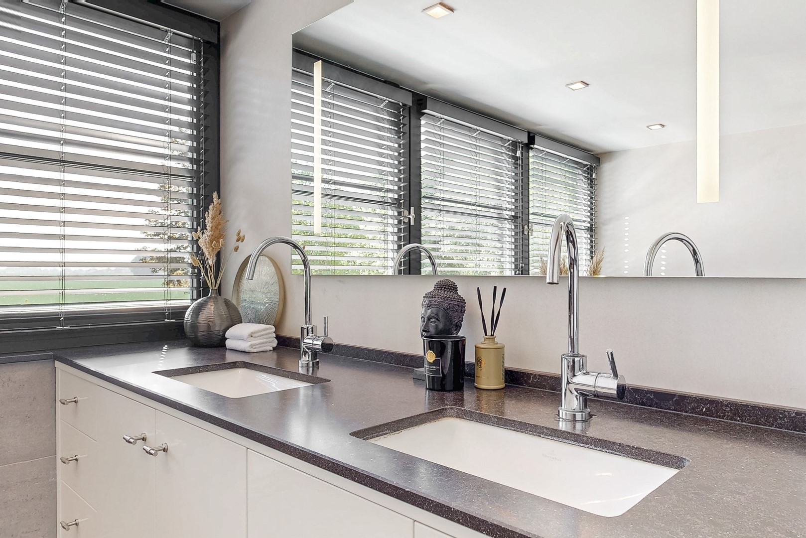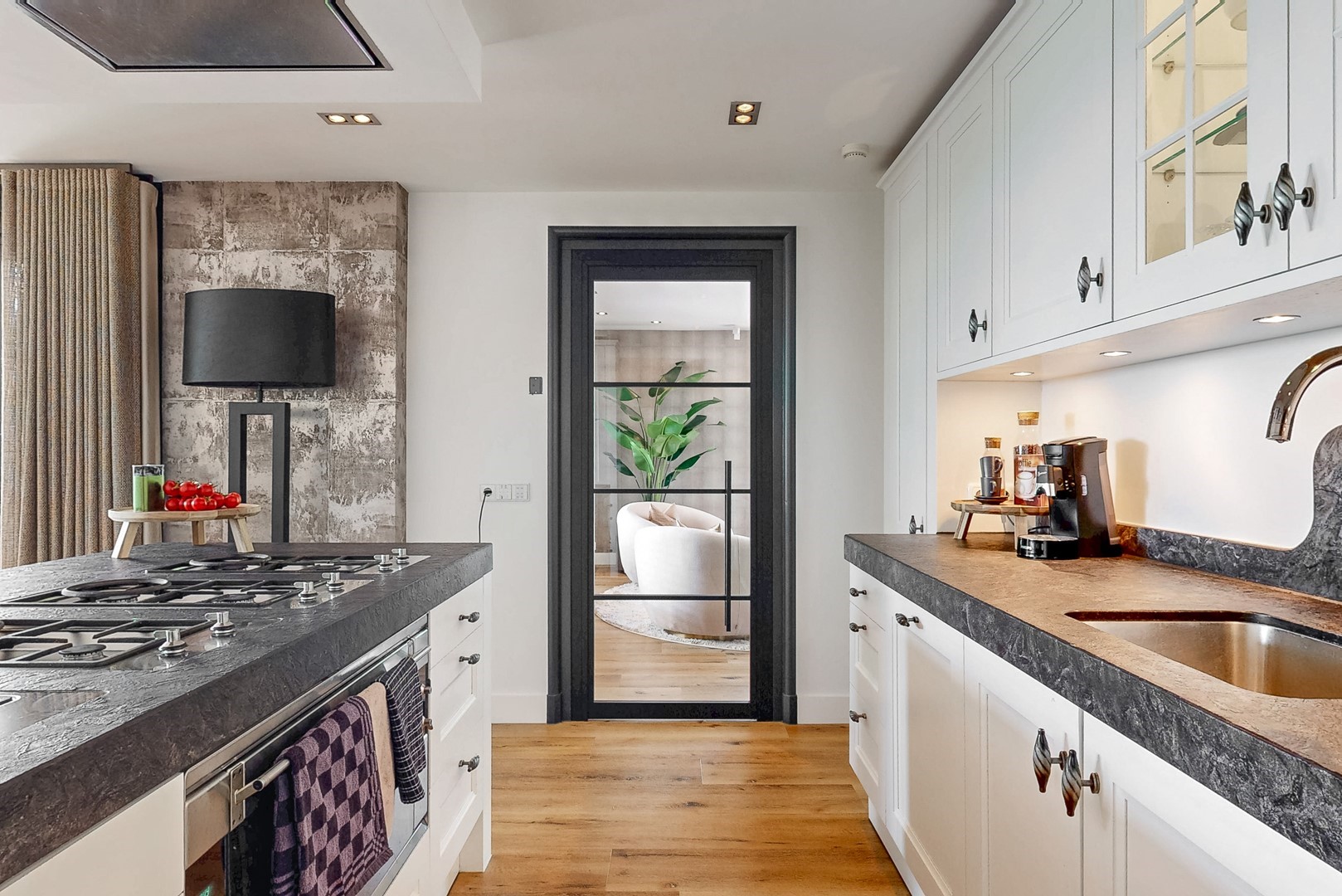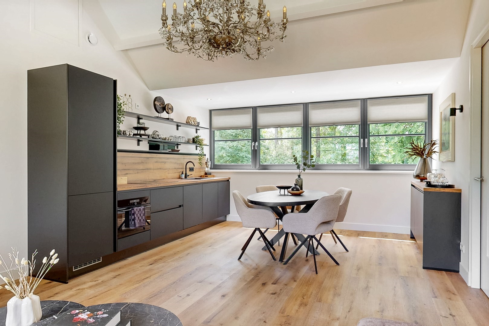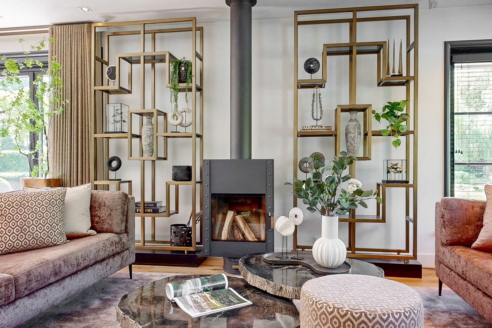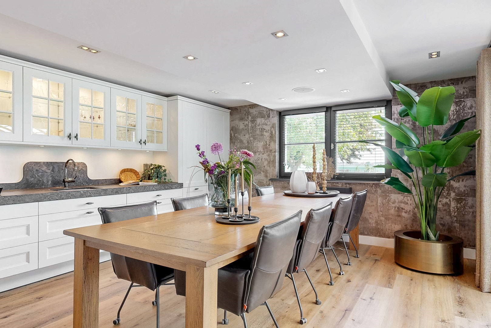 Ook binnen zet die kwaliteit zich moeiteloos voort. De villa kenmerkt zich door een uitgebalanceerde indeling, royale leefruimtes en een warme, elegante sfeer. De woonkamer met haard en panoramisch tuinzicht, de luxe woonkeuken met kookeiland en harmonicadeuren naar het overdekte terras, en de diverse verblijfsruimtes maken dit een huis dat uitnodigt tot zowel ontspannen als ontvangen.