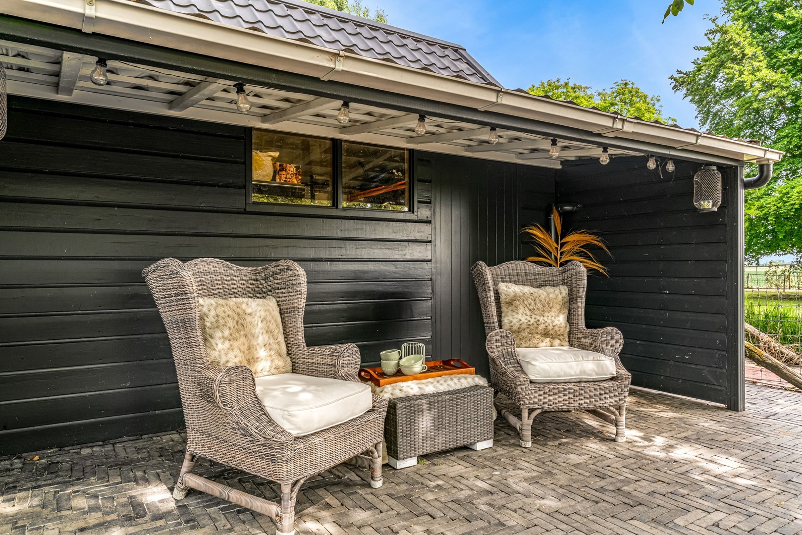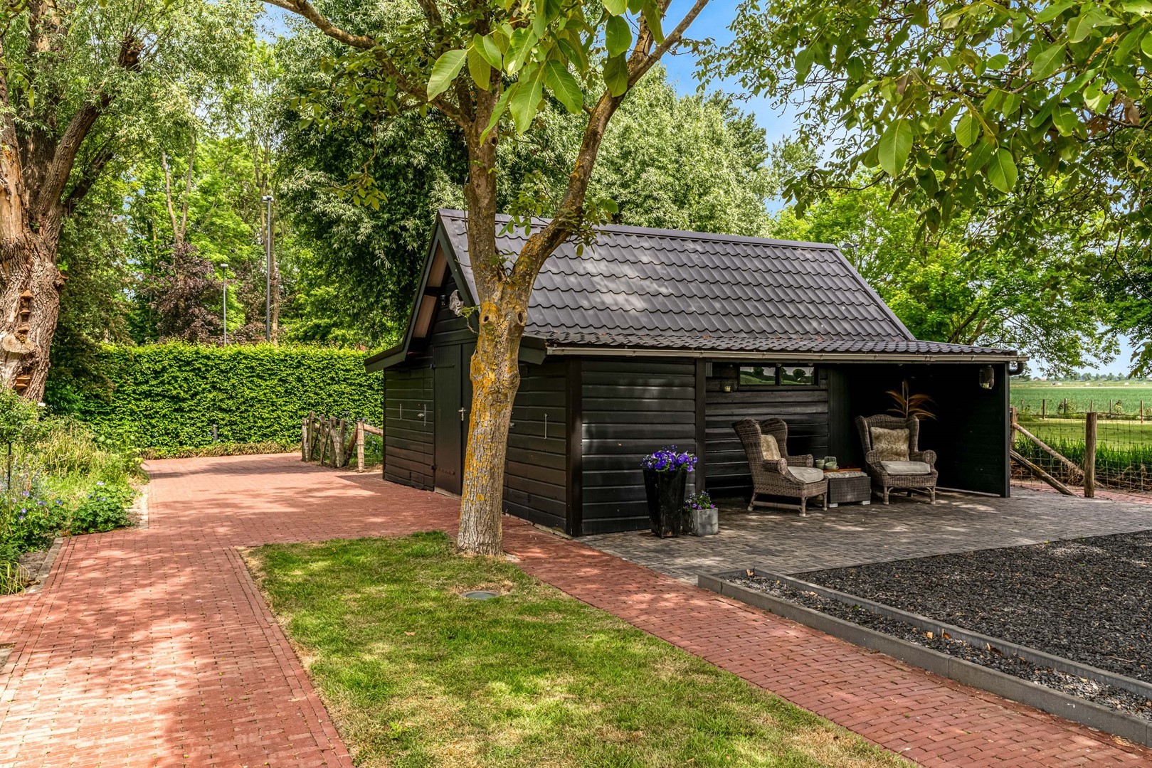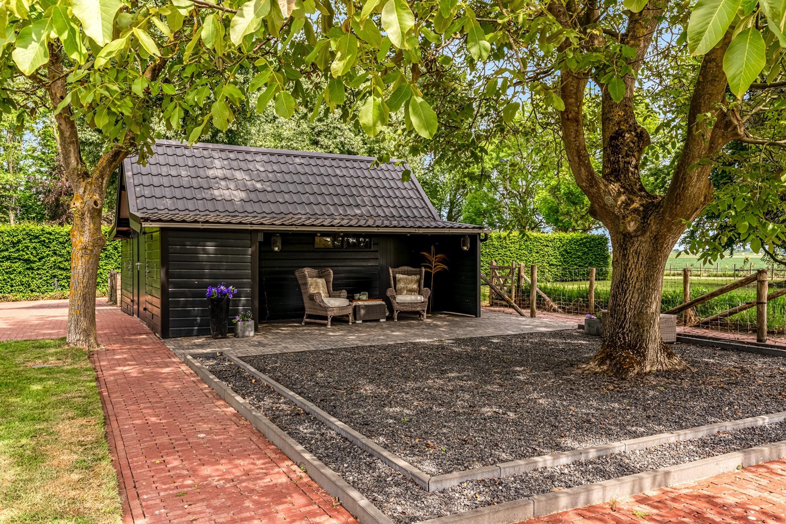 - vrijstaande schuur met overkapping en ruimte voor opslag of hobbydieren;