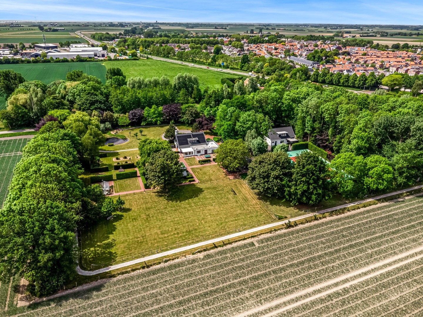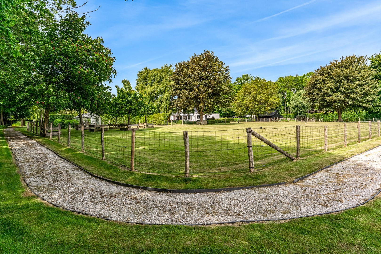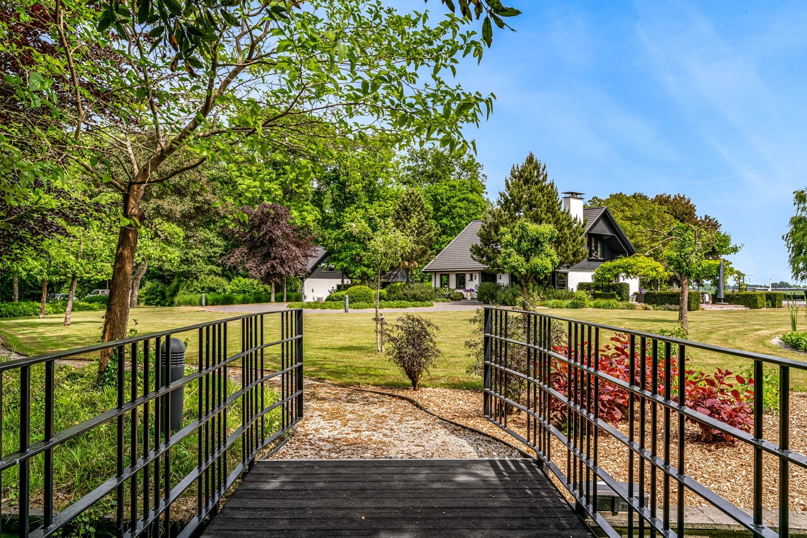 - toegang via privébrug met elektrische poort en lange oprijlaan;