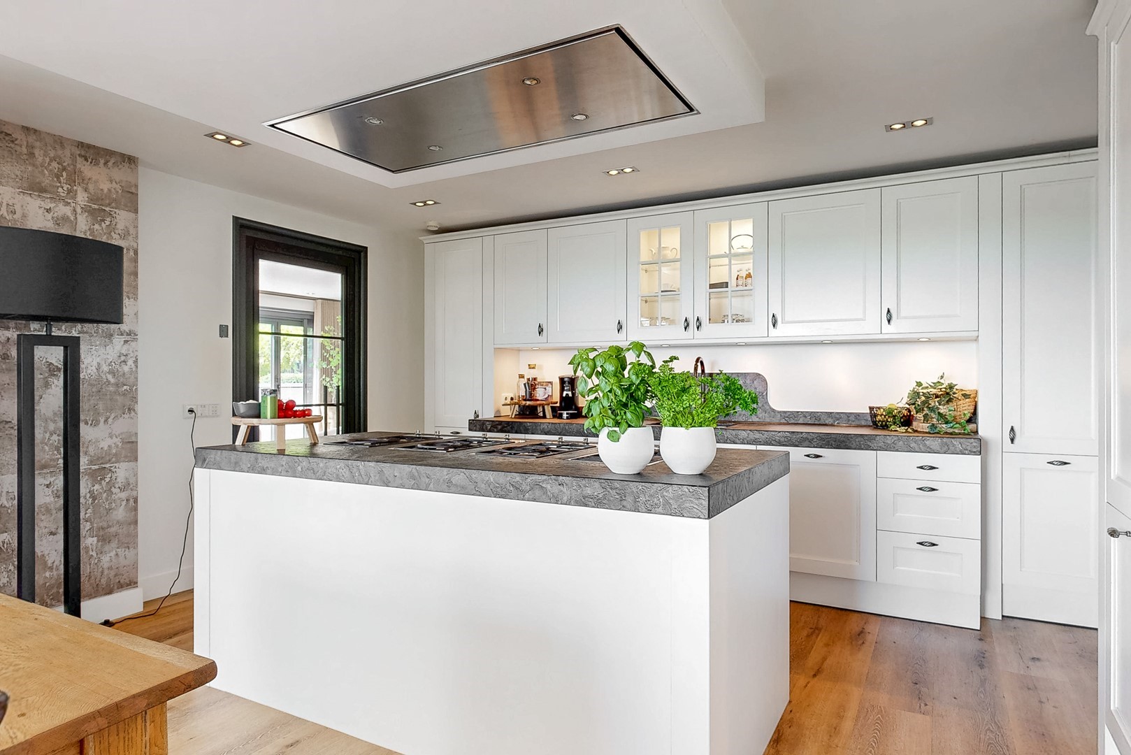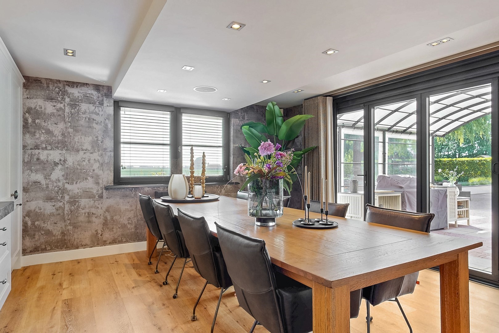 - luxe woonkeuken met kookeiland, airconditioning, harmonicadeuren en toegang tot overdekt terras;