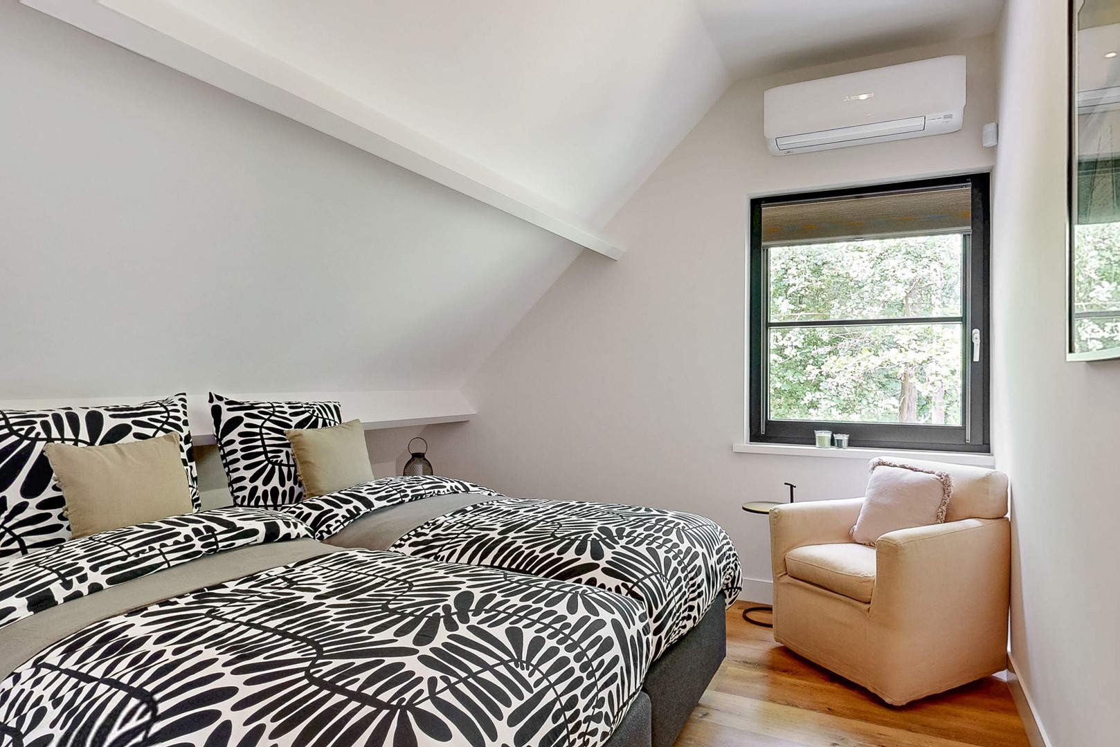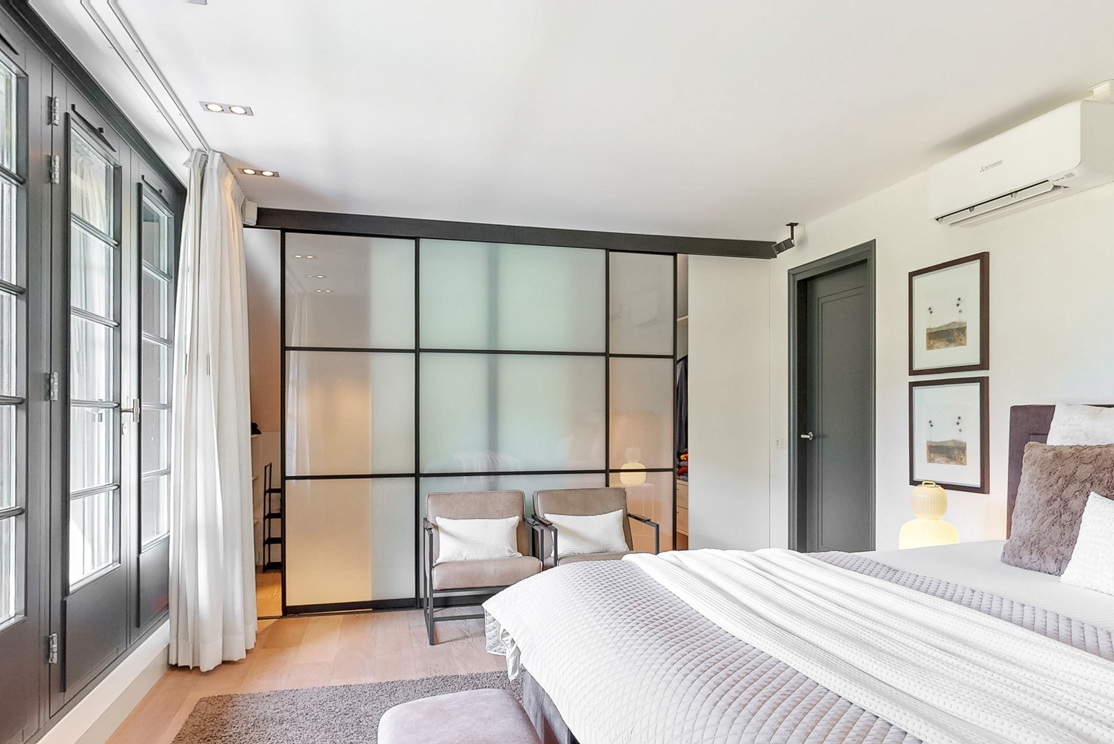 - masterbedroom met twee inloopkasten en balkon met tuinzicht;