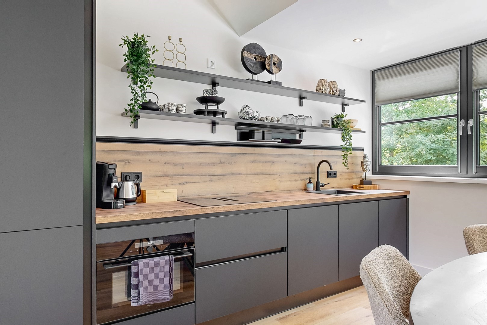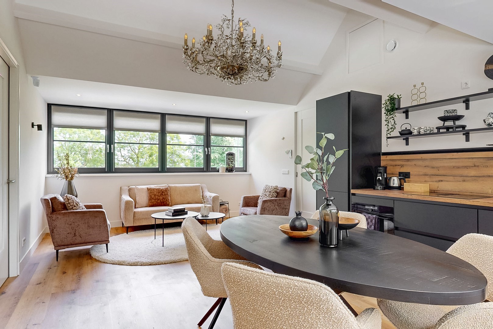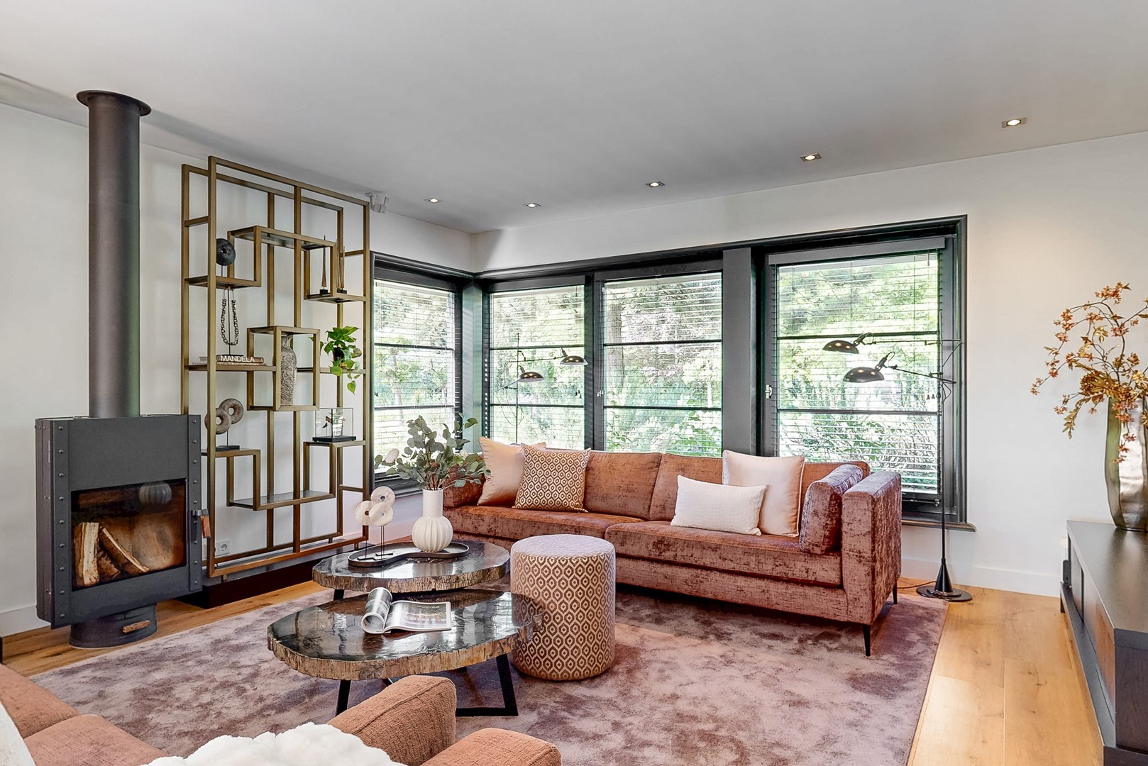 - hoogwaardige afwerking en sfeervolle woonkamer met haard en tuinzicht;