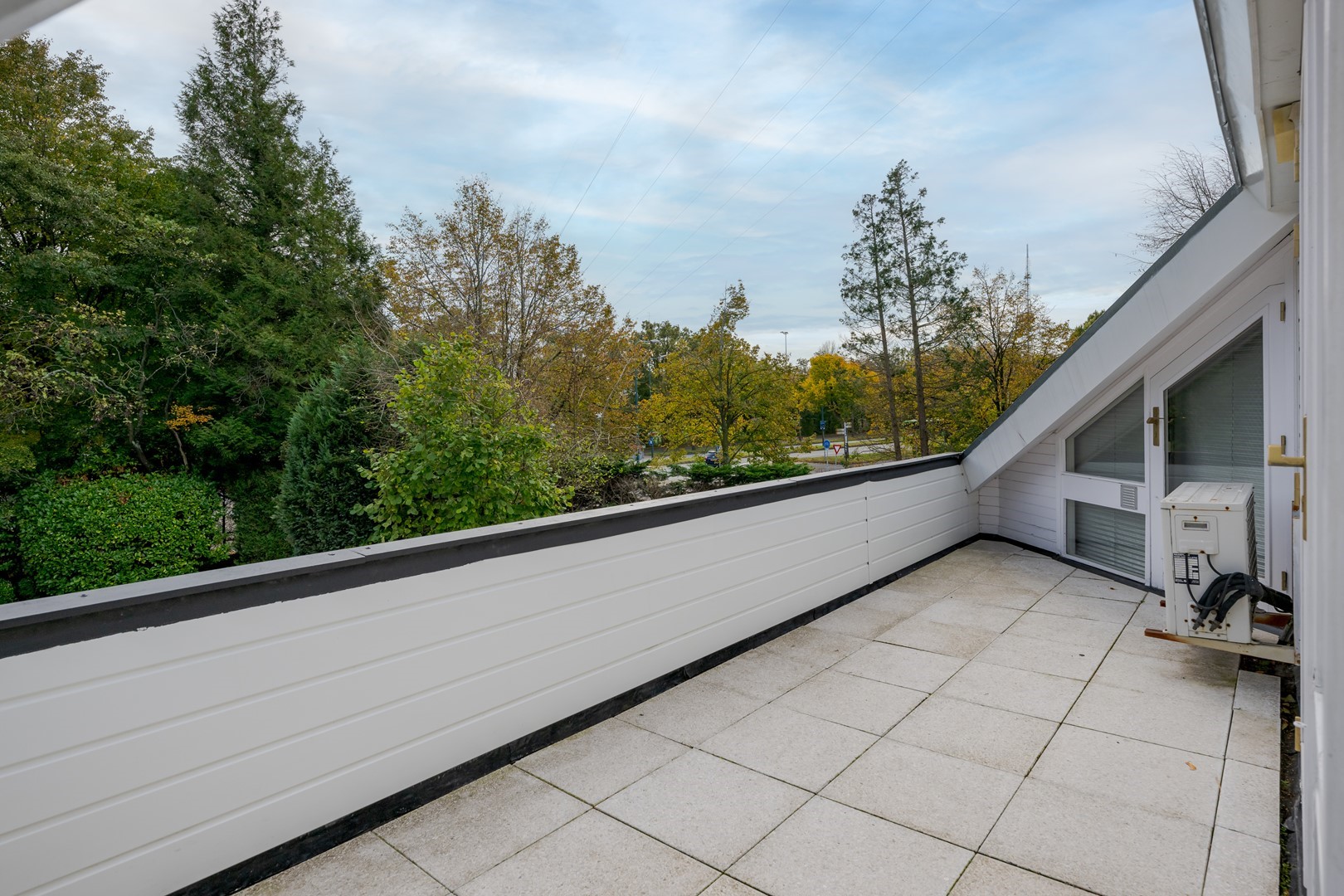 Het bijgebouw kent een eigen adres: Mariahoevelaan 1. Het ene gedeelte bestaat uit een ruime garage met vaste kasten en de opstelling voor CV, wasmachine en droger. Het woongedeelte heeft een eigen entree op de begane grond met een leefruimte met keukenopstelling en een badkamer voorzien van toilet, douche en wastafel. Op de verdieping treft u een ruime en lichte woonkamer en een slaapkamer.