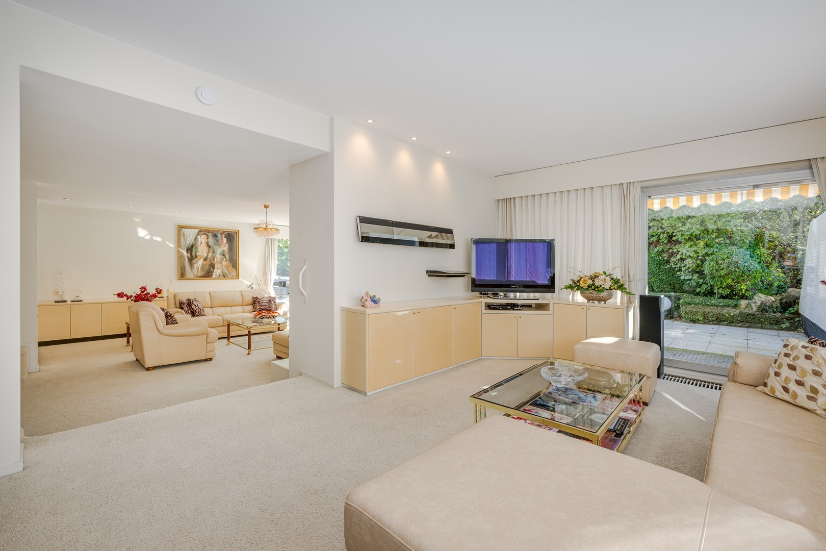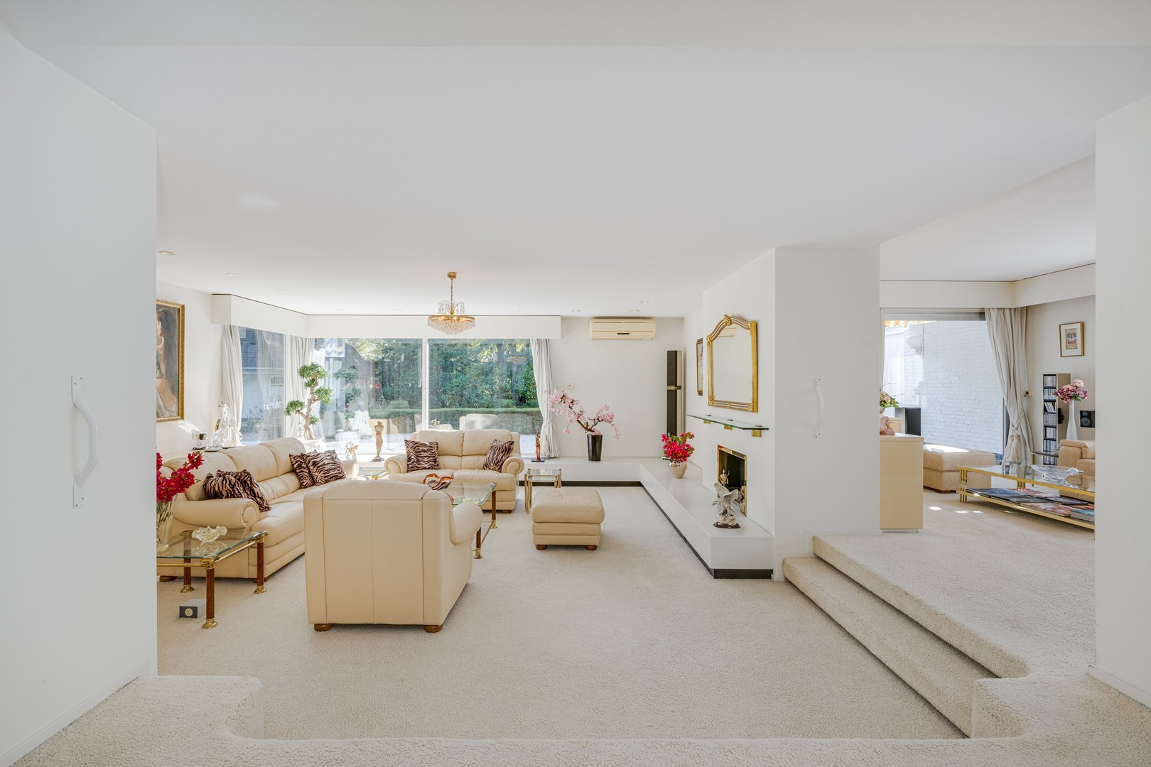 Bij binnenkomst betreedt u een lichte en zeer ruim bemeten entree met vide welke is voorzien van een garderobe. Wanneer u rechtdoor loopt komt u in het woongedeelte dat bestaat uit een eetkamer, een woonkamer en een family room/tv-kamer. Alles bij elkaar beslaan deze ruimten meer dan 100m2! Dankzij de grote raampartijen en de goede plafondhoogte voelt het geheel licht en ruim aan. De woning wordt omgeven door groen, wat door de grote ramen vanuit elke kamer zichtbaar is.