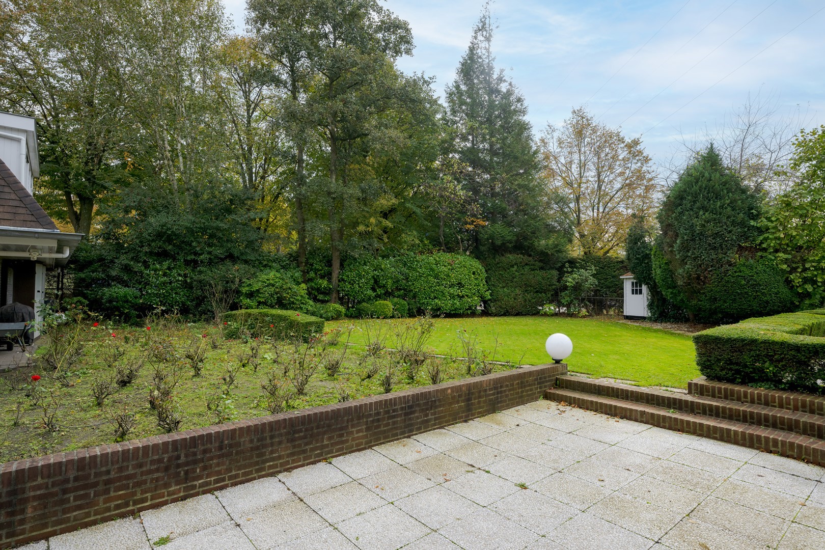 - Een prachtige tuin rondom met diverse terrassen voor zon en schaduw, 2 houten bergingen plus een automatisch sproeisysteem (van het merk Rainbird);