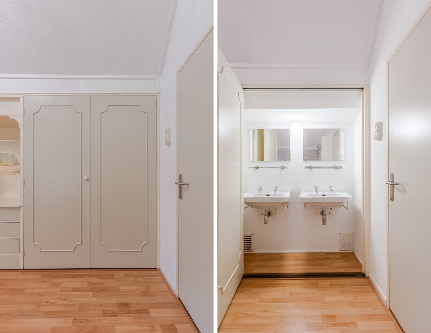 De lichtinval in alle ruimtes is uitstekend. De grootste slaapkamer op deze verdieping heeft een eigen inloopkast en een eigen badkamer. In deze badkamer tref je een staand toilet, een ligbad en een dubbele wastafel aan. De andere badkamer heeft een centrale ligging op deze verdieping en is uitgerust met een ligbad, een dubbele wastafel en een inloopdouche. De witgoedruimte bevindt zich ook op deze etage met daar aansluiting voor wasmachine en droger, een ouderwets lavet en een grote inbouwkast.