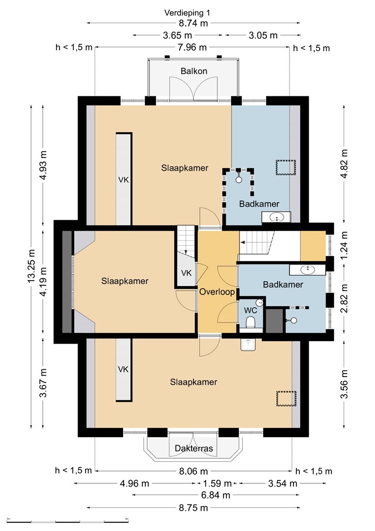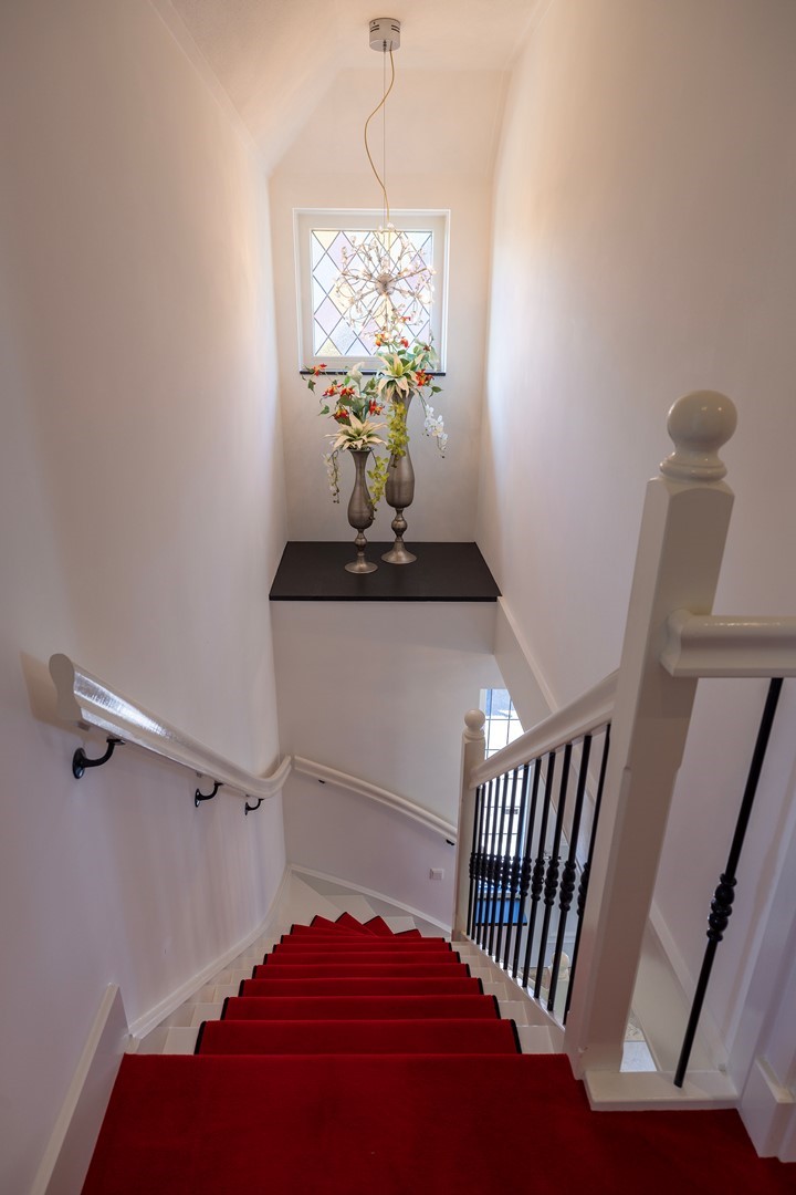 Via het royale trappenhuis bereikt u vanuit de hal de eerste verdieping van de woning. Deze verdieping beschikt over drie slaapkamers, elk met een eigen karakter en veel lichtinval.