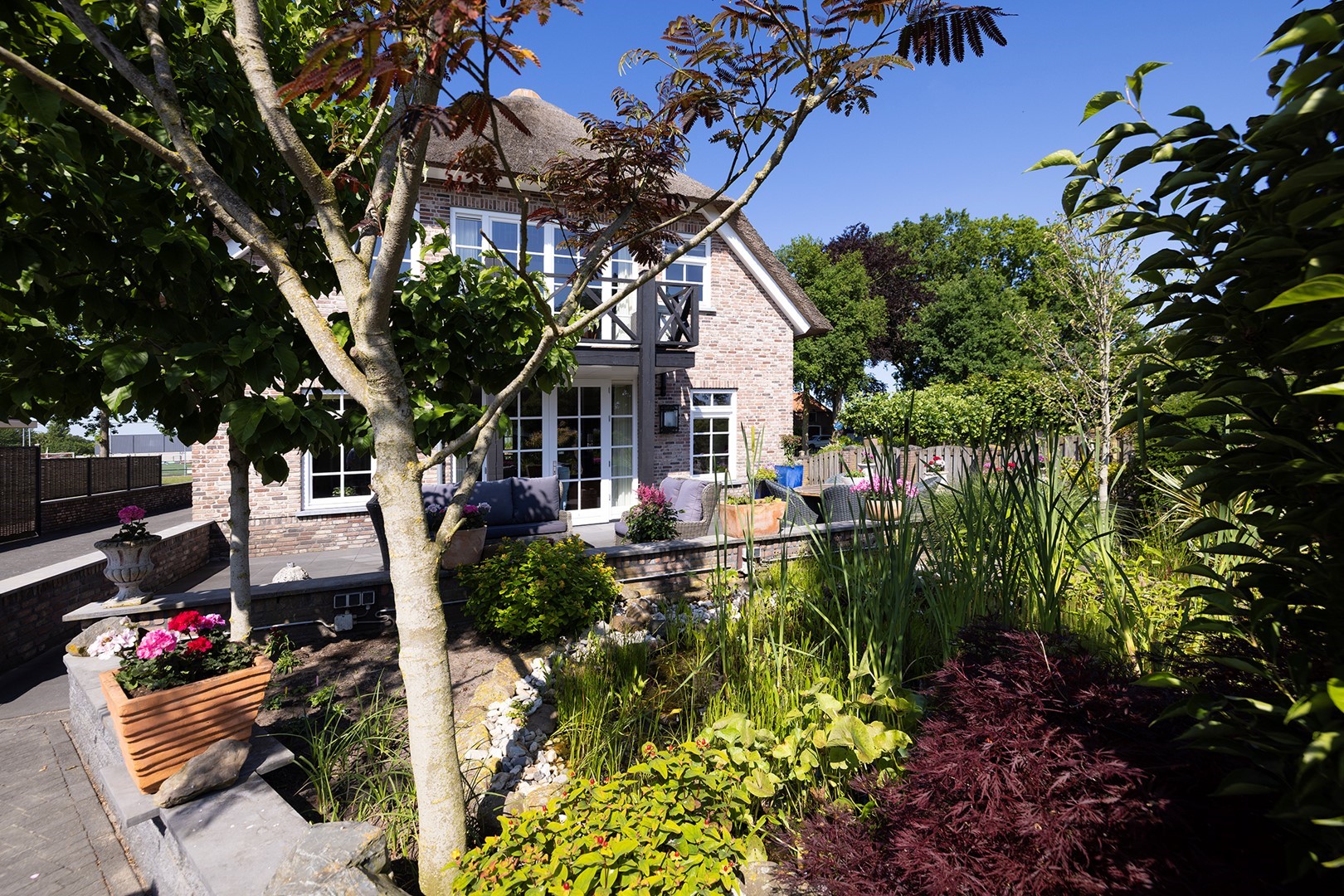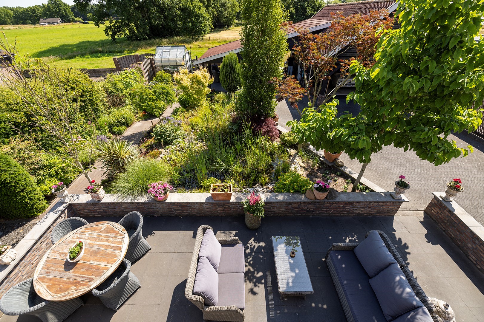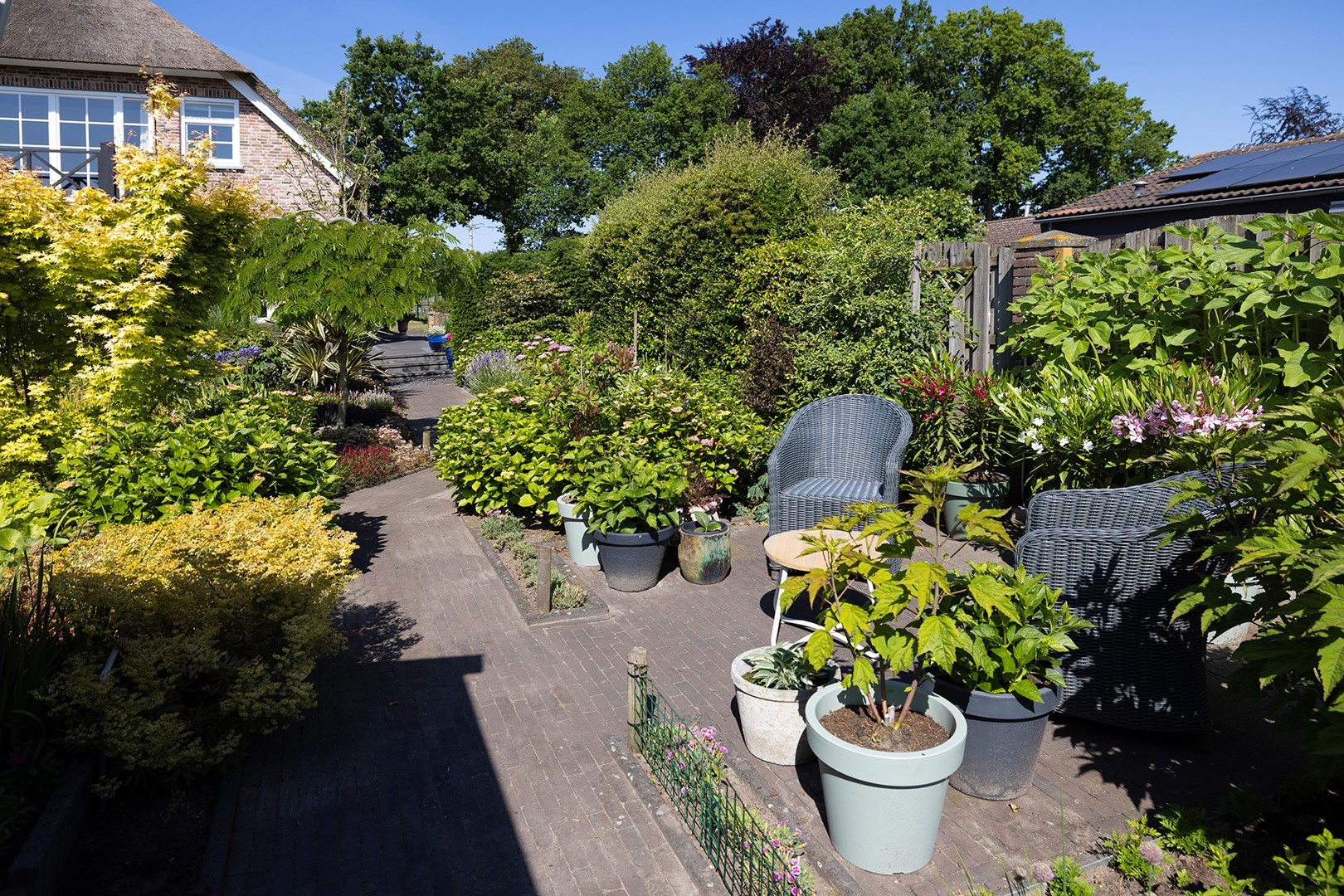 Centraal in de tuin ligt een prachtig aangelegde vijver, omringd door sfeervolle perkjes en meerdere terrasmogelijkheden waar u op elk moment van de dag van de zon of juist de schaduw kunt genieten. De aanleg van de tuin is met zorg uitgevoerd, met oog voor zowel esthetiek als functionaliteit.