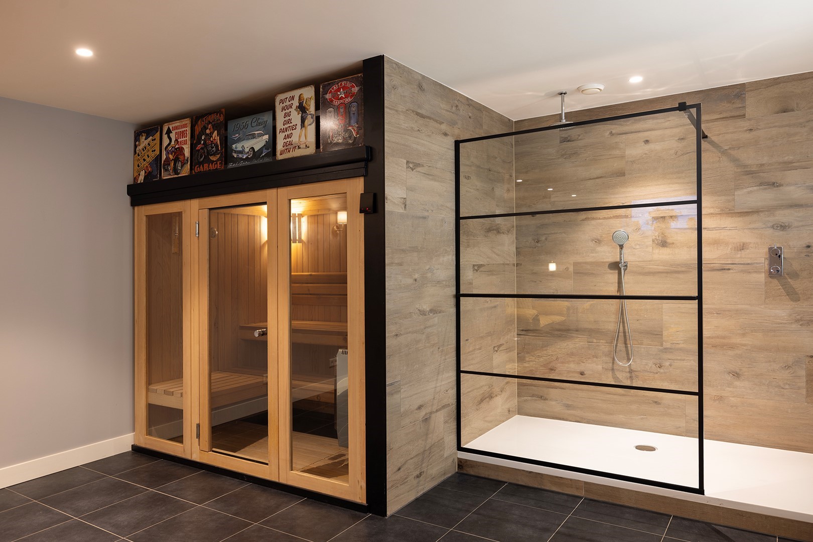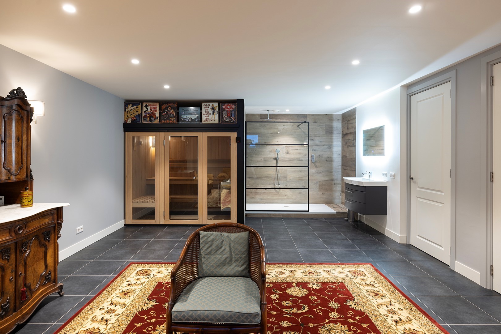 - Gehele woning is onderkelderd met o.a. sport-relaxruimte met elektrische sauna en inloopdouche met badmeubel;