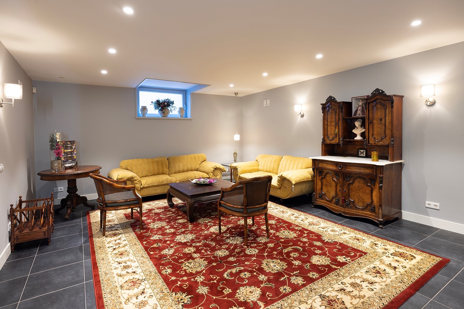De gehele woning is onderkelderd én voorzien van vloerverwarming. Via een vaste trap vanuit de hal is het souterrain bereikbaar. Deze verdieping biedt niet alleen veel extra ruimte, maar is ook zeer functioneel ingericht. In het souterrain zijn twee zeer royale multifunctionele ruimtes: een atelier/kantoor en een sport-wellnessruimte.