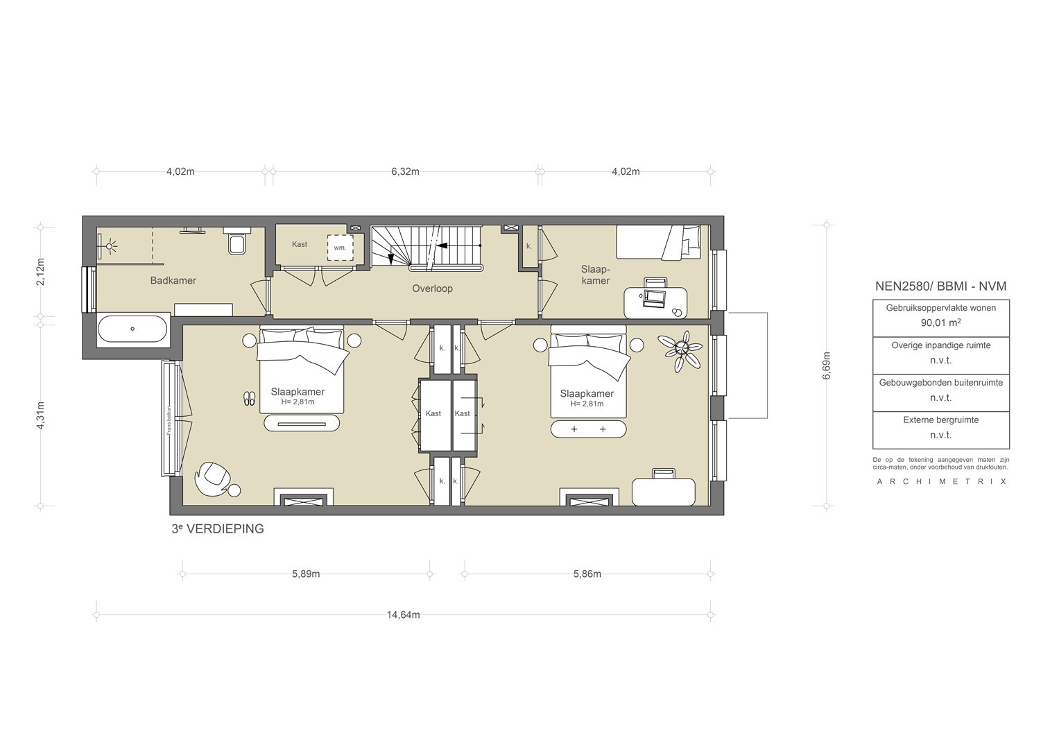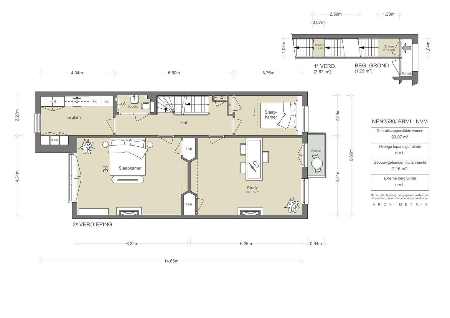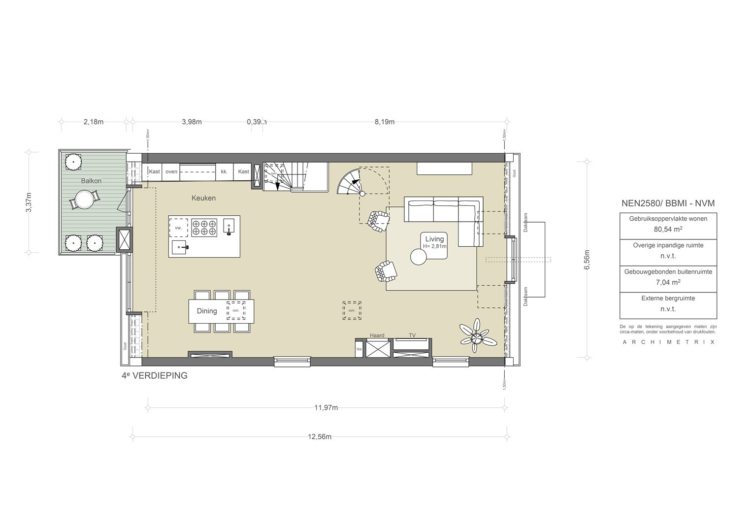 The measurement instruction is based on NEN2580, intended to provide a more uniform method of determining usable floor area. Variations in measurement outcomes may still occur due to interpretation differences, rounding or practical limitations during the measurement process.