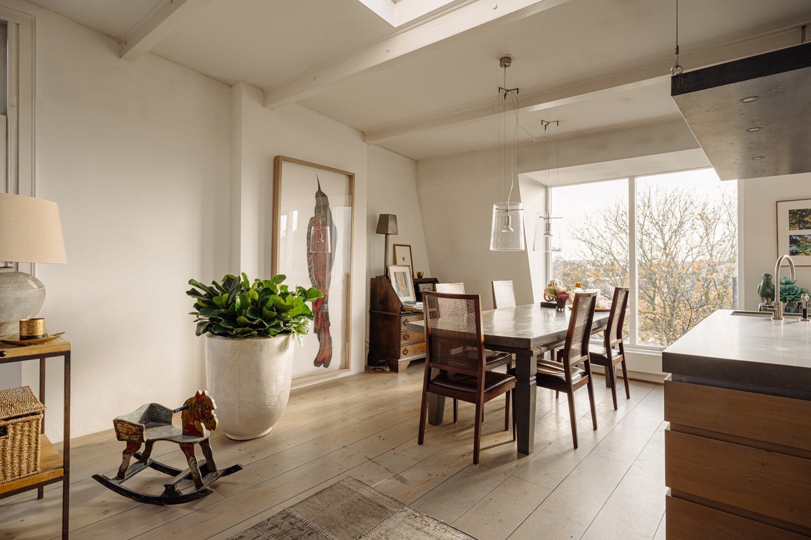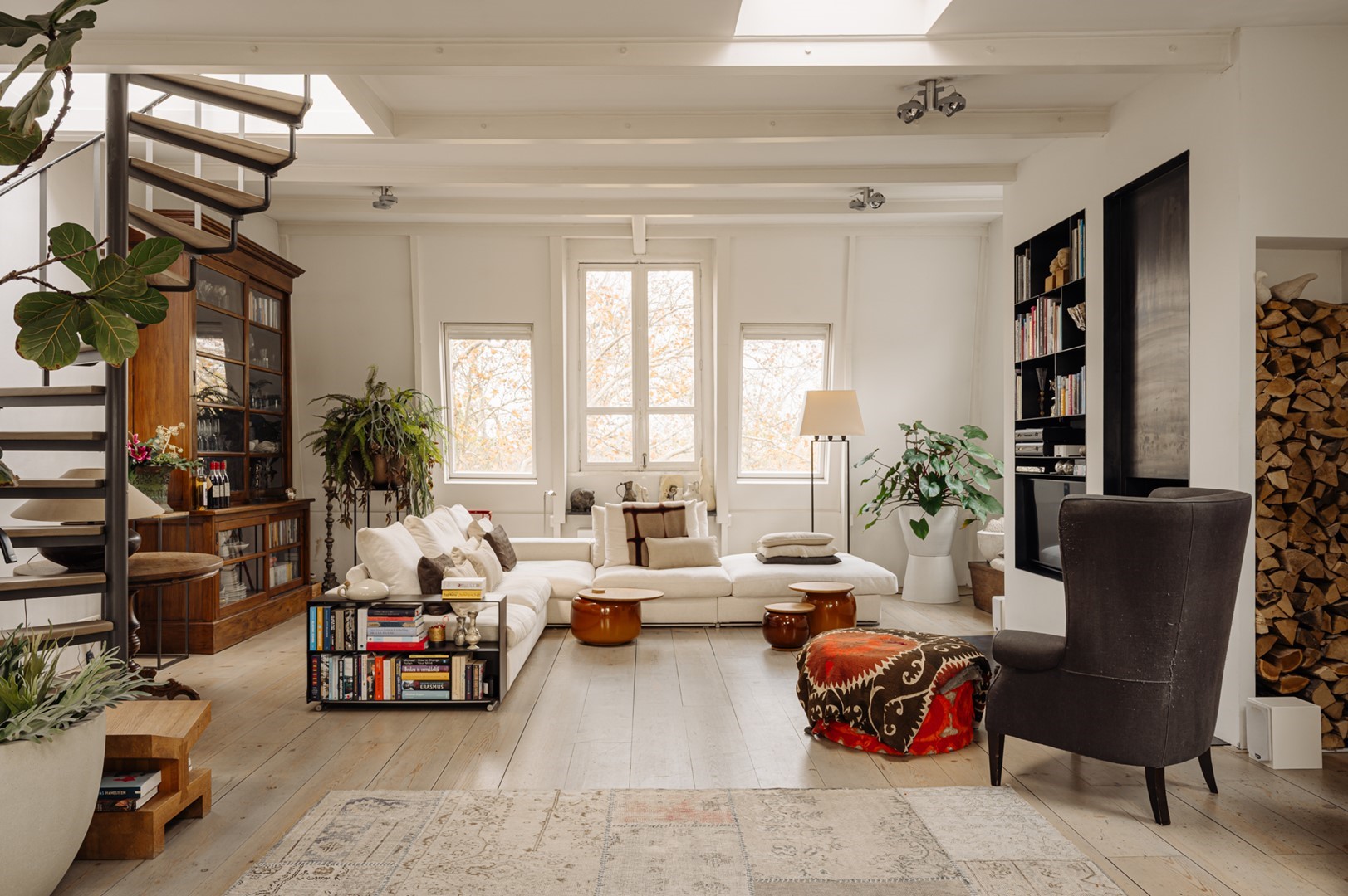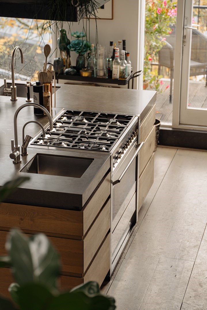 “Door een aantal verbouwingen hebben we dat loftgevoel in de loop van de jaren kunnen versterken. De stoere stalen, plafondhoge open haard is een van de ingrepen die wat dat betreft nog steeds een wow-gevoel oproepen. Heerlijk aan dit huis zijn ook de vele ruime kamers, of we er nu slapen, werken, of muziek maken.”