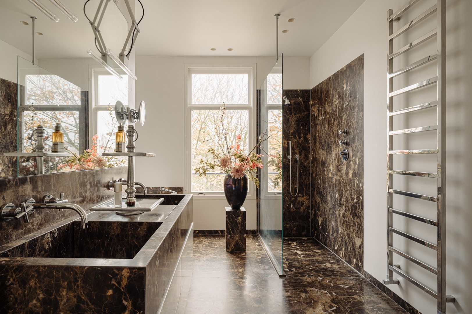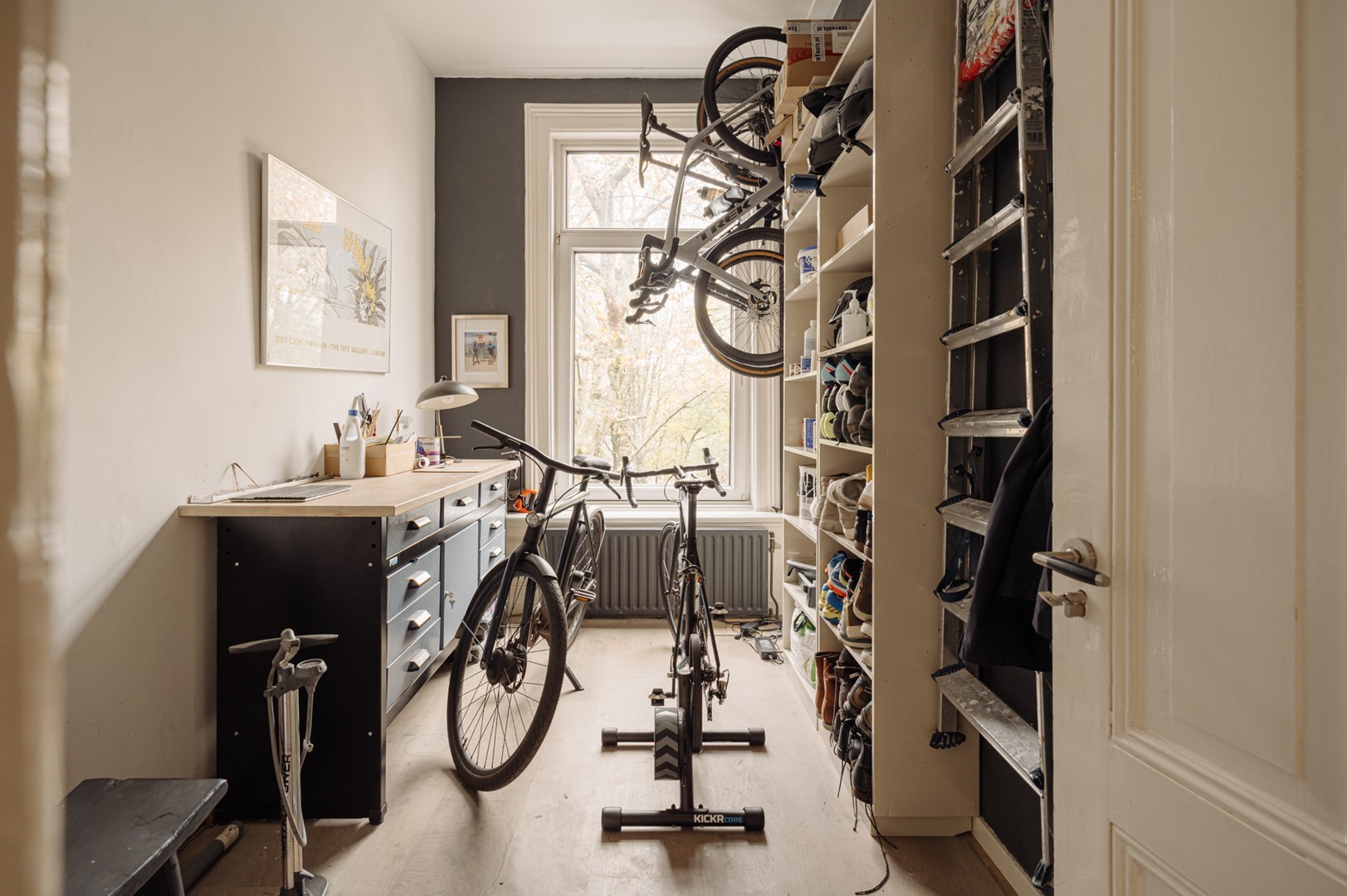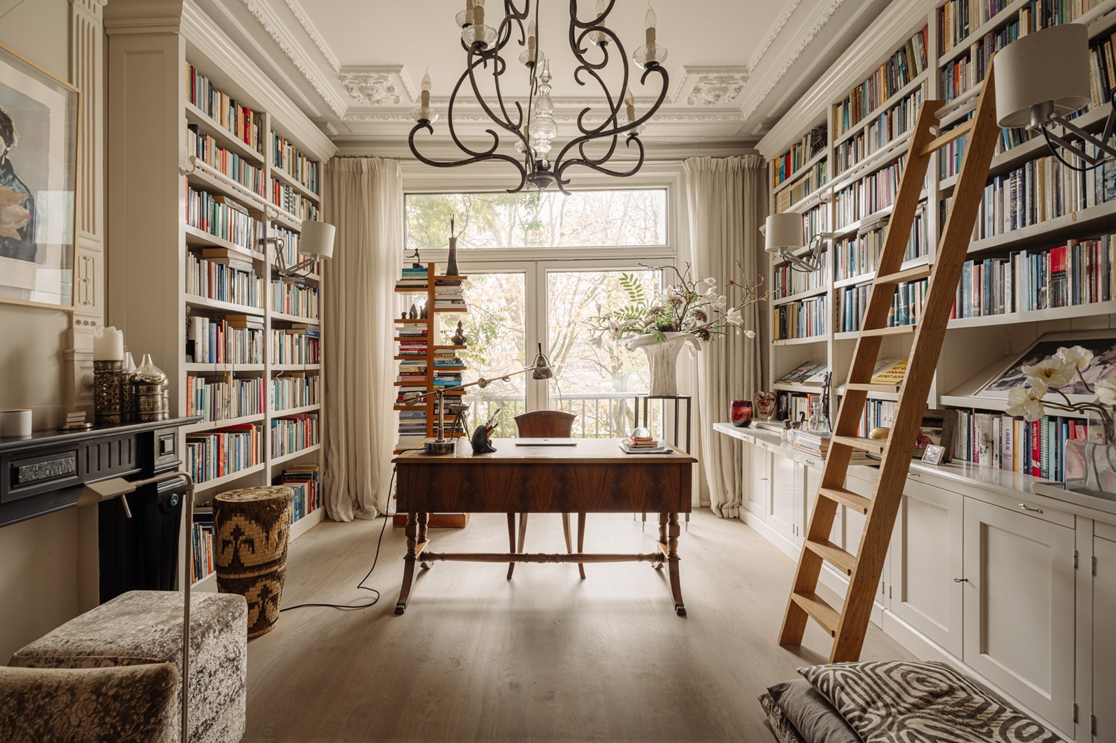 “Door een aantal verbouwingen hebben we dat loftgevoel in de loop van de jaren kunnen versterken. De stoere stalen, plafondhoge open haard is een van de ingrepen die wat dat betreft nog steeds een wow-gevoel oproepen. Heerlijk aan dit huis zijn ook de vele ruime kamers, of we er nu slapen, werken, of muziek maken.”
