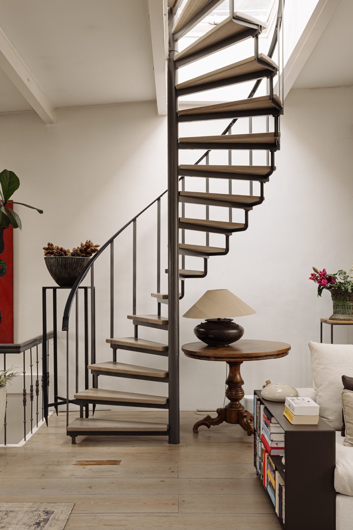 “Through several renovations, we’ve been able to enhance that loft-like feeling over the years. The bold, full-height steel fireplace remains one of those features that still gives us a wow-moment. We also love the many spacious rooms — whether we’re sleeping, working or making music.”