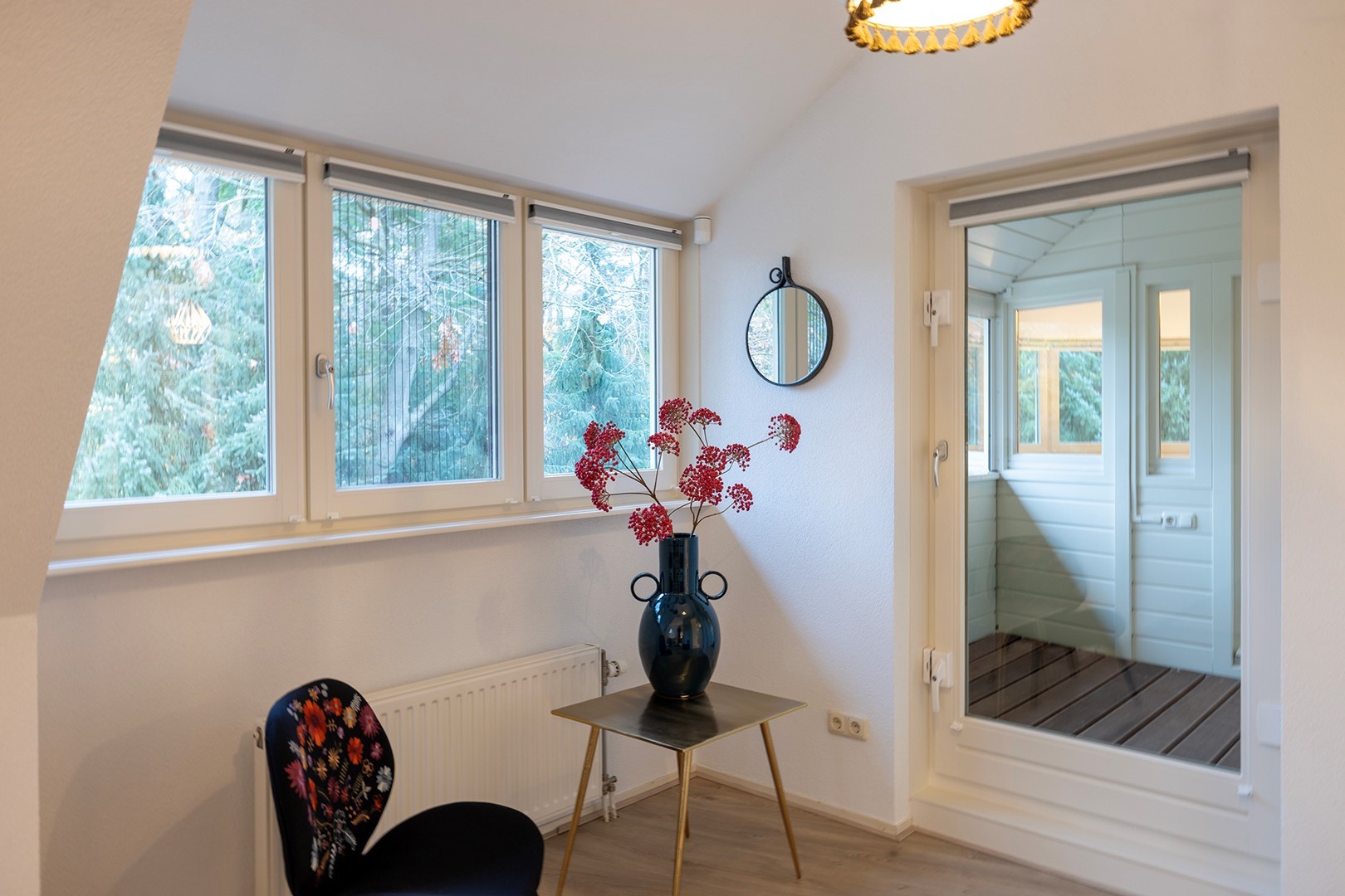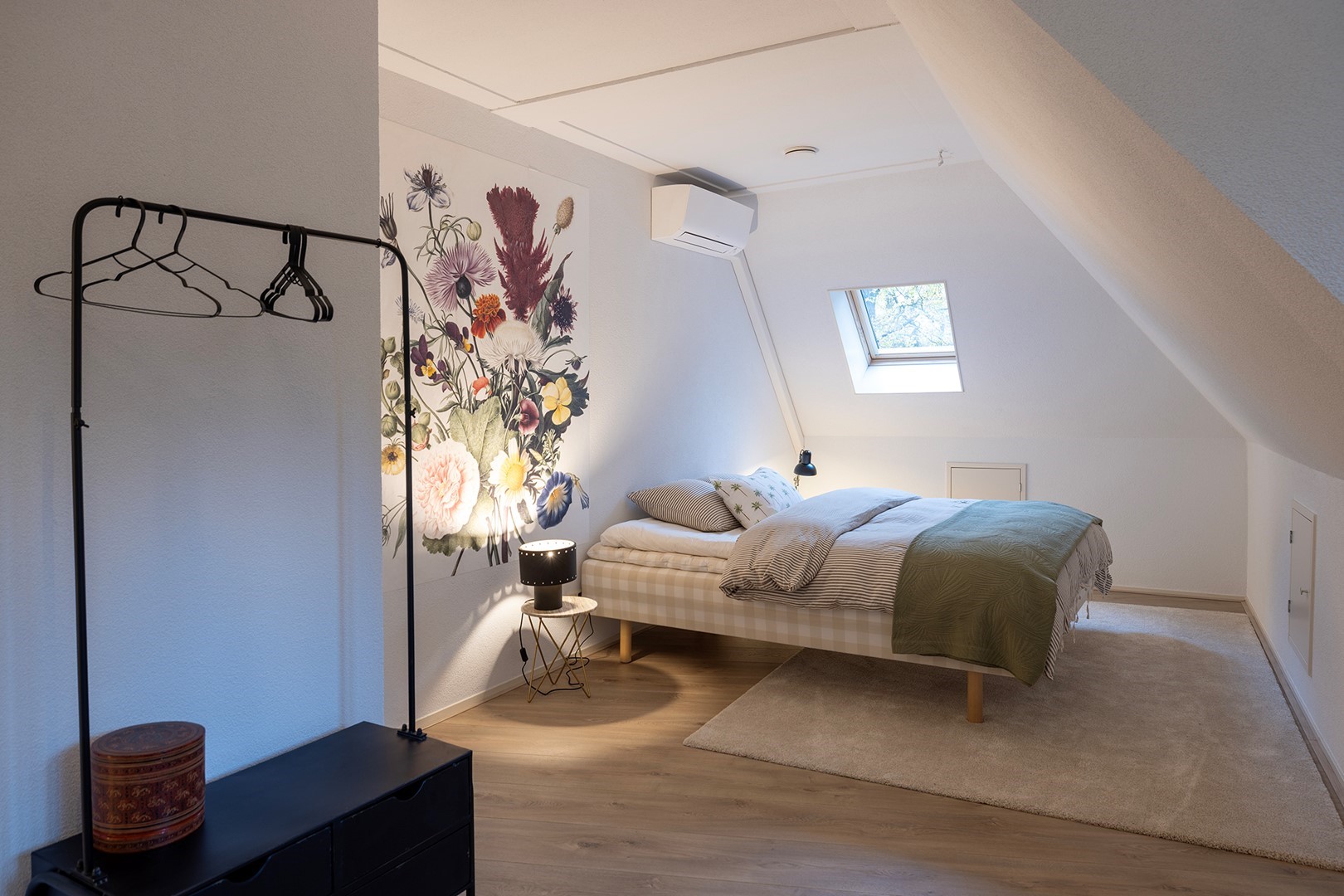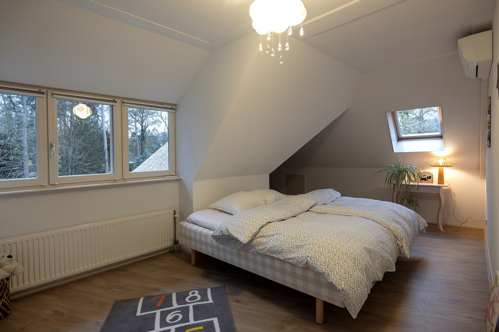 De grote bergzolder is bereikbaar middels een vaste trap. Hier bevindt zich het WTW-systeem.