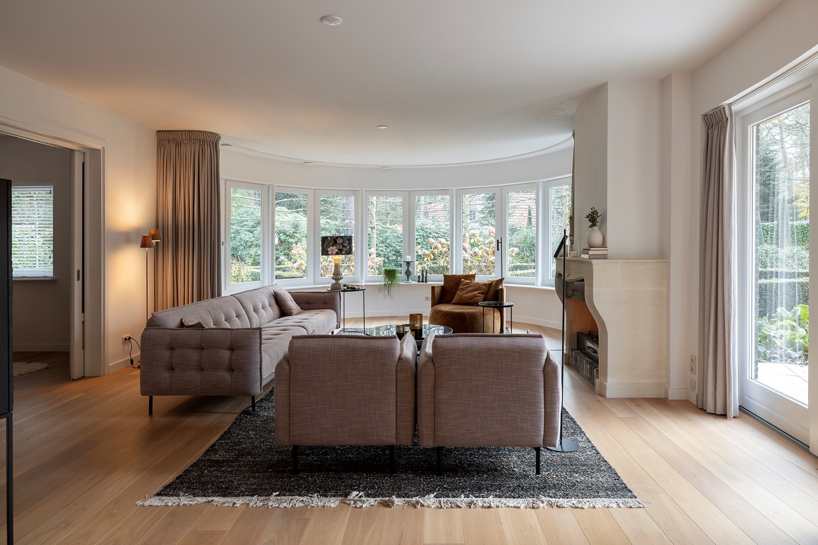 Zodra u door de toegangspoort komt, zult u verrast zijn door de stijlvolle uitstraling van dit prachtige LANDHUIS. De entree biedt toegang tot de ontvangsthal met toilet, garderobe en vaste kasten. Onder de trap bevindt zich de technische ruimte met camerasysteem en verdeler van de vloerverwarming. De open keuken is licht en biedt voldoende ruimte voor een grote eettafel. De volgende inbouwapparatuur is aanwezig: een Boretti-fornuis met oven , een vaatwasser en magnetron. Openslaande deuren geven toegang tot het terras. De sfeervolle living heeft een schouw van natuursteen met een gashaard. De ronde serre biedt rondom zicht over uw perceel. Schuifdeuren geven toegang tot de pianokamer, uiteraard kunt u hier ook denken aan een studeer- werkplek of speelkamer voor de kinderen. De knusse tv-kamer is voorzien van een houtkachel. Via de keuken komt u in de bijkeuken met de aansluitingen voor wasmachine en droger. Tevens is hier de hybride CV geïnstalleerd en kunt u via de achterdeur direct naar de tuin. De inpandige garage heeft dubbele deuren en een separate tuindeur.