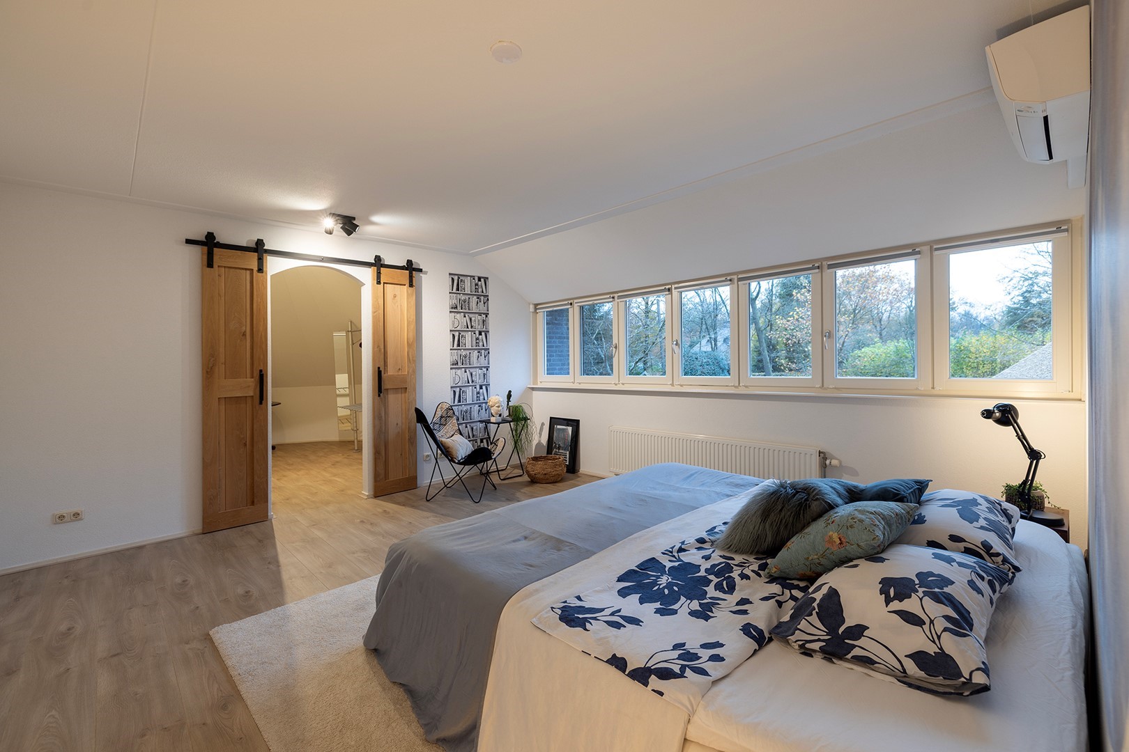 - Vloerverwarming parterre en beide badkamers (de parterre kan gedurende de zomer worden gekoeld door de warmtepomp);