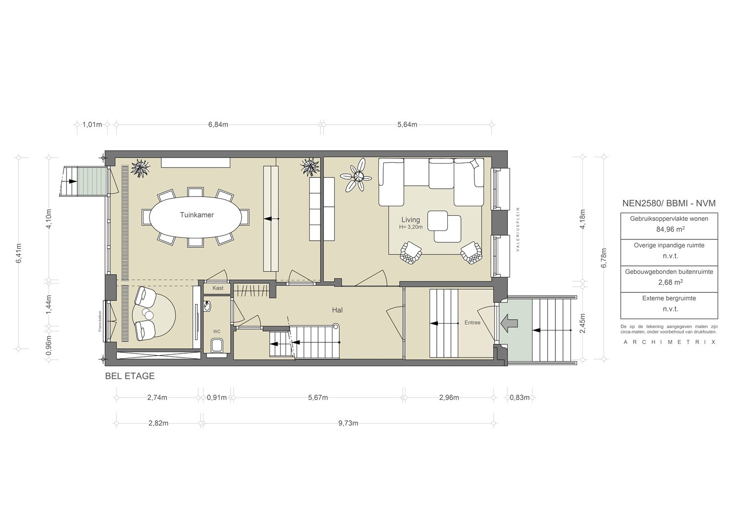 The measurement instruction is based on NEN 2580 and is intended to provide a uniform method of measurement. Differences in measurement outcomes cannot be completely ruled out due to interpretation differences, rounding or limitations during measurement.