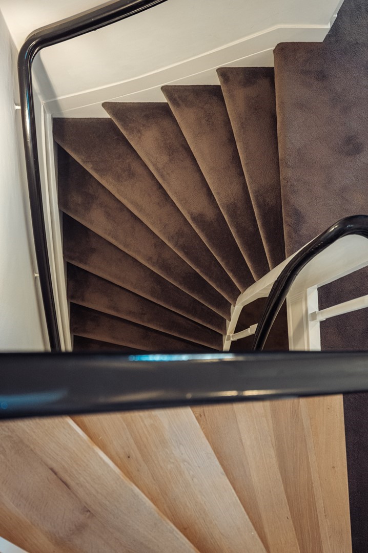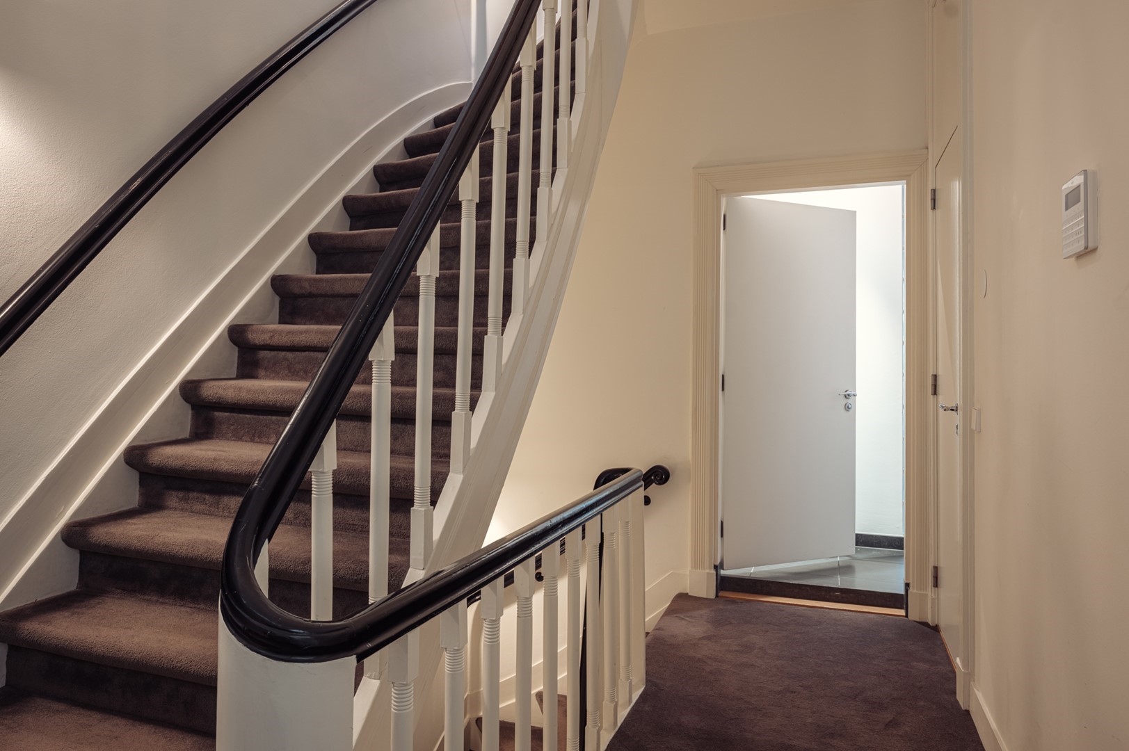 De centrale hal beschikt over een ruim opgezet trappenhuis dat alle vijf woonlagen met elkaar verbindt. Elke verdieping kenmerkt zich door een prettige plafondhoogte, veel lichtinval en een gevoel van ruimte. Met een totaal woonoppervlak van ruim 410 m² biedt het huis volop mogelijkheden voor multifunctioneel gebruik, zoals wonen, werken en ontspanning.