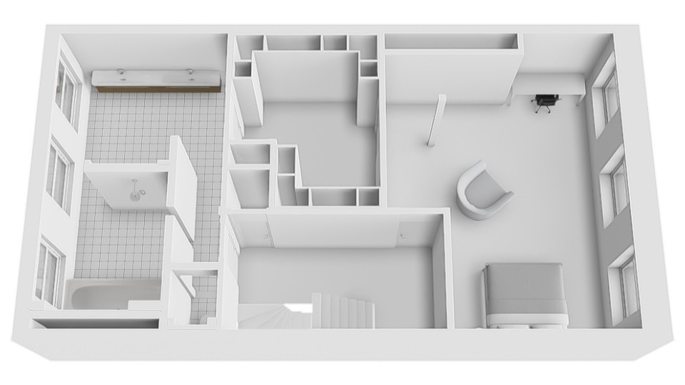 The central hall features a generously proportioned staircase connecting all five residential levels. Each floor is characterized by pleasant ceiling heights, abundant natural light, and a strong sense of space. With a total living area of approximately 410 m², the house offers extensive possibilities for multifunctional use, including living, working, and relaxation.