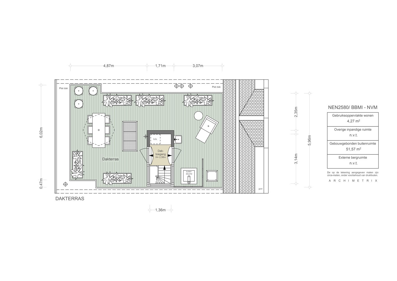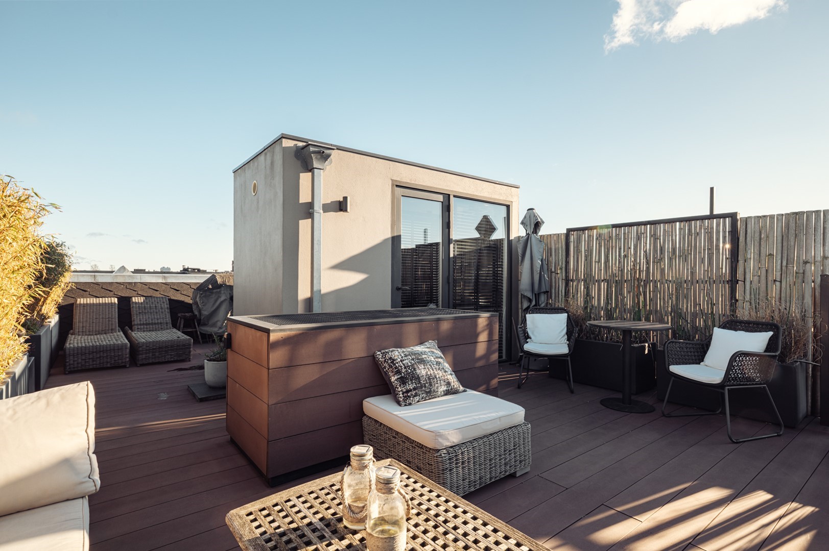 • Dakterras met dakhuisje en buitendouche van circa 51 m²