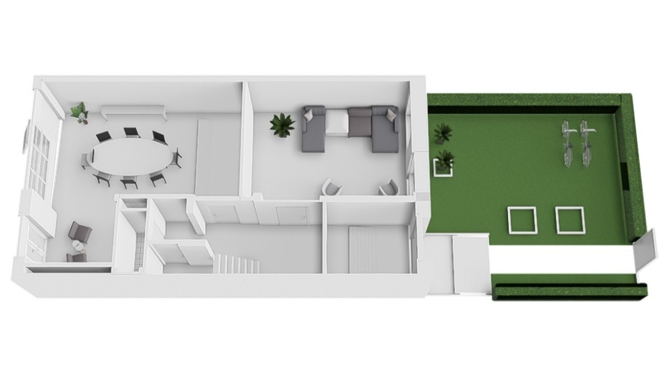 ValeriusView onderscheidt zich door een uitzonderlijke combinatie van buitenruimtes. Aan de voorzijde beschikt het huis over een eigen voortuin, gelegen aan het groene Valeriusplein, wat zorgt voor extra privacy en een gevoel van vrijheid midden in de stad.