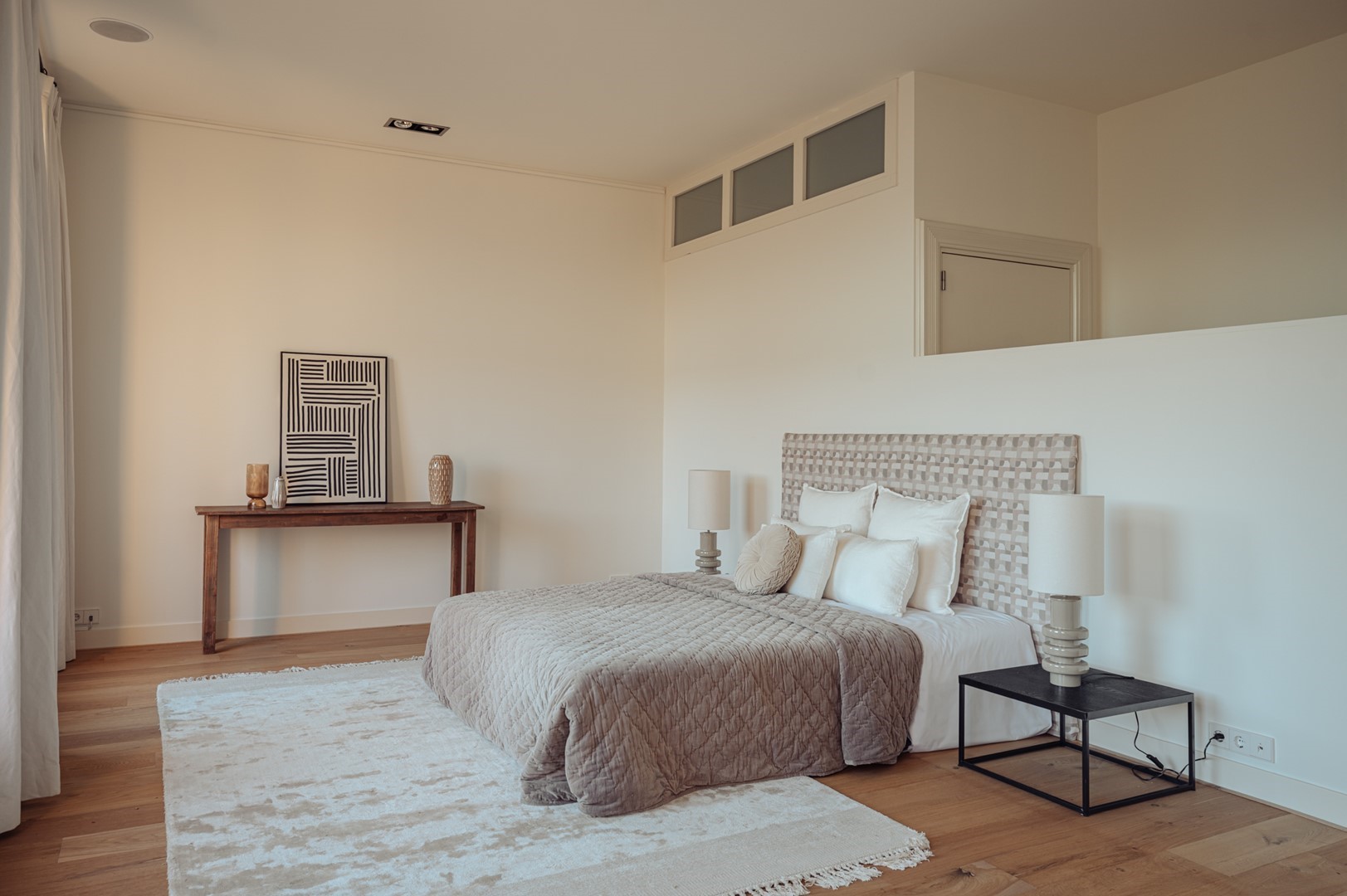 Op de twee bovengelegen woonlagen zijn de slaapvertrekken gesitueerd. Eén volledige verdieping is ingericht als owners suite, met een riante badkamer, kleedkamer en een slaapkamer aan de voorzijde. De bovenste verdieping beschikt over drie slaapkamers, één badkamer, een wasruimte en veel extra bergruimte.