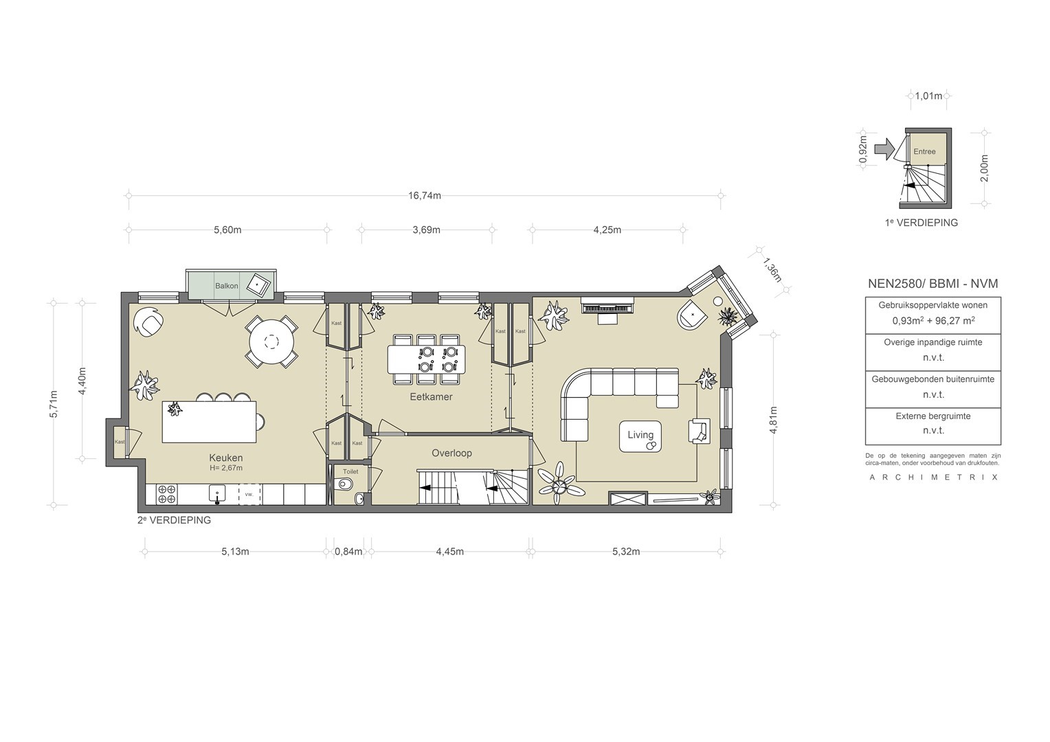 This information has been compiled with due care. However, no liability is accepted for any inaccuracies, omissions, or consequences thereof. All stated measurements and surfaces are indicative only. The measurement instruction is based on NEN 2580 and aims to provide a consistent method for indicating the usable floor area. Differences in measurement outcomes cannot be fully excluded due to interpretation differences, rounding, or practical limitations during measurement.