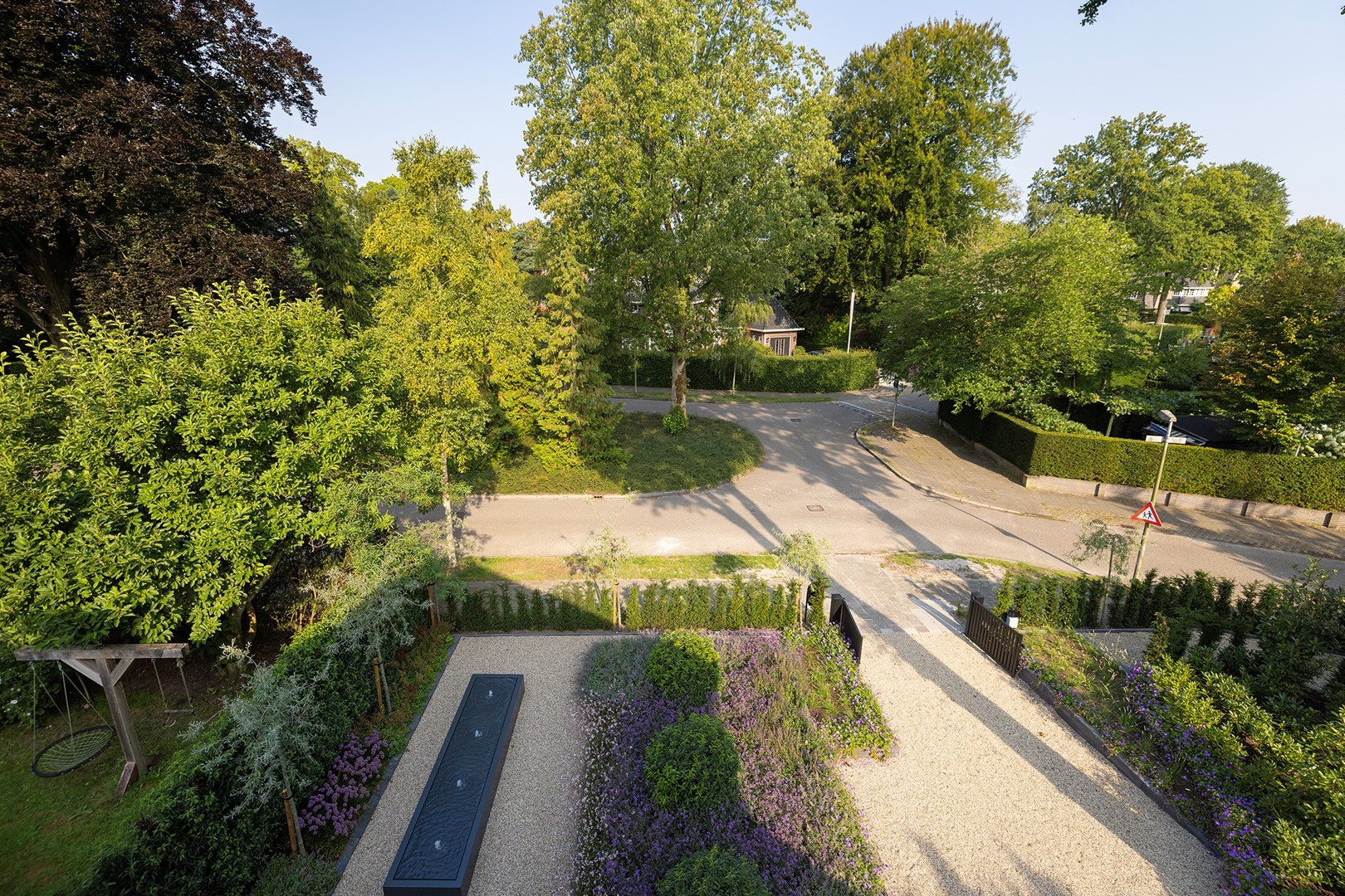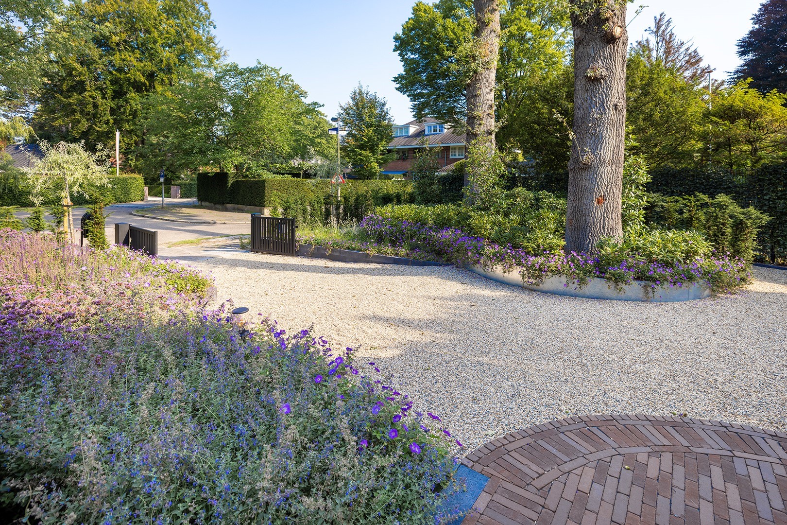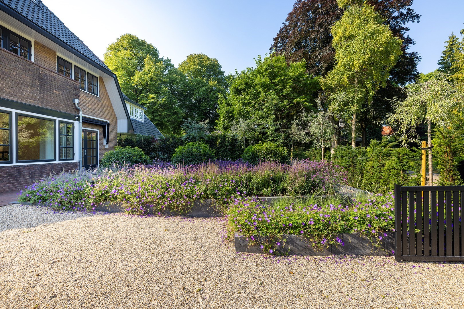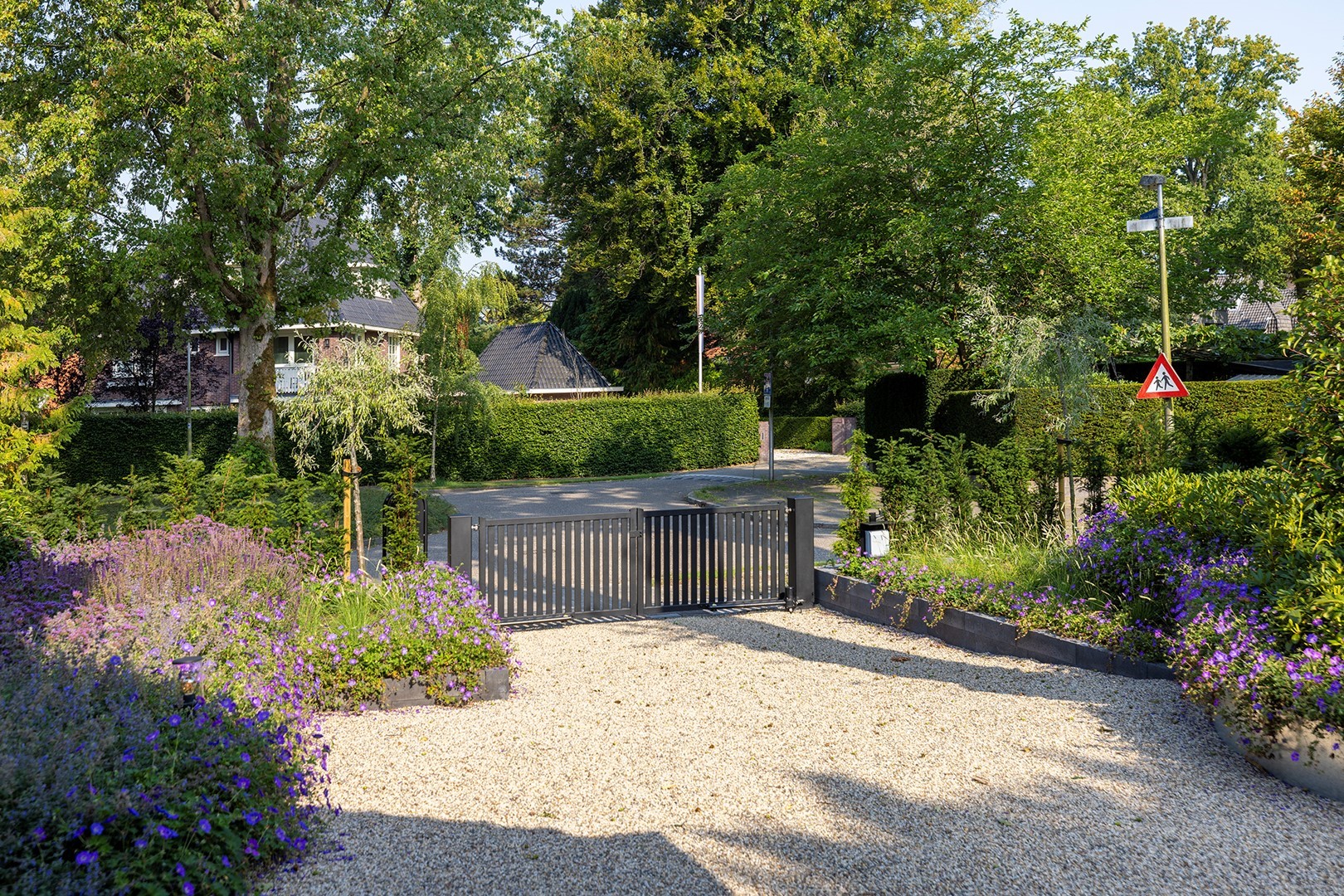 Zowel de voor- als de achtertuin zijn geheel opnieuw aangelegd. Naast de bestrating, beplanting, de waterpartij met fonteinen is het terras achter voorzien van drainage en is het geheel omheind. Aan de voorzijde de luxe, elektrische toegangspoort met afstandsbediening en intercom en voorbij de voordeur nog een hoge toegangspoort die de achtertuin extra afsluit. De vrijstaande stenen garage is voorzien van elektra. Er is parkeergelegenheid voor meerdere auto’s en er is een snel auto laadpaal op krachtstroom aanwezig.