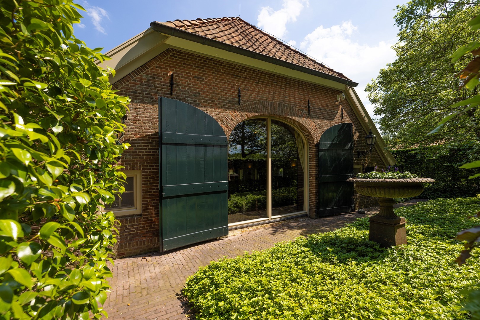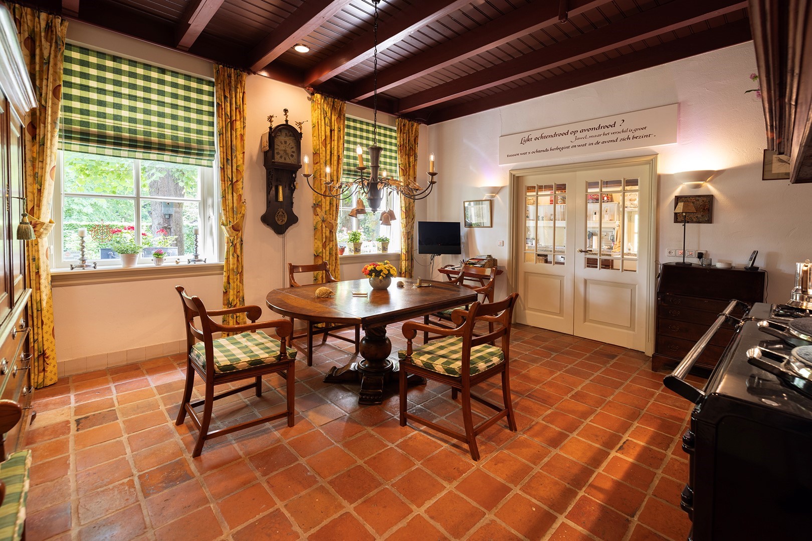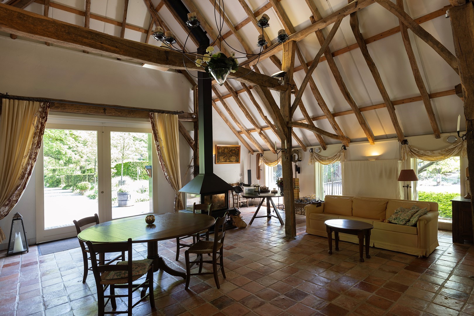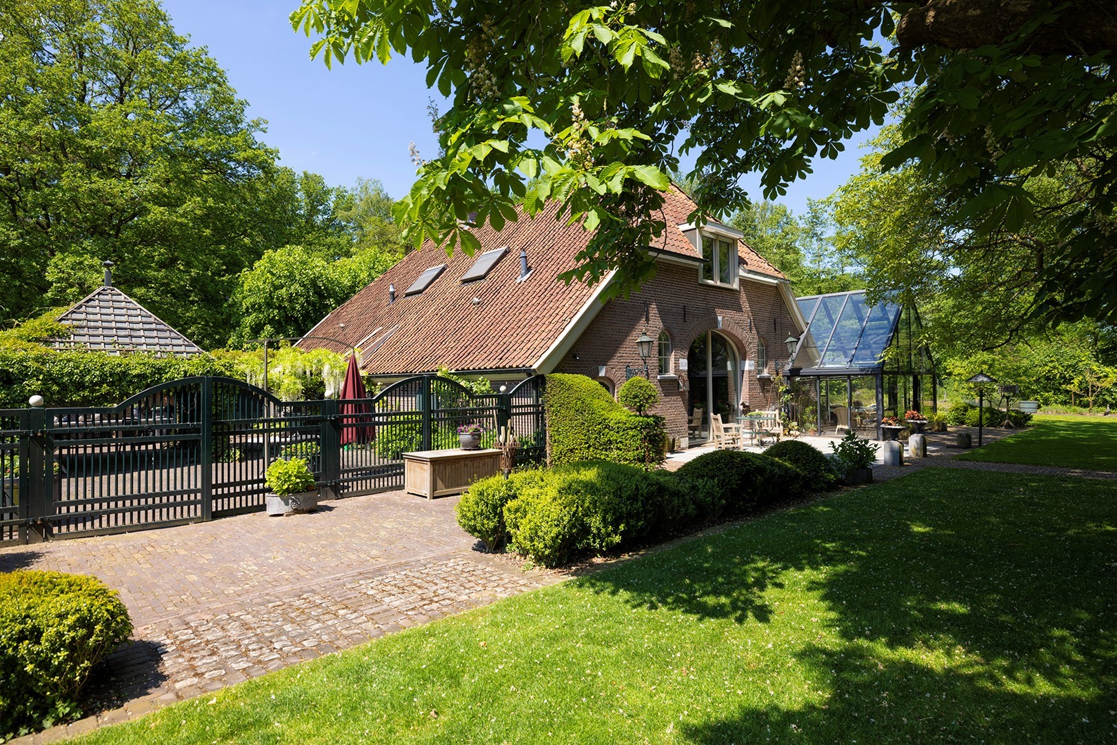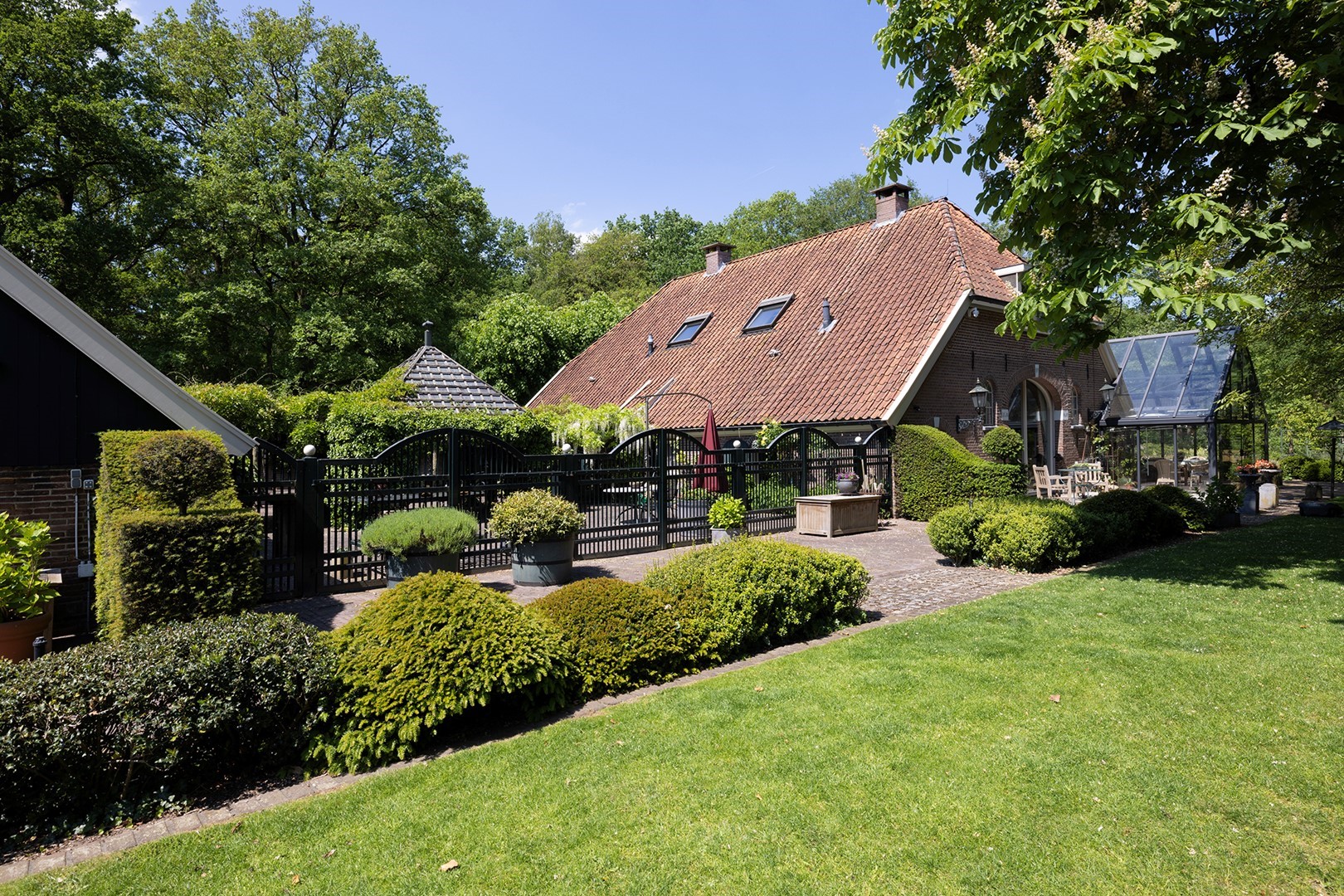 De monumentale woonboerderij stamt al uit 1904 maar is in 1991 volledig gerenoveerd. Bij het ontwerp van Maas Architecten gold de natuur als uitgangspunt. Gevolgd door licht, luxe en authenticiteit. De landelijke keuken – met sfeervolle details en luxe apparatuur – bevindt zich aan de voorzijde van het huis. De living met schouw en originele gebinten kijkt uit over het landgoed. De strakke, eigentijdse serre is een stijlvol extra. U waant zich er, dankzij het instelbare binnenklimaat, het hele jaar door buiten.