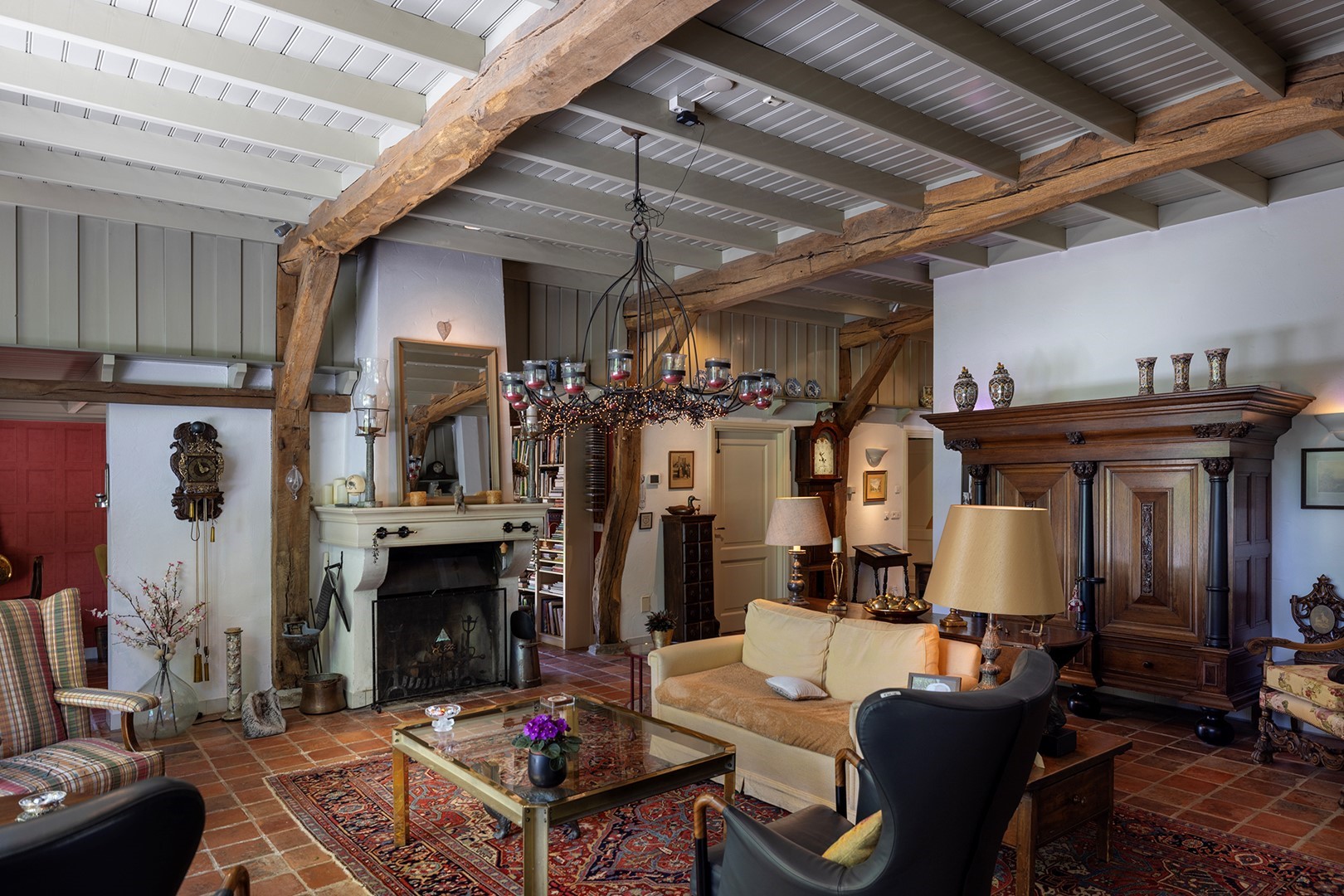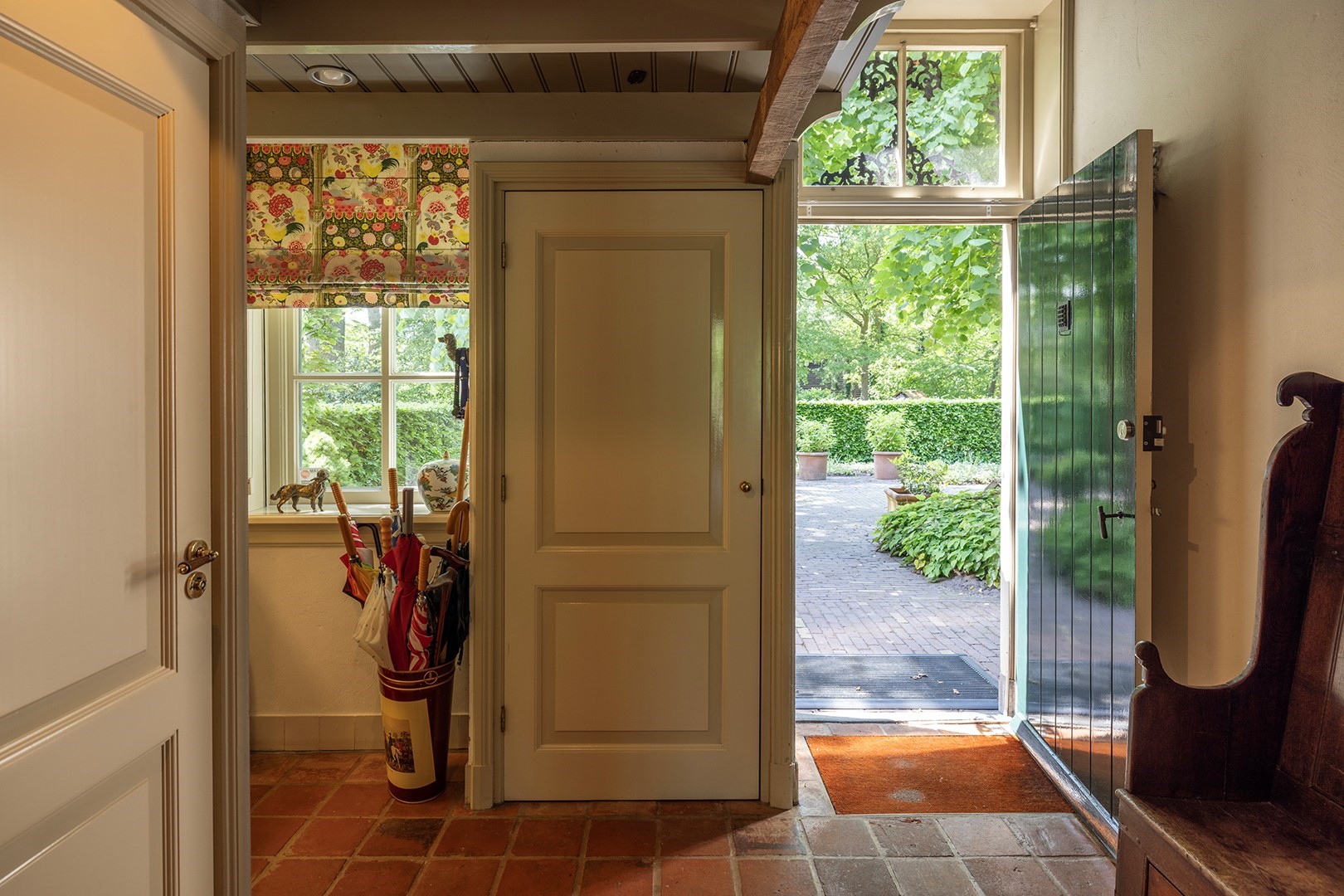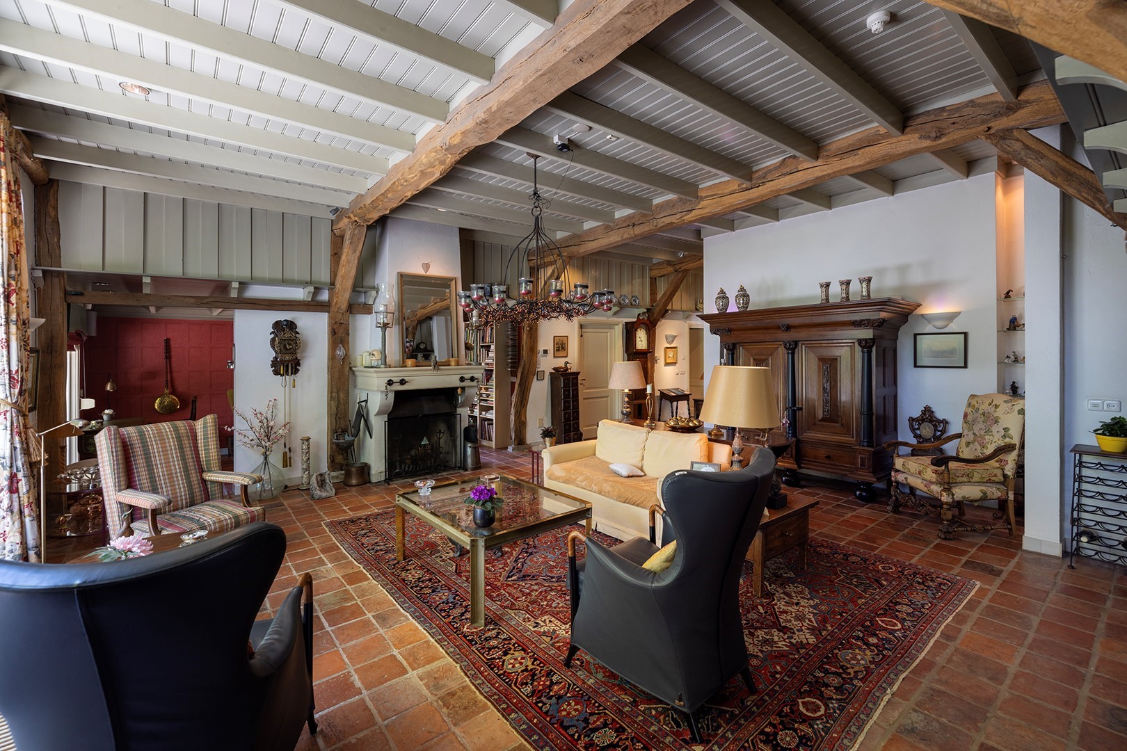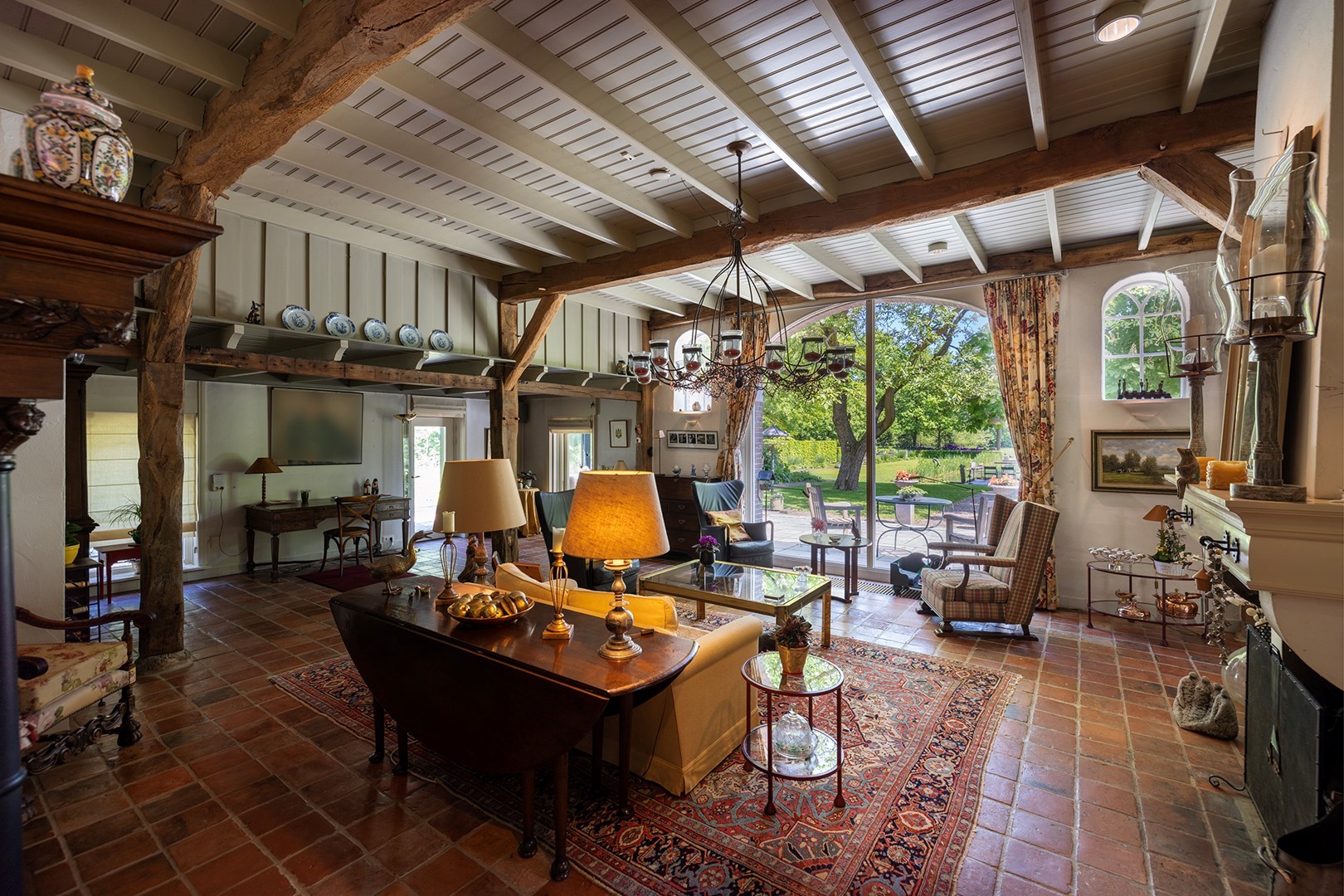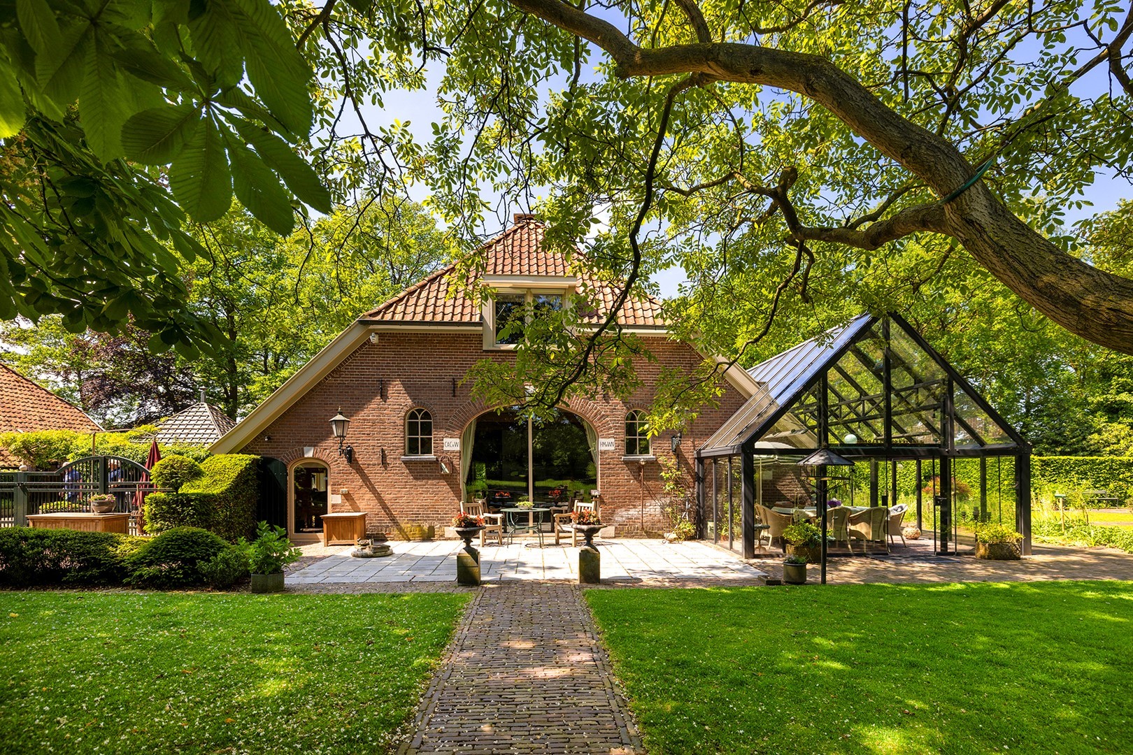 De monumentale woonboerderij stamt al uit 1904 maar is in 1991 volledig gerenoveerd. Bij het ontwerp van Maas Architecten gold de natuur als uitgangspunt. Gevolgd door licht, luxe en authenticiteit. De landelijke keuken – met sfeervolle details en luxe apparatuur – bevindt zich aan de voorzijde van het huis. De living met schouw en originele gebinten kijkt uit over het landgoed. De strakke, eigentijdse serre is een stijlvol extra. U waant zich er, dankzij het instelbare binnenklimaat, het hele jaar door buiten.