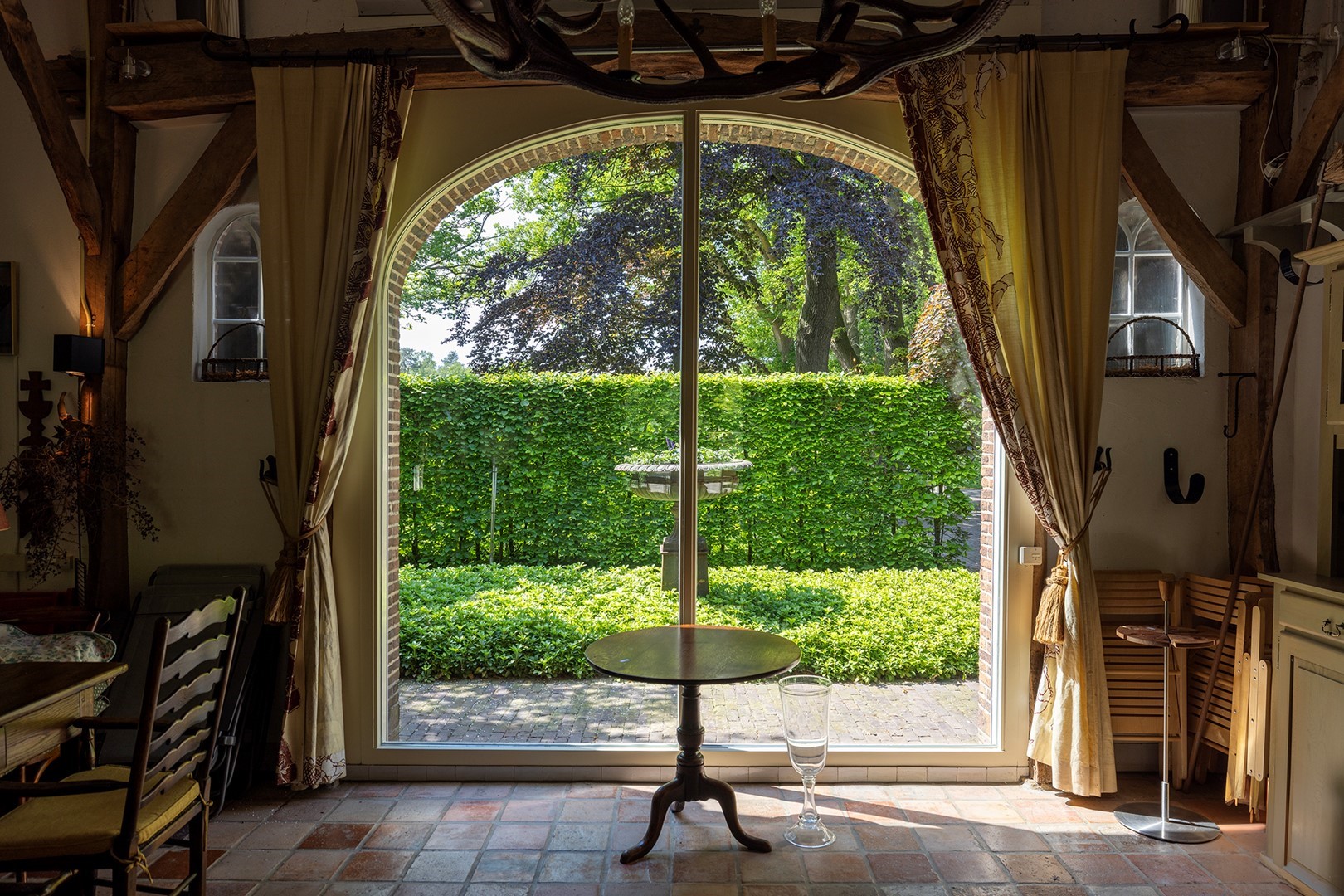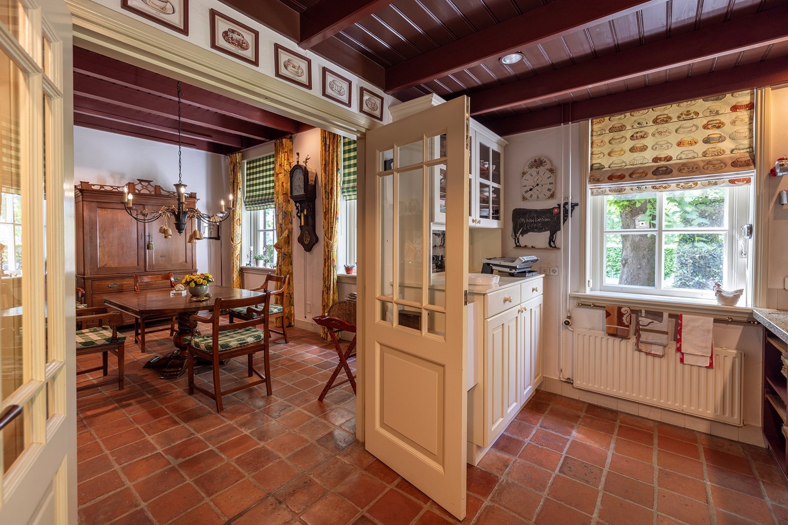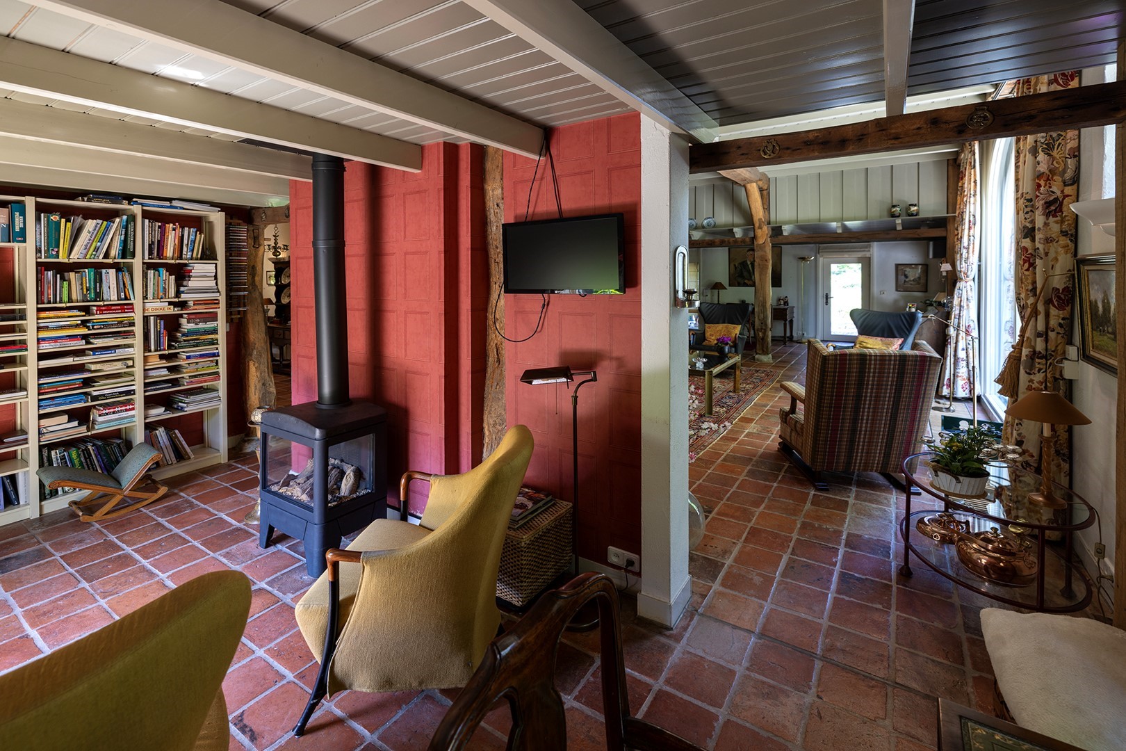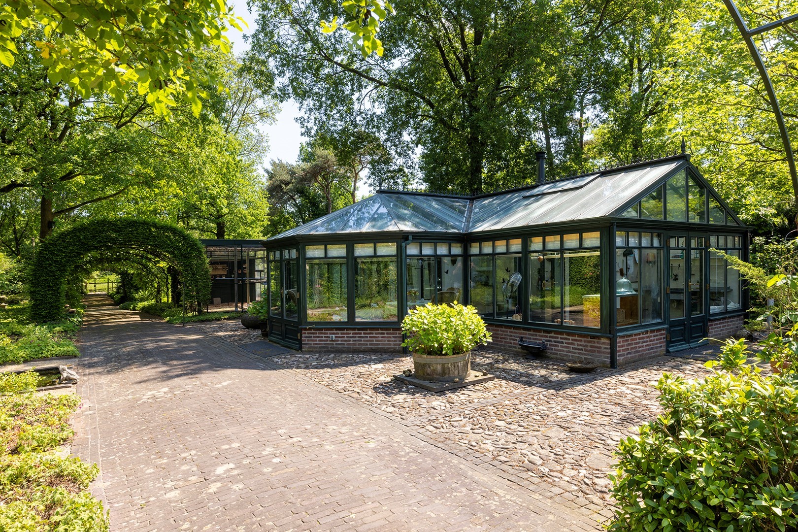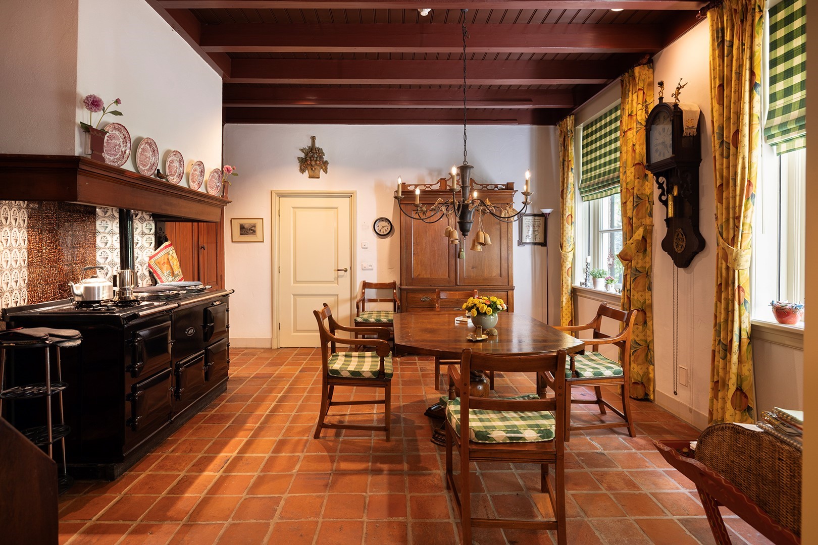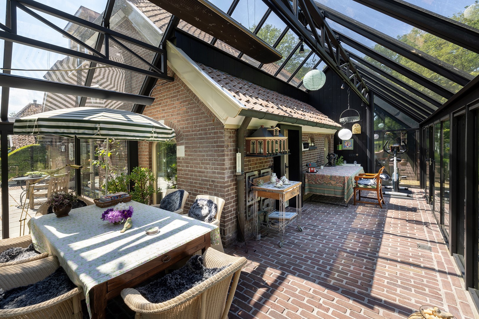 De monumentale woonboerderij stamt al uit 1904 maar is in 1991 volledig gerenoveerd. Bij het ontwerp van Maas Architecten gold de natuur als uitgangspunt. Gevolgd door licht, luxe en authenticiteit. De landelijke keuken – met sfeervolle details en luxe apparatuur – bevindt zich aan de voorzijde van het huis. De living met schouw en originele gebinten kijkt uit over het landgoed. De strakke, eigentijdse serre is een stijlvol extra. U waant zich er, dankzij het instelbare binnenklimaat, het hele jaar door buiten.