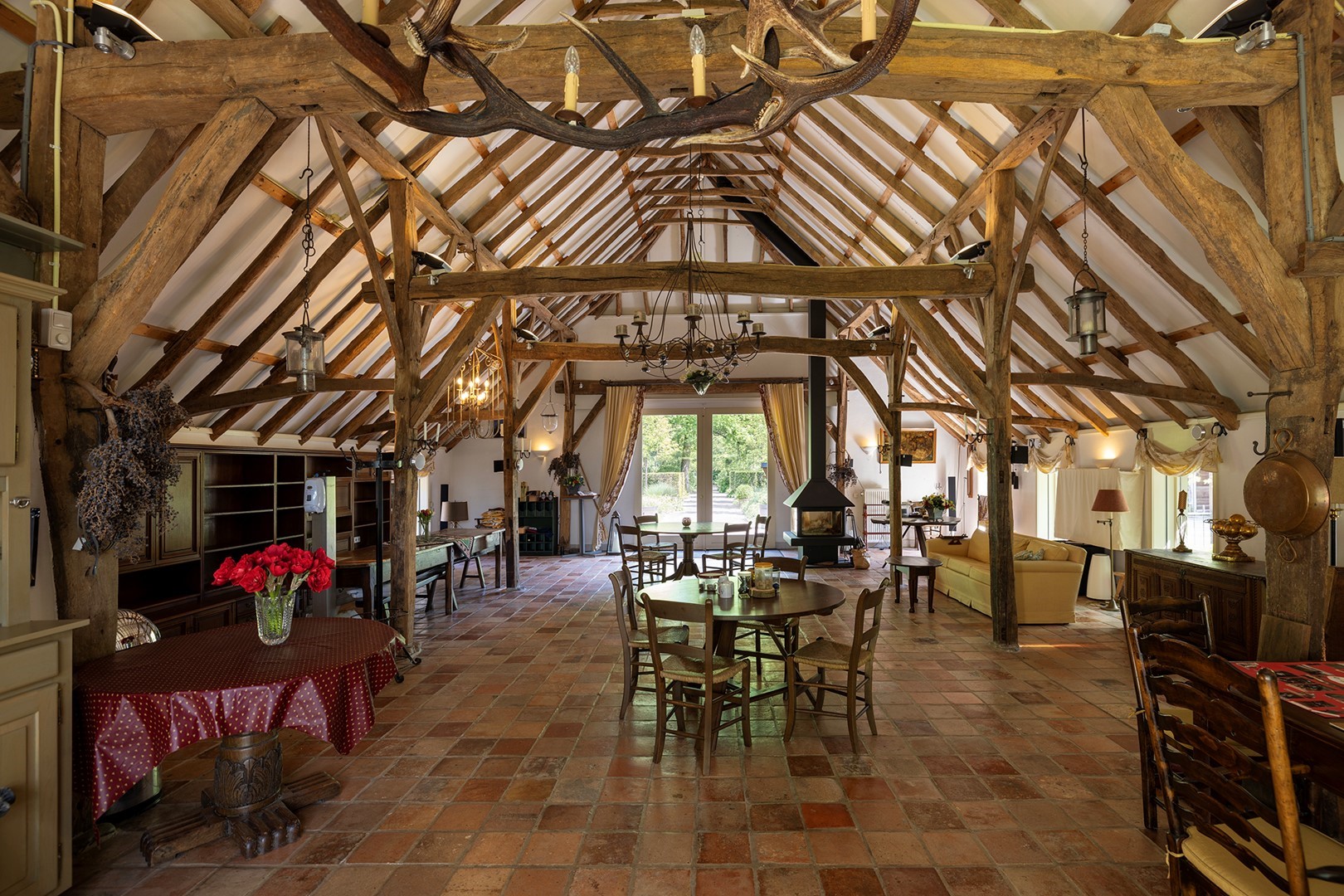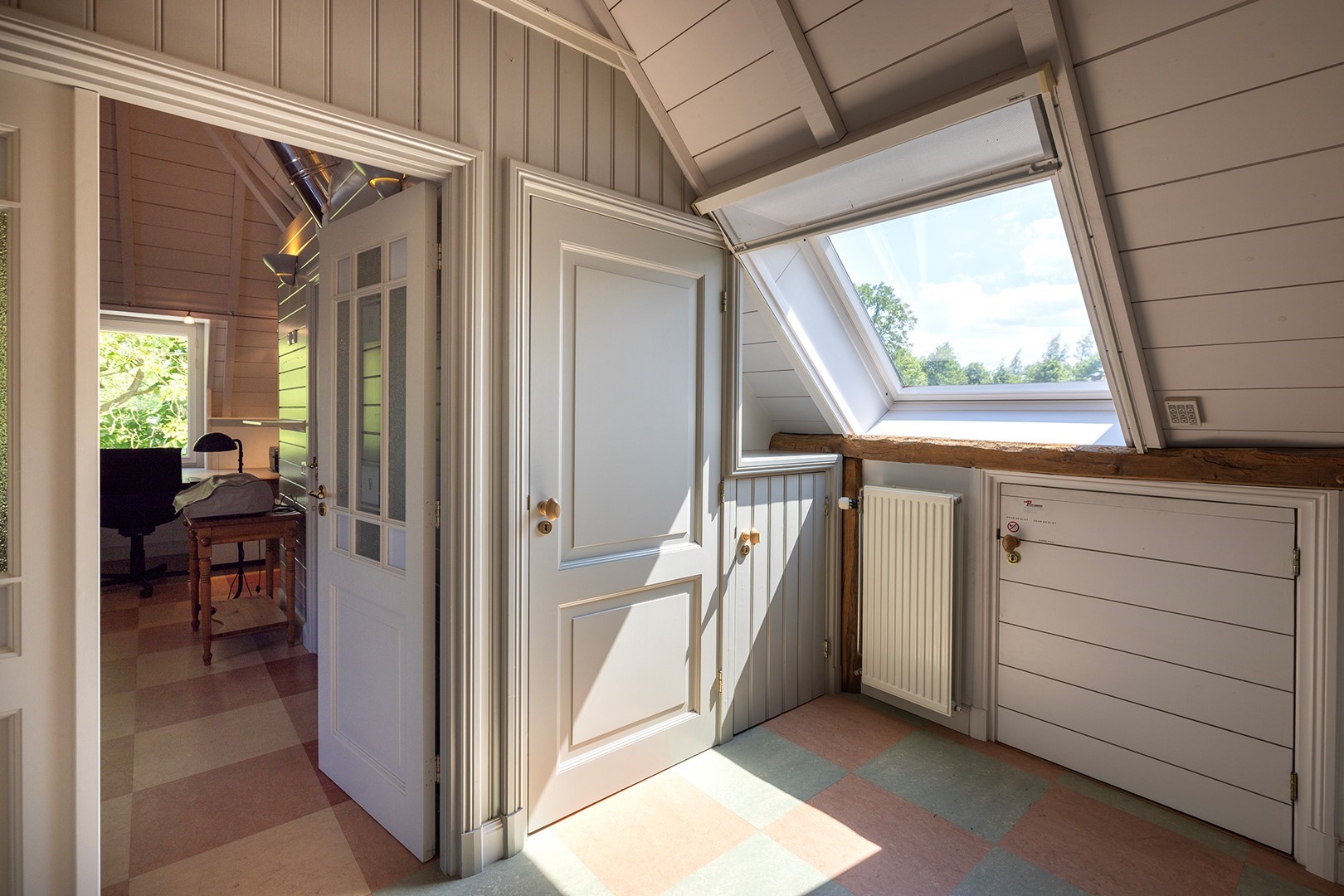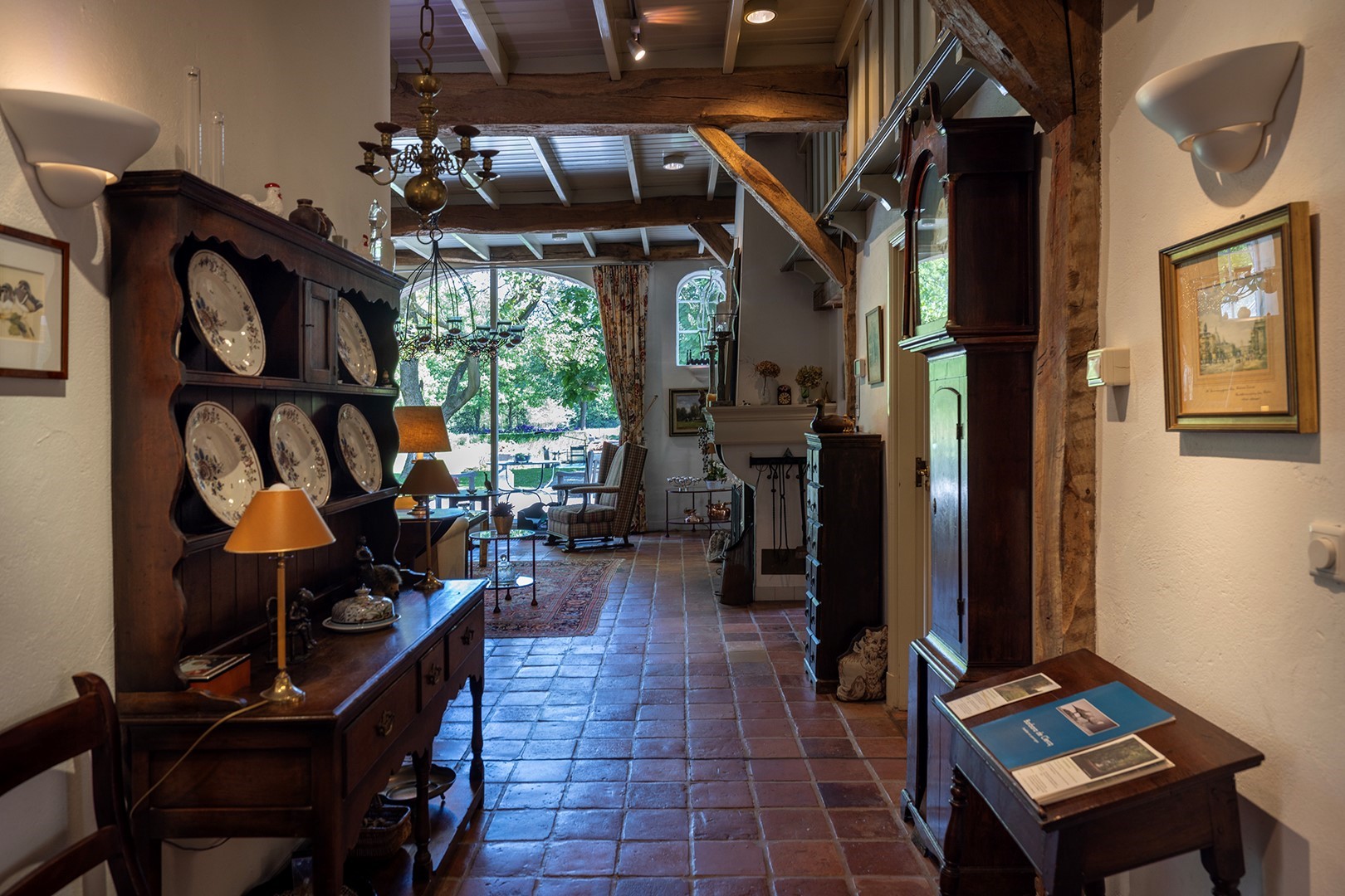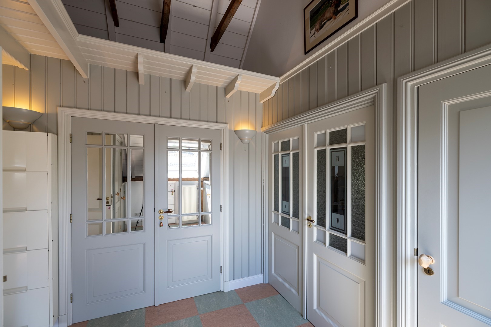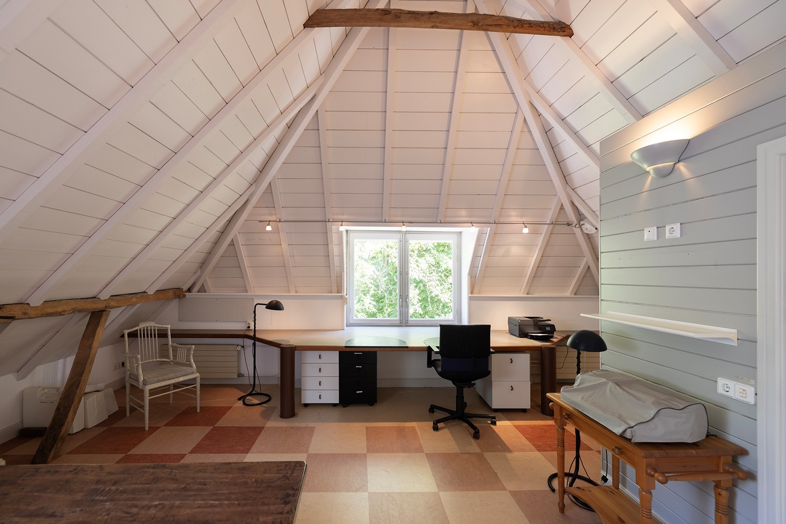 De monumentale woonboerderij stamt al uit 1904 maar is in 1991 volledig gerenoveerd. Bij het ontwerp van Maas Architecten gold de natuur als uitgangspunt. Gevolgd door licht, luxe en authenticiteit. De landelijke keuken – met sfeervolle details en luxe apparatuur – bevindt zich aan de voorzijde van het huis. De living met schouw en originele gebinten kijkt uit over het landgoed. De strakke, eigentijdse serre is een stijlvol extra. U waant zich er, dankzij het instelbare binnenklimaat, het hele jaar door buiten.